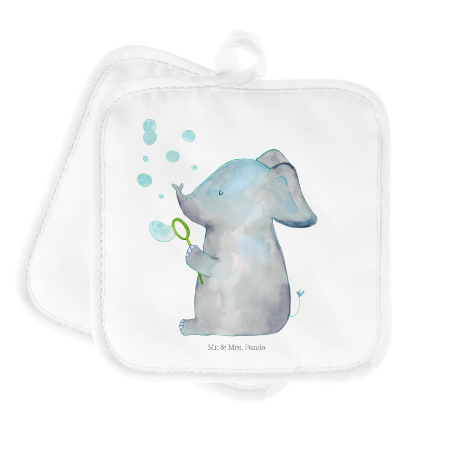 2er Set Topflappen Elefant Seifenblasen - ohne Spruch - Weiß