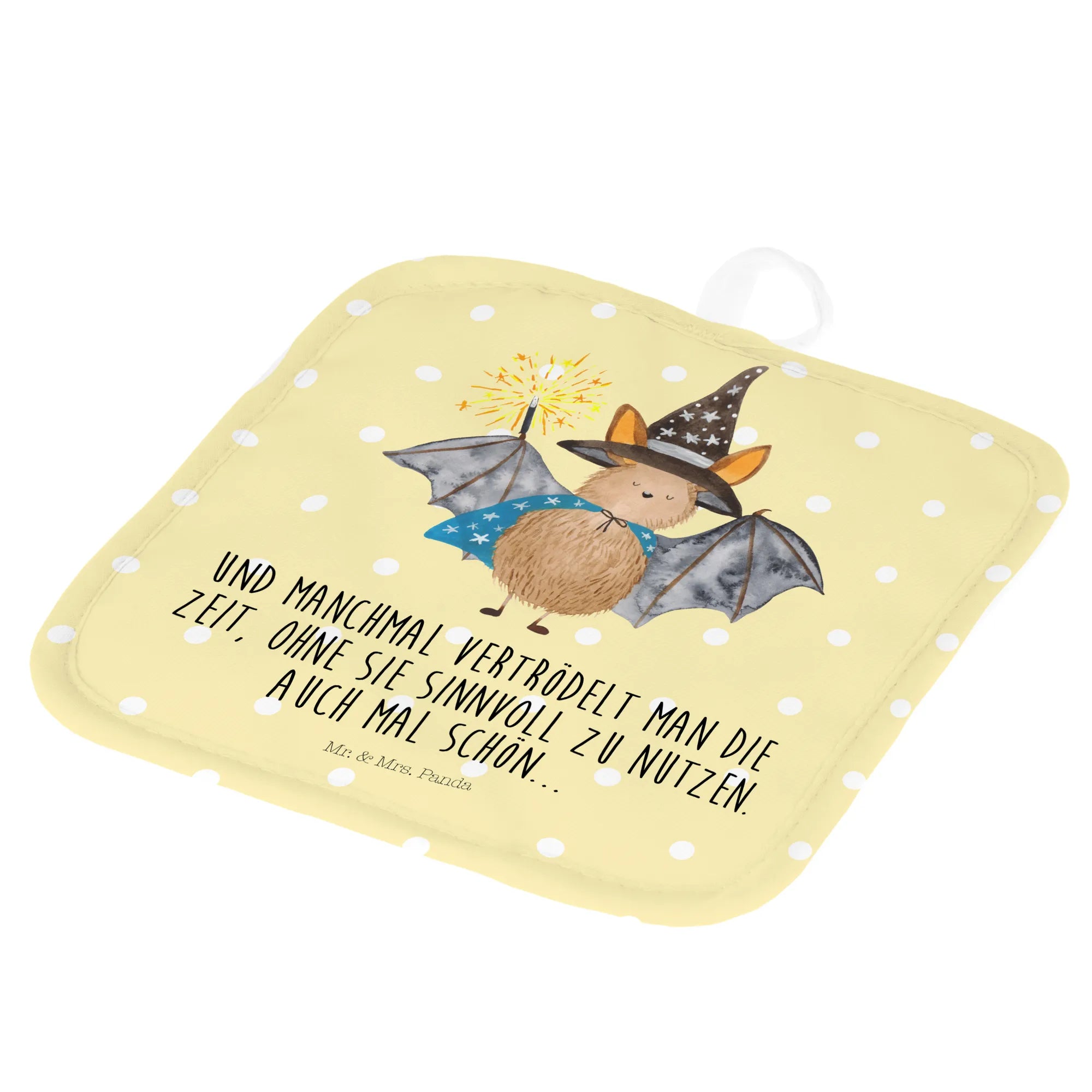 2er Set Topflappen Fledermaus Zauberer - mit Spruch - Gelb Pastell