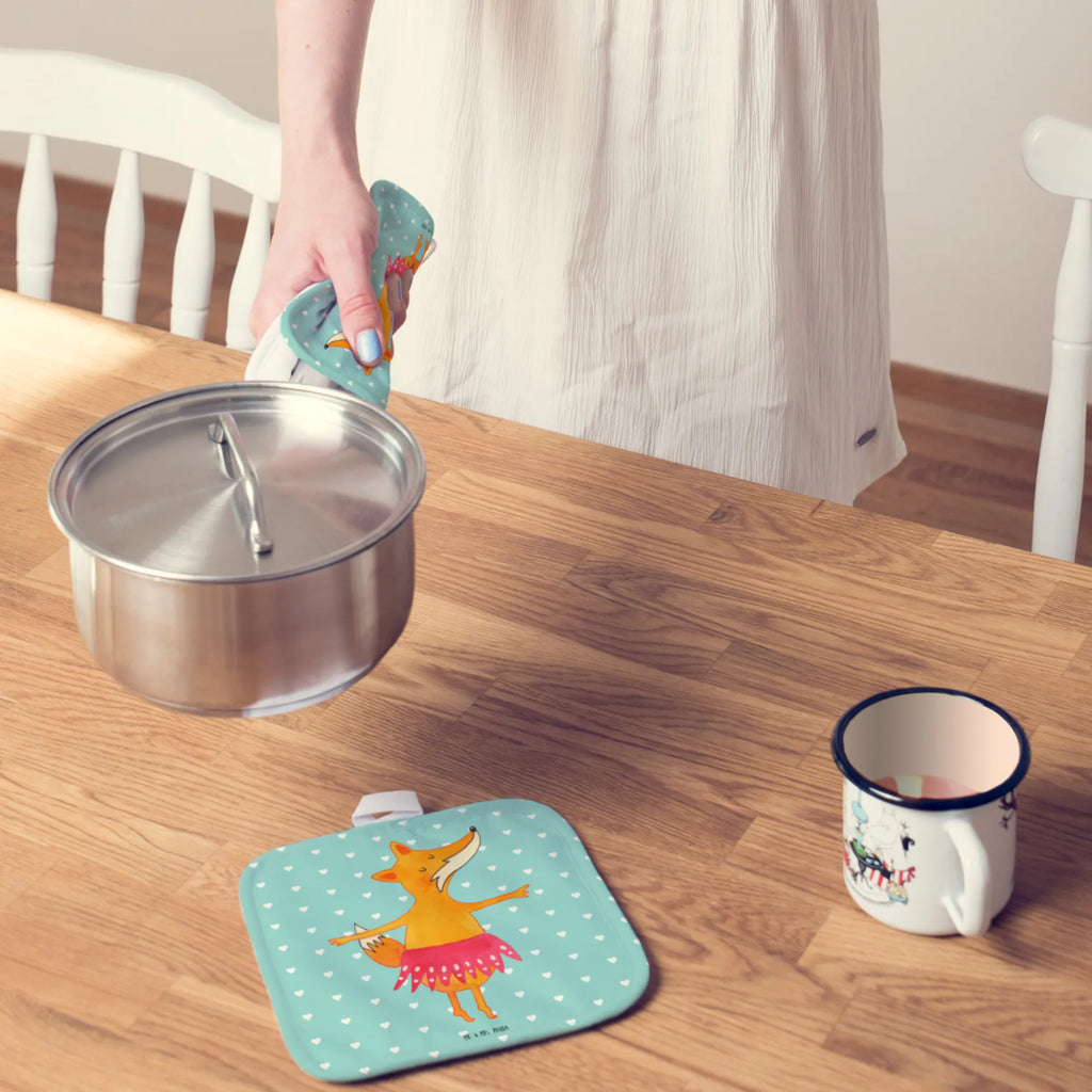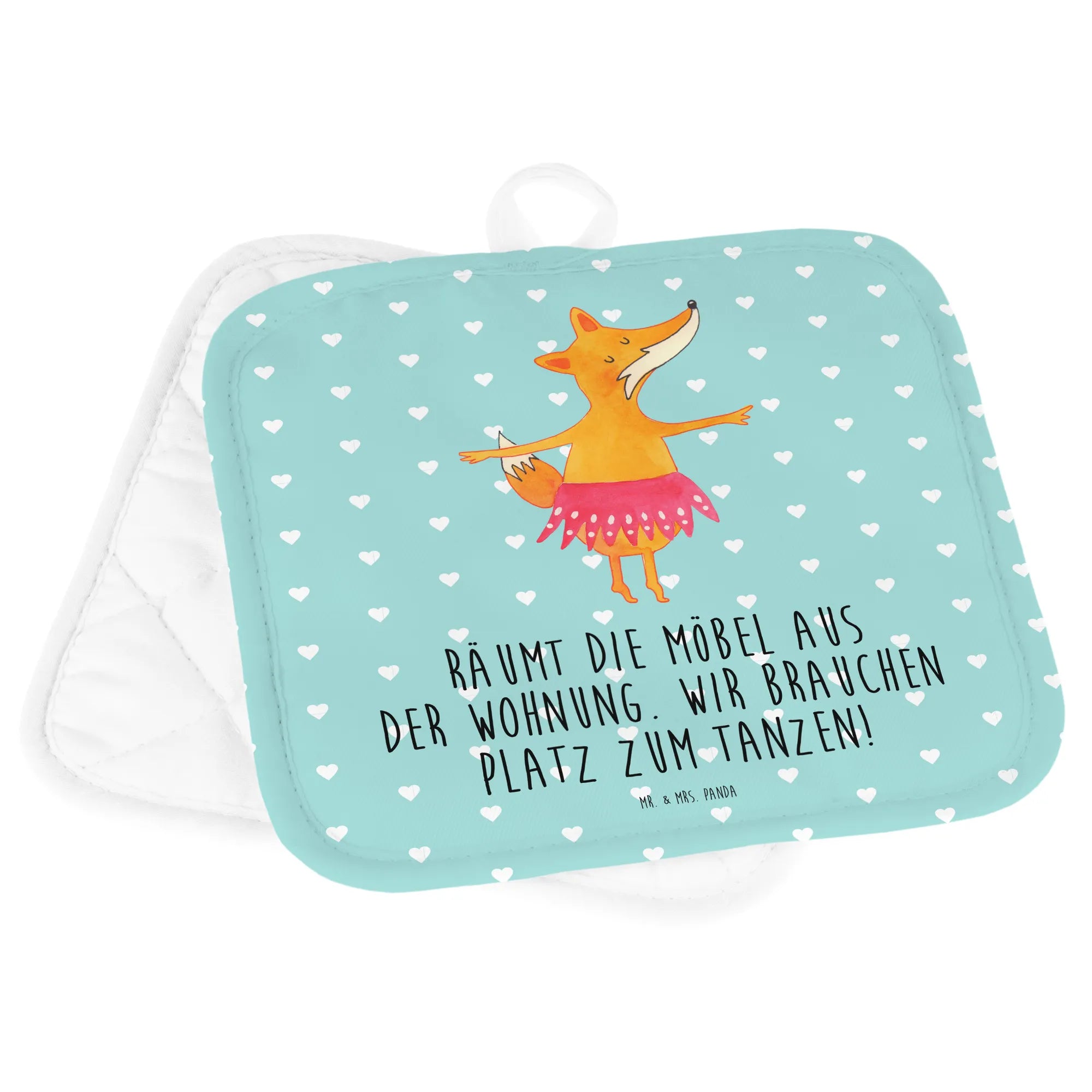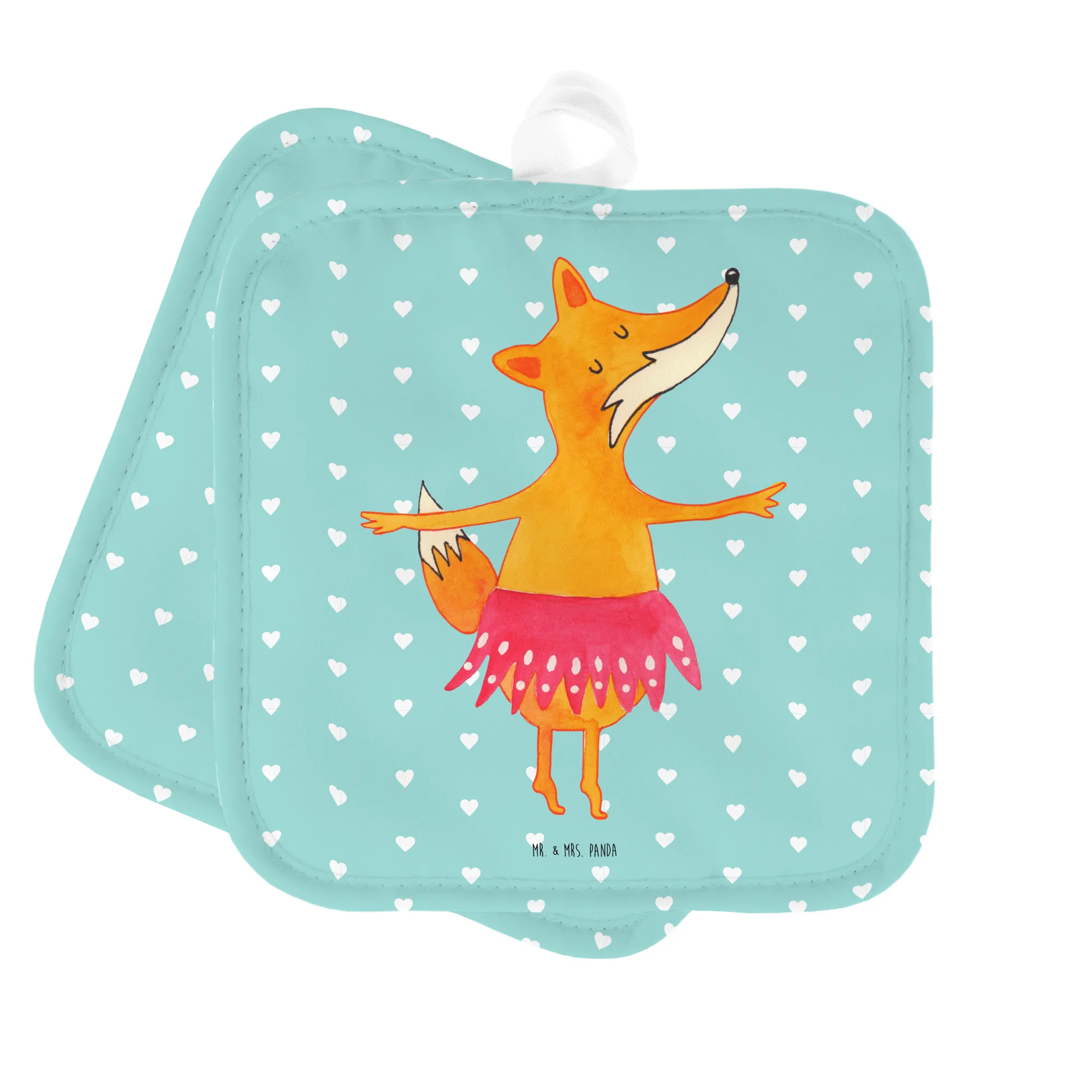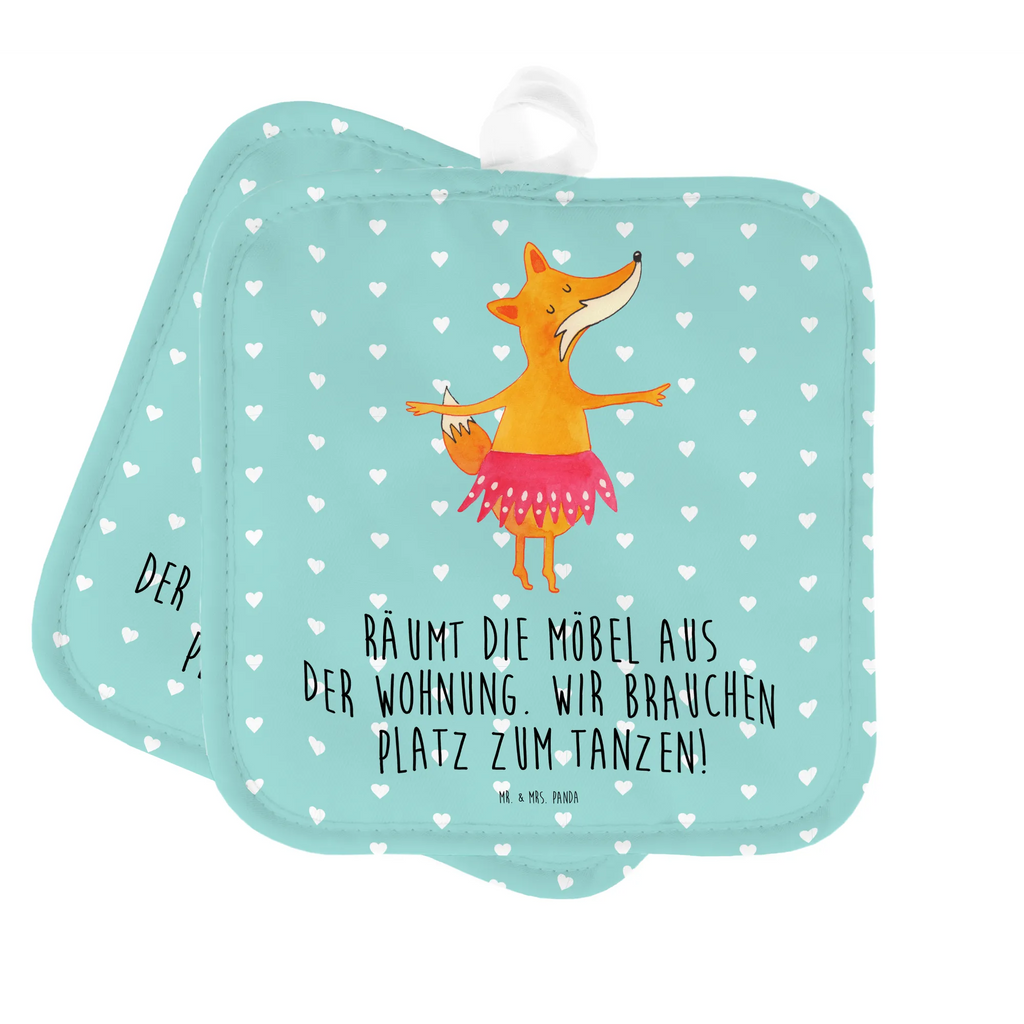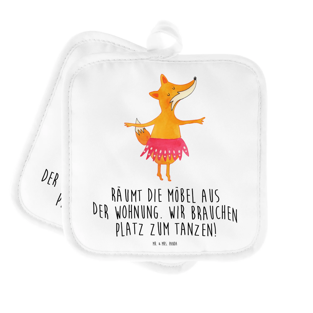 2er Set Topflappen Fuchs Ballerina - mit Spruch - Weiß
