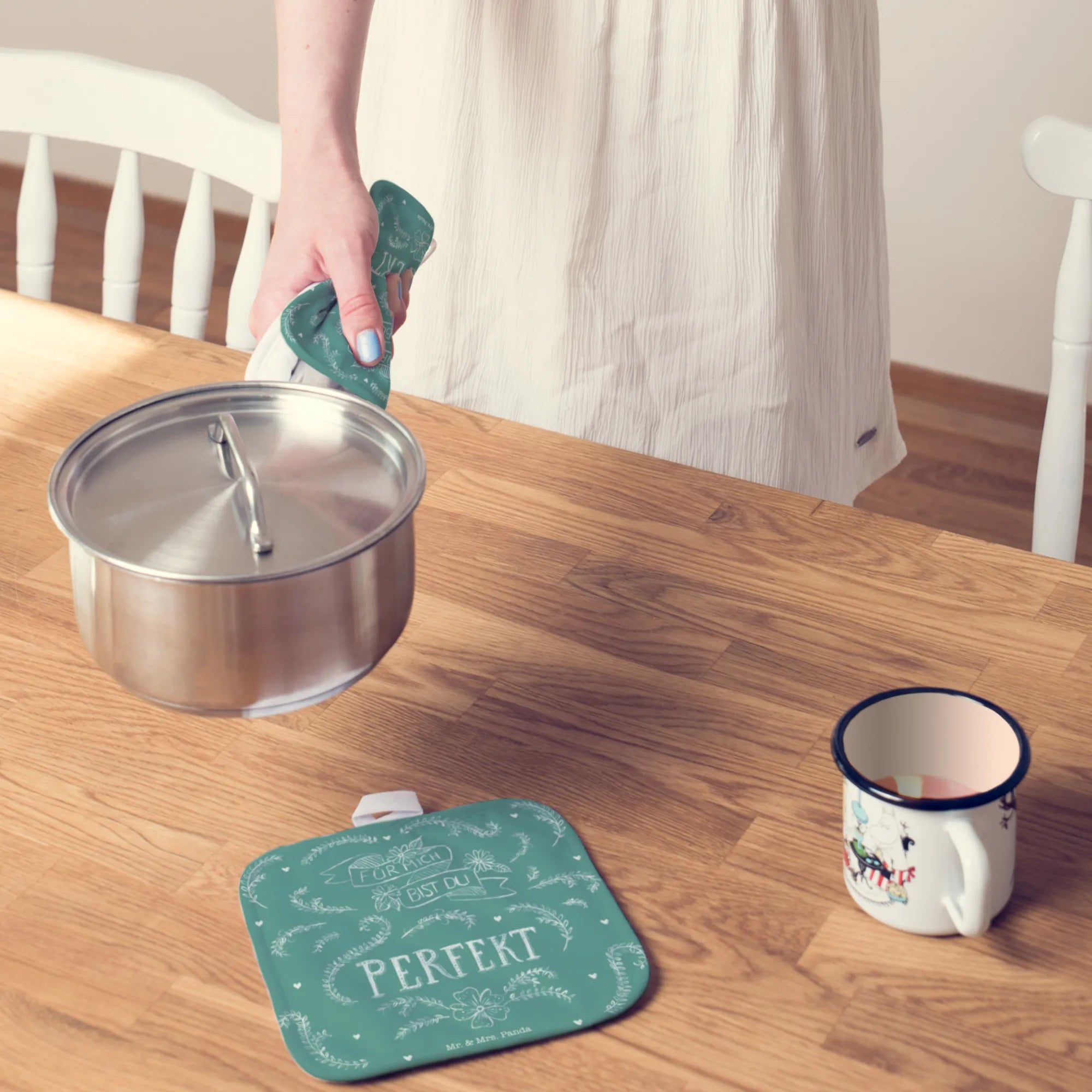 Willkommen in der Welt von Mr. & Mrs. Panda, wo Design auf Funktionalität trifft. Unsere 2er Set Topflappen mit einer Größe von 170 mm x 170 mm und einer Dicke von 5 mm sind deine perfekten Begleiter beim Umgang mit heißen Speisen. Aus 100% Polyester gefertigt, überzeugen sie mit außergewöhnlicher Hitzebeständigkeit und sind bei 30°C leicht zu reinigen. Die einseitigen Druckmotive und Sprüche bringen nicht nur Farbe in deine Küche, sondern zaubern auch ein Lächeln auf dein Gesicht. Dank der praktischen Aufhängeschlaufen sind sie stets griffbereit. Egal ob als schicker Topfuntersetzer oder handlicher Ofenhandschuh, mit diesen Topflappen von Mr. & Mrs. Panda machst du jede Mahlzeit zum Vergnügen.
