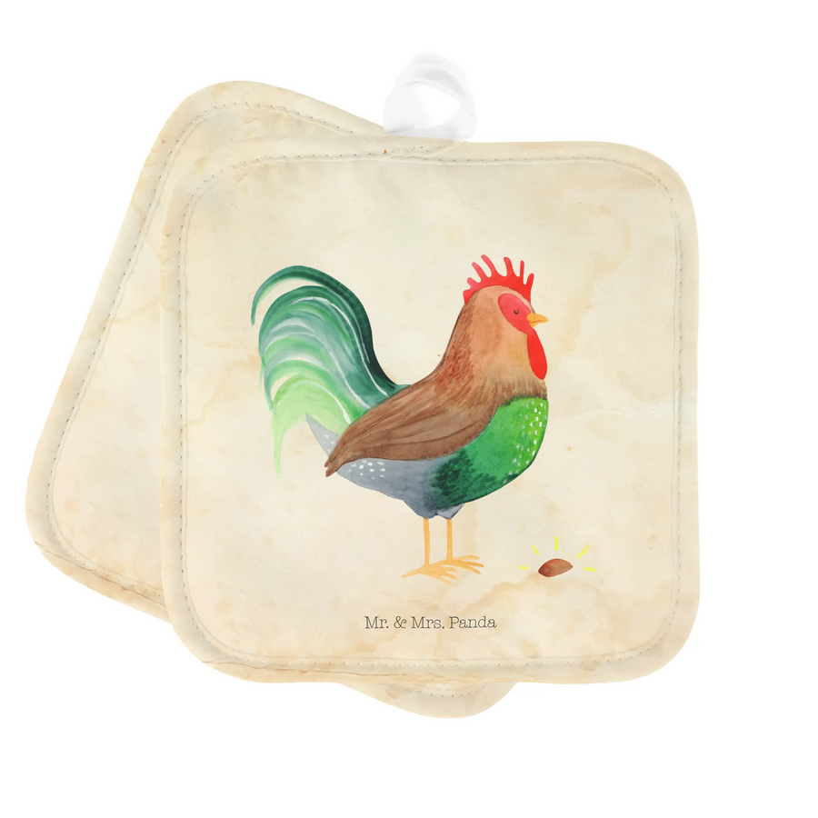Entdecke das 2er Set Topflappen mit dem süßen Motiv "Hahn mit Korn" aus der Bauernhof Kollektion von Mr. & Mrs. Panda! Diese niedlichen Topflappen sind perfekt für alle, die das ländliche Leben lieben und ihr Zuhause mit charmanten, lustigen Accessoires bereichern möchten.