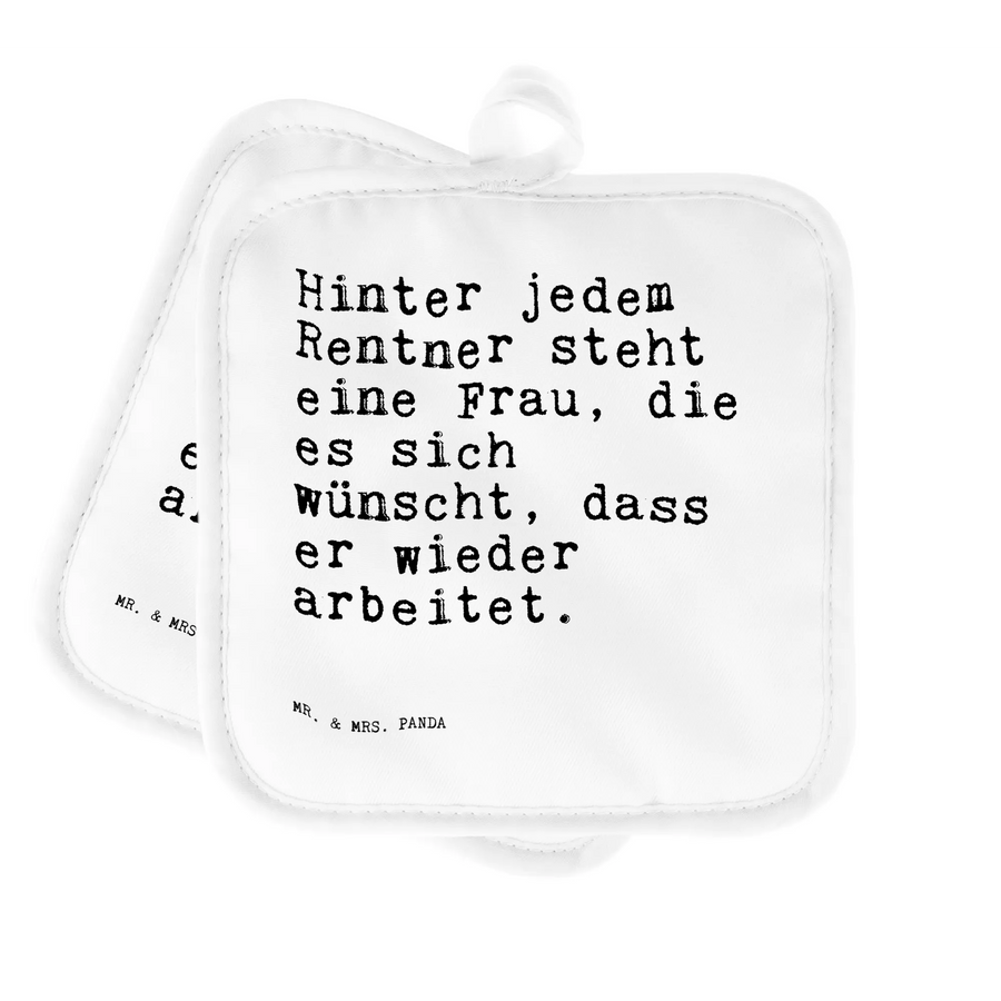 2er Set Topflappen Sprüche und Zitate Hinter jedem Rentner steht eine Frau, die es sich wünscht, dass er wieder arbeitet.