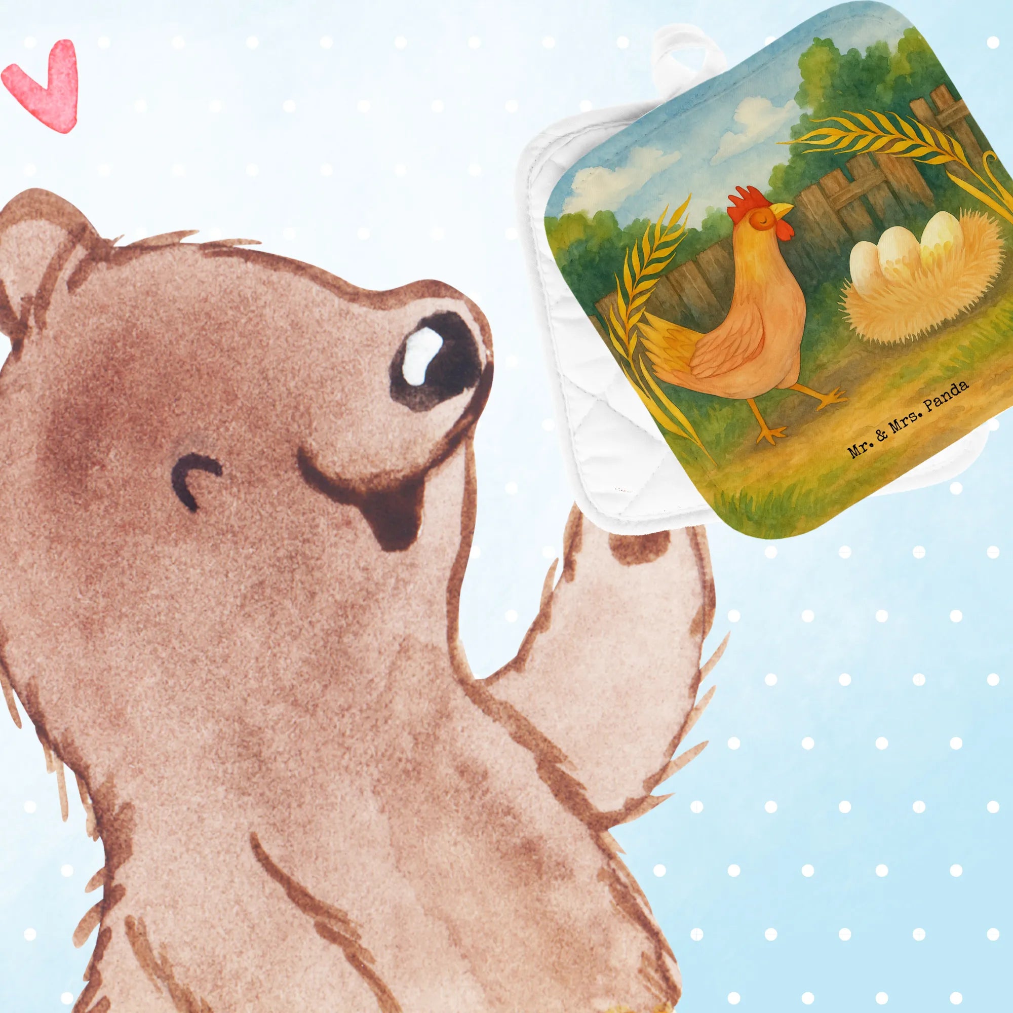 2er Set Topflappen Huhn Stolz Design - mit Spruch