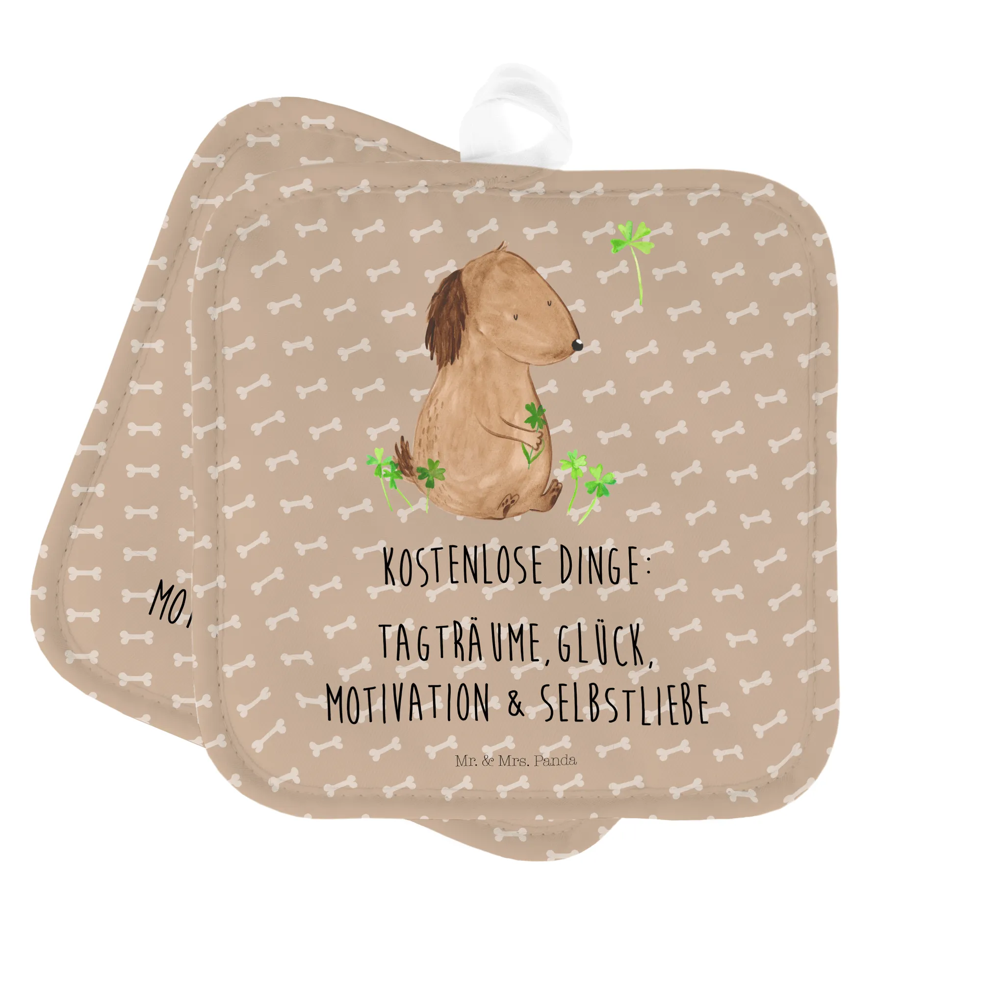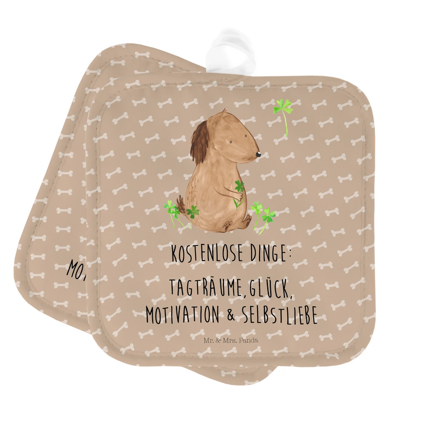 2er Set Topflappen Hund Kleeblatt - mit Spruch - Hundeglück