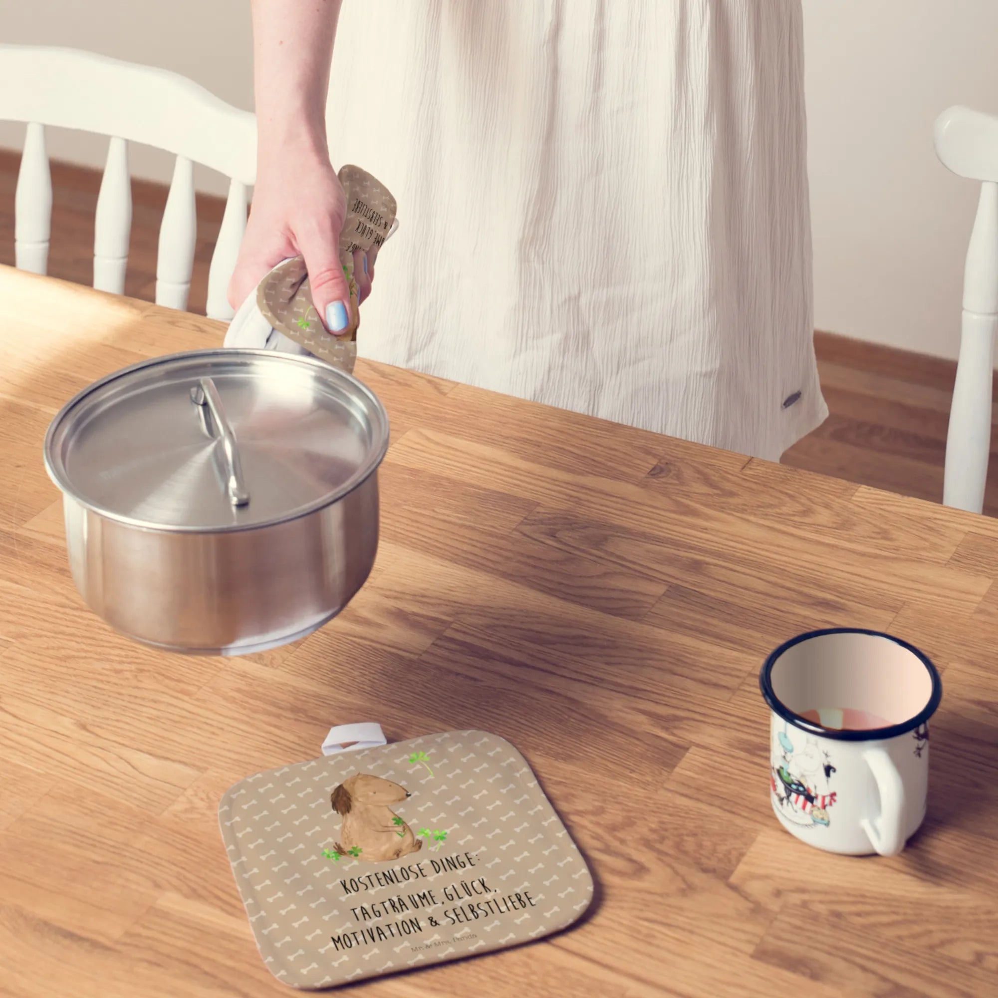 Entdecke unser 2er Set Topflappen mit dem bezaubernden Hund Kleeblatt Motiv aus der Hunde Kollektion von Mr. & Mrs. Panda! Diese wunderschönen Topflappen sind nicht nur praktisch, sondern bringen auch ein Lächeln in deine Küche. Mit einer hochwertigen Druckqualität und einem süßen Design sind sie das perfekte Geschenk für alle Hundeliebhaber und Tierbesitzer.