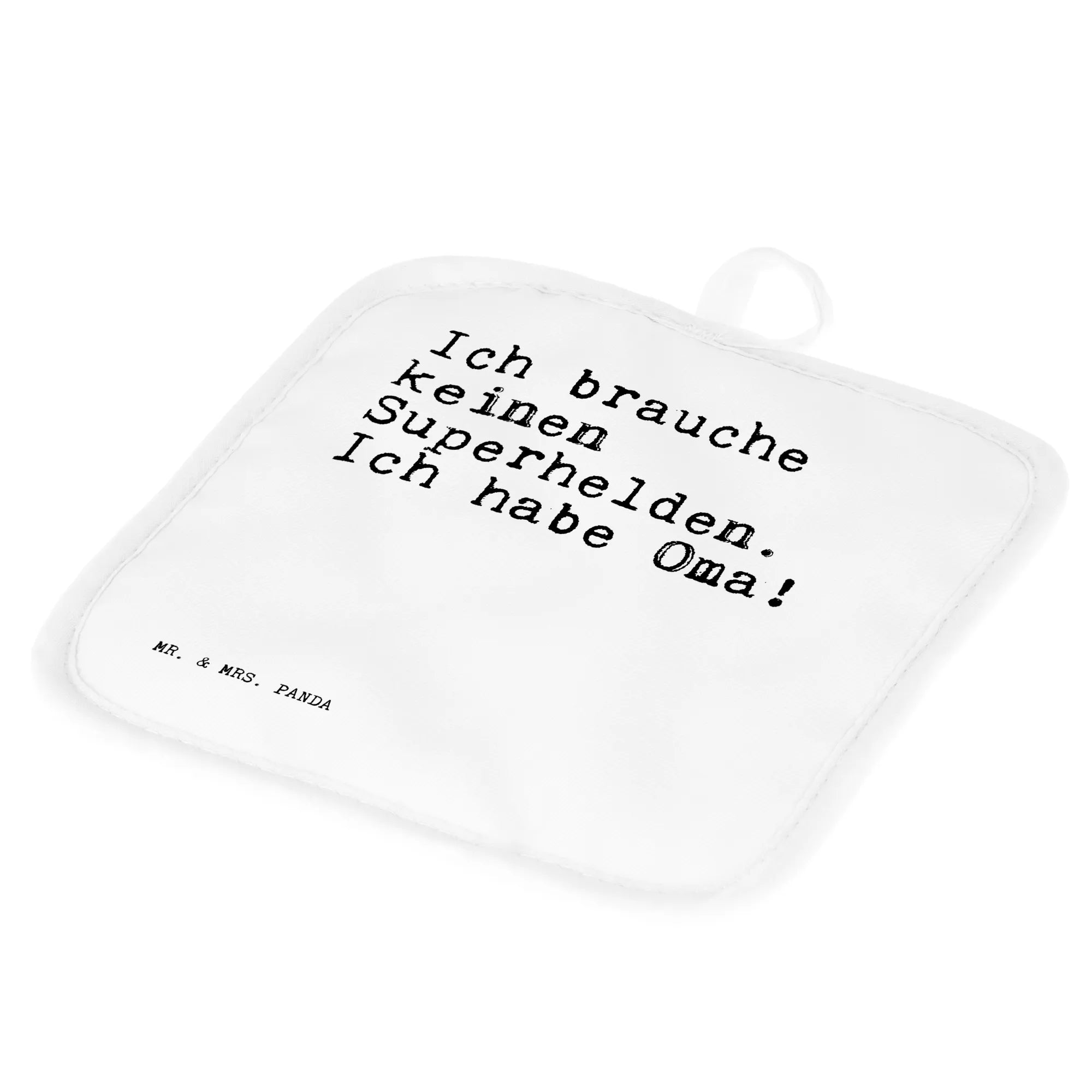 Entdecke das bezaubernde 2er Set Topflappen von Mr. & Mrs. Panda mit dem herzlichen Spruch: "Ich brauche keinen Superhelden. Ich habe Oma!"! Dieses Set ist das ideale Geschenk für alle, die das Besondere in der Küche lieben und ihrer Oma eine ganz besondere Freude bereiten möchten.