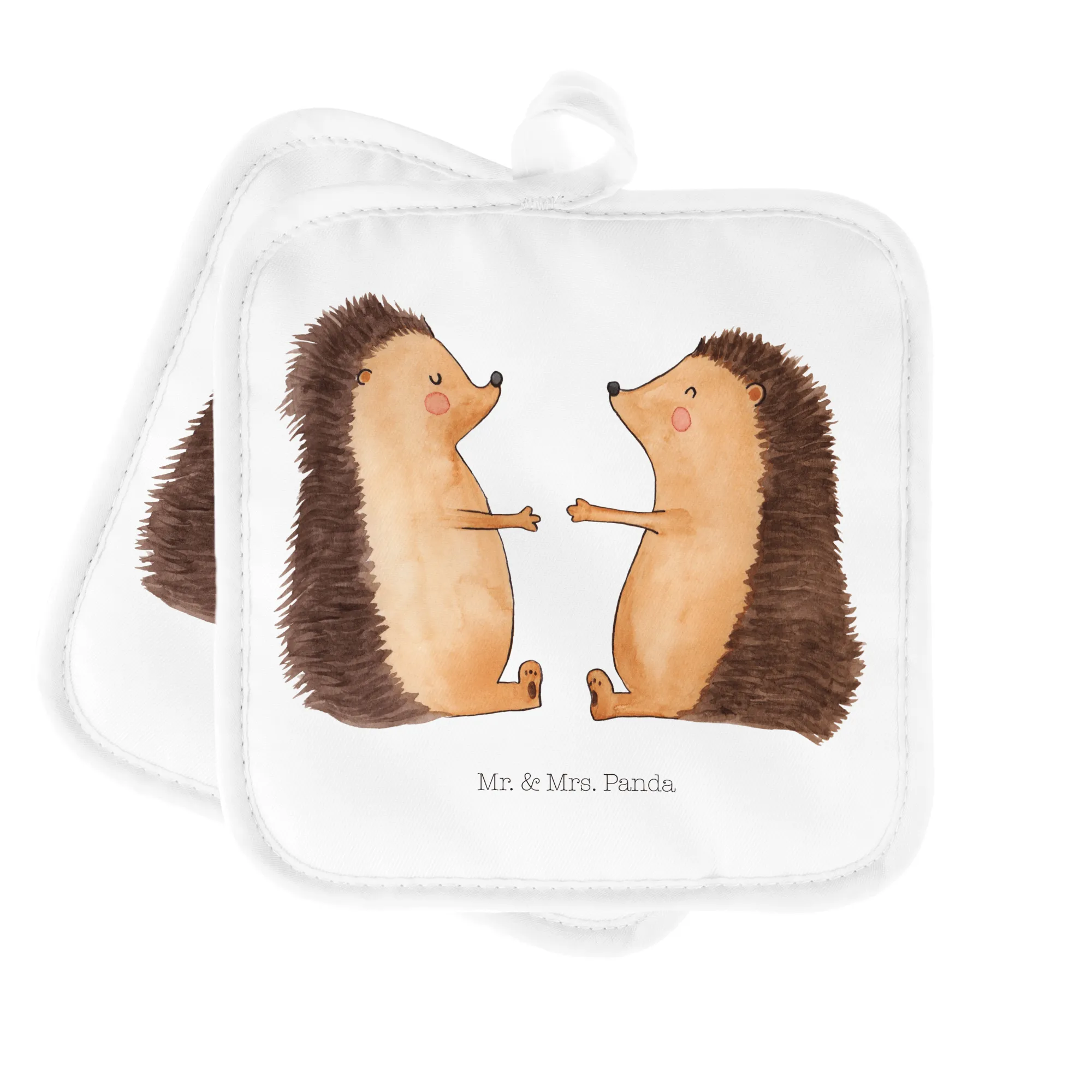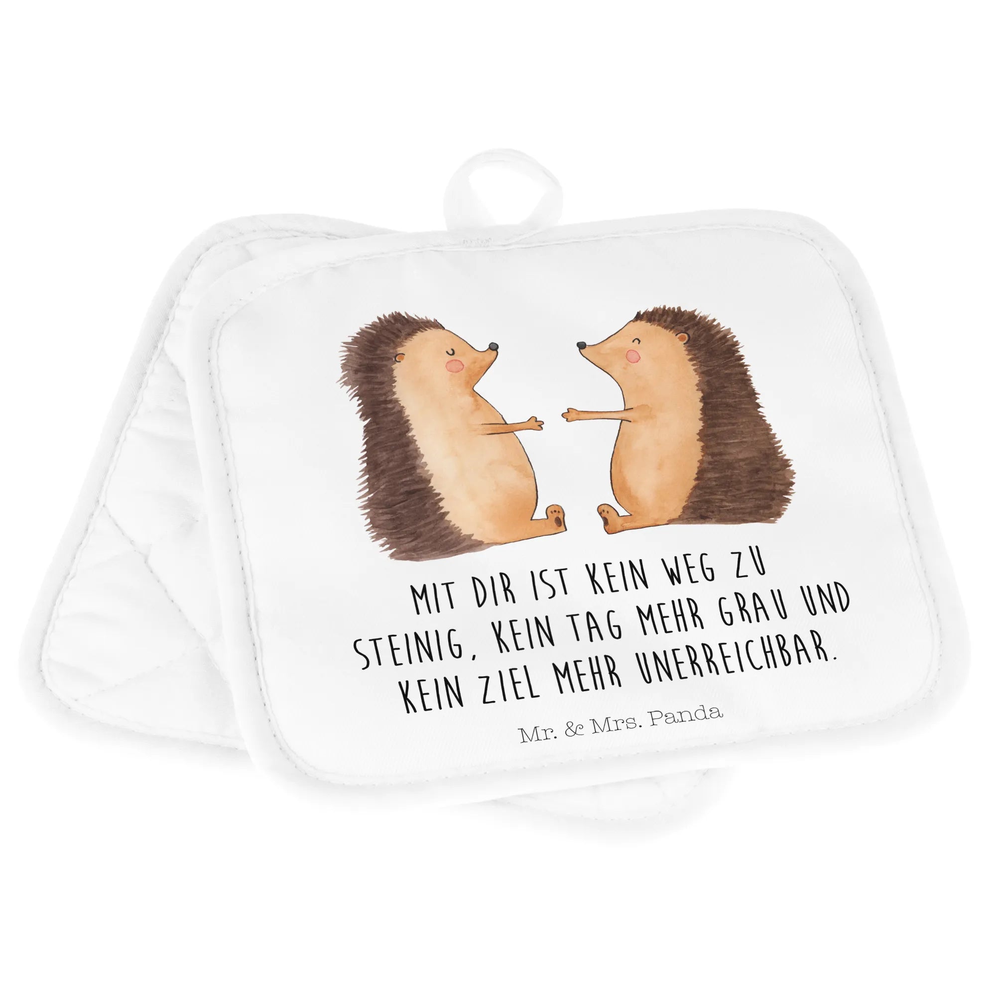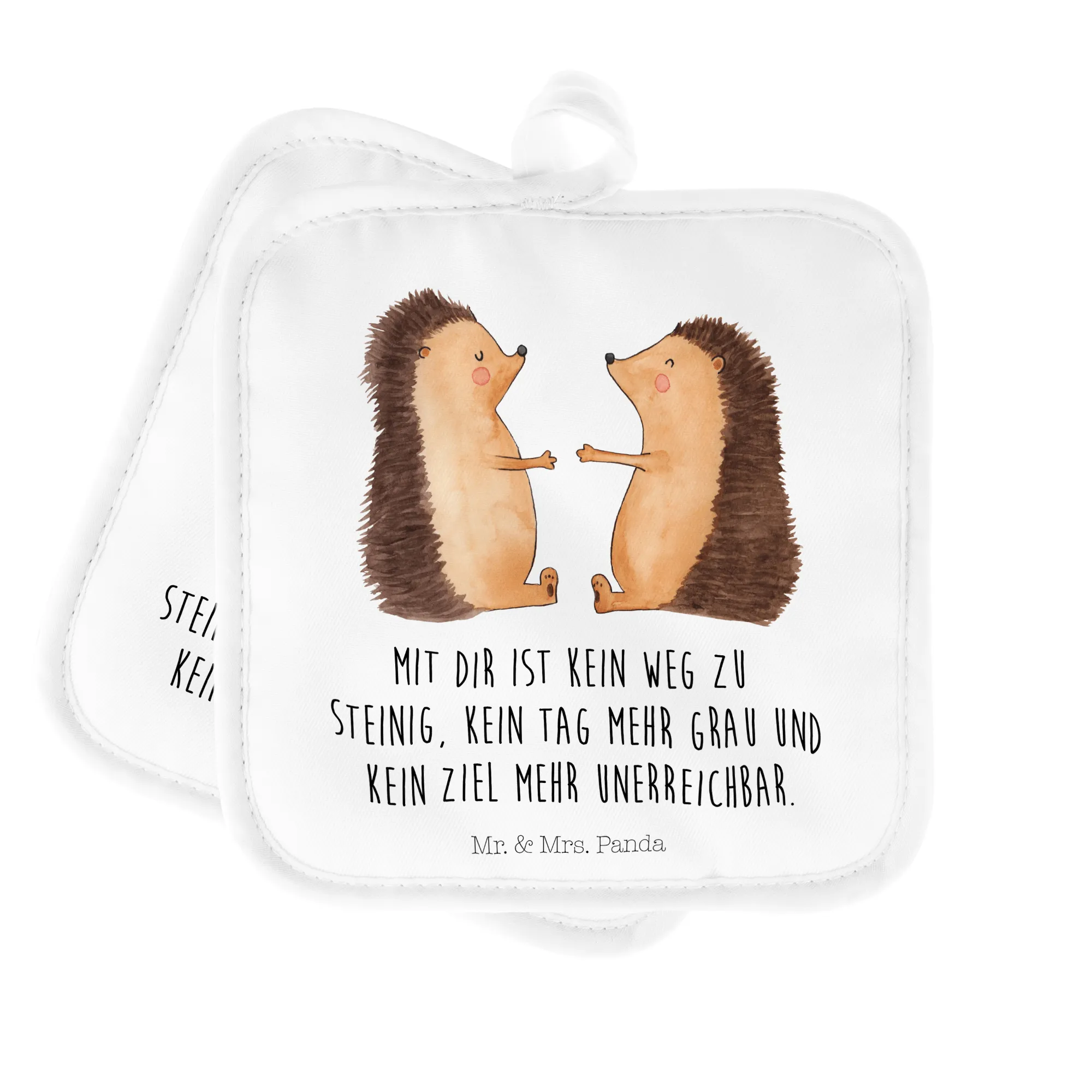 Du suchst nach einem besonderen Geschenk für den wichtigsten Menschen in deinem Leben? Dann sind die 2er Set Topflappen "Igel Liebe" von Mr. & Mrs. Panda genau das Richtige für dich! Diese liebevoll gestalteten Topflappen sind nicht nur praktisch, sondern auch ein wahrer Ausdruck deiner Zuneigung. Sie zeigen zwei niedliche Igelchen, die in einer innigen Pose der Zuneigung zueinander stehen - perfekt, um deine Liebe zu symbolisieren. Der Slogan "Mit dir ist kein Weg zu steinig, kein Tag mehr grau und kein Ziel mehr unerreichbar" rundet das Design liebevoll ab.