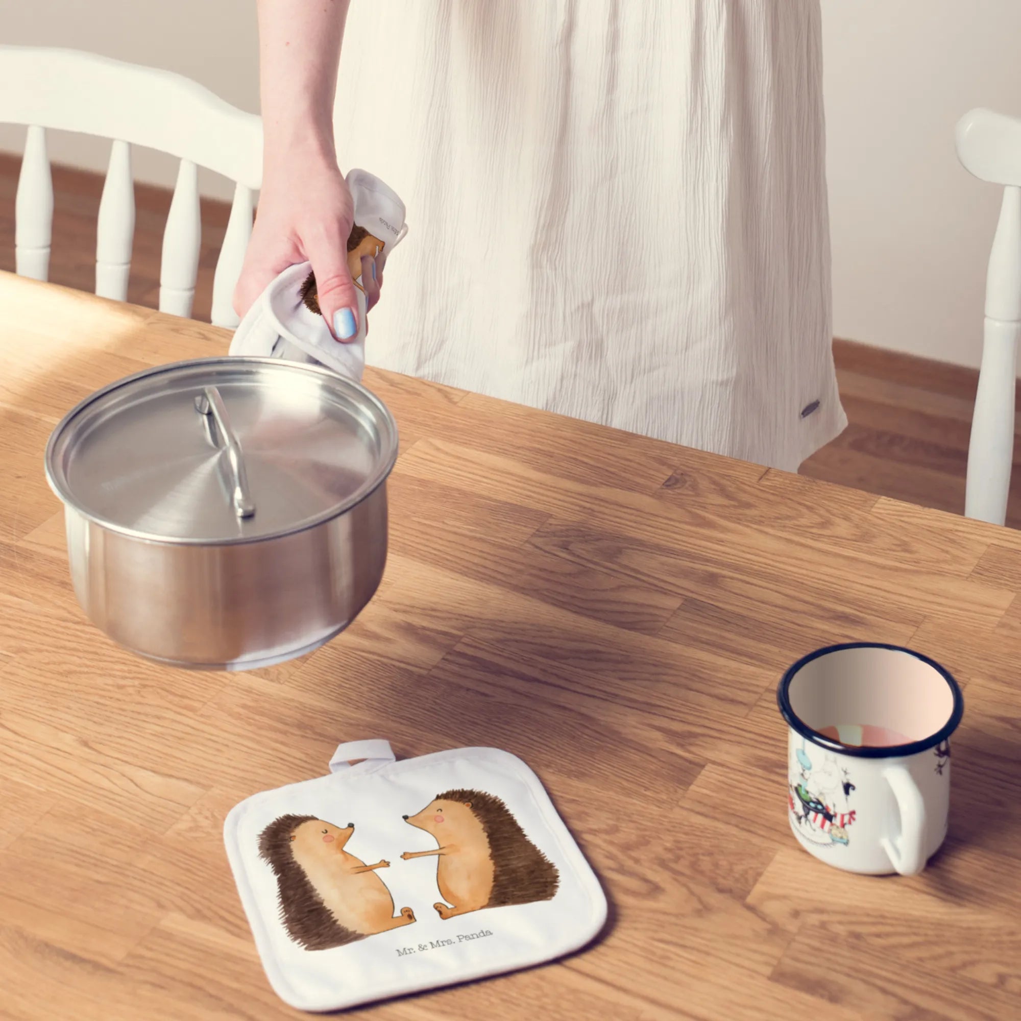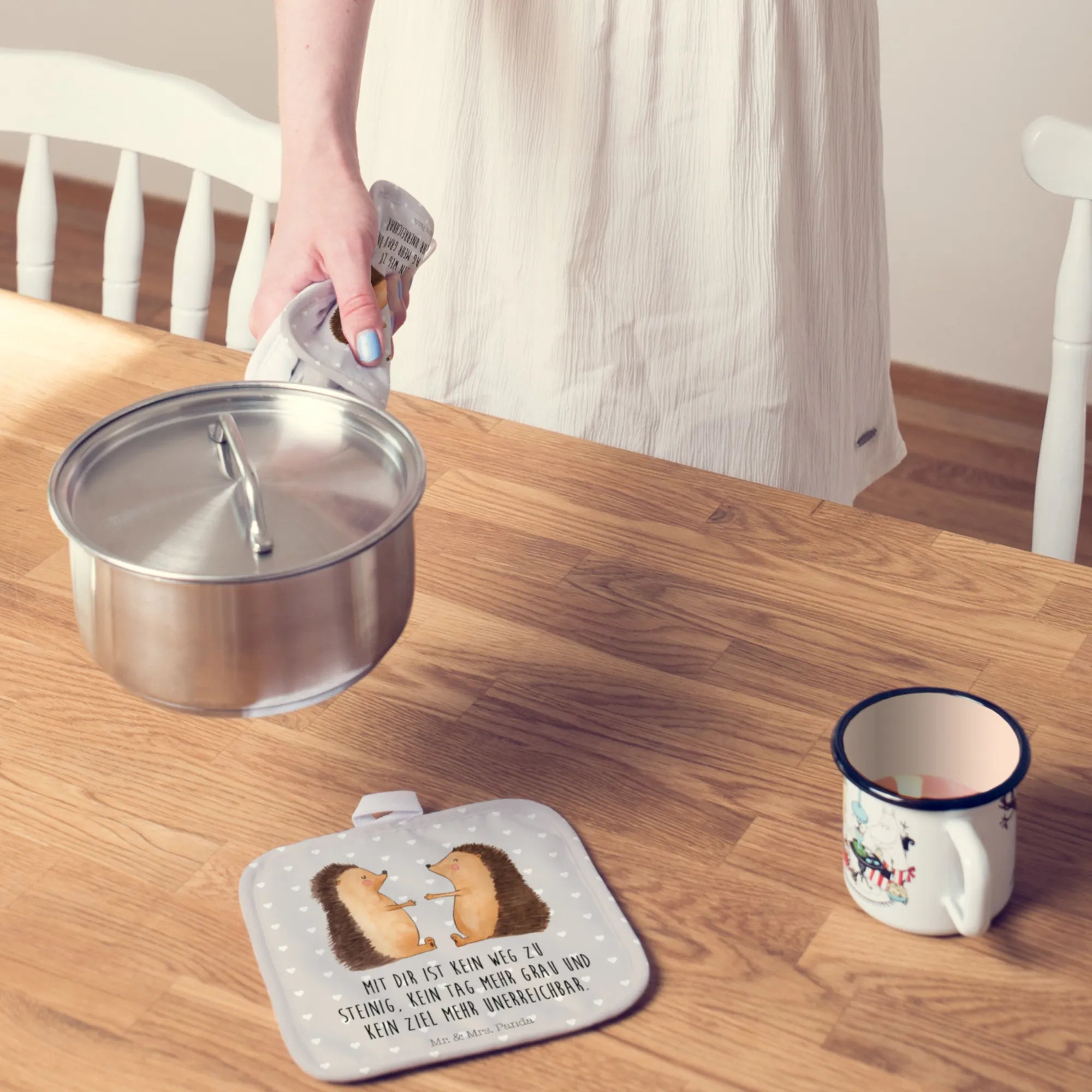 Das 2er Set Topflappen 'Igel Liebe' aus der Kollektion Liebe von Mr. & Mrs. Panda ist das perfekte Geschenk für alle Verliebten. Diese liebevoll gestalteten Topflappen bringen nicht nur Farbe in deine Küche, sondern auch eine herzliche Botschaft. Mit dem süßen Motiv der verliebten Igelchen, die sich zärtlich gegenüberstehen, wirst du sofort in Romantik und Wärme eintauchen. Die Igelchen symbolisieren die Verbundenheit und Liebe, die du mit deinem Partner teilst. Perfekt für Anlässe wie Jahrestage, Hochzeiten oder einfach als Liebesgeschenk zwischendurch. Durch den freundlichen Spruch ‘Mit dir ist kein Weg zu steinig, kein Tag mehr grau und kein Ziel mehr unerreichbar.’ wird dieses Geschenk noch persönlicher und lässt das Herz deiner Liebsten höher schlagen.