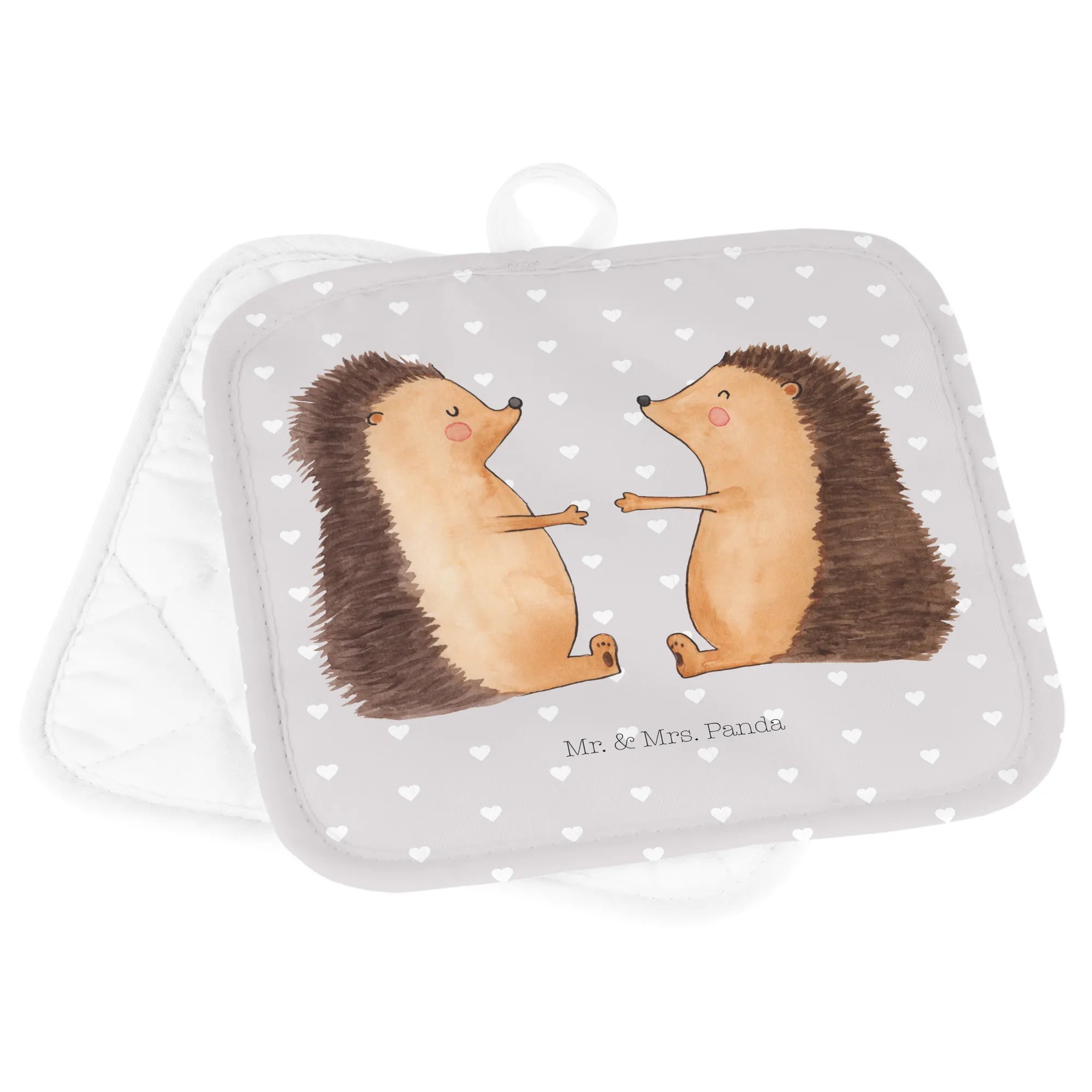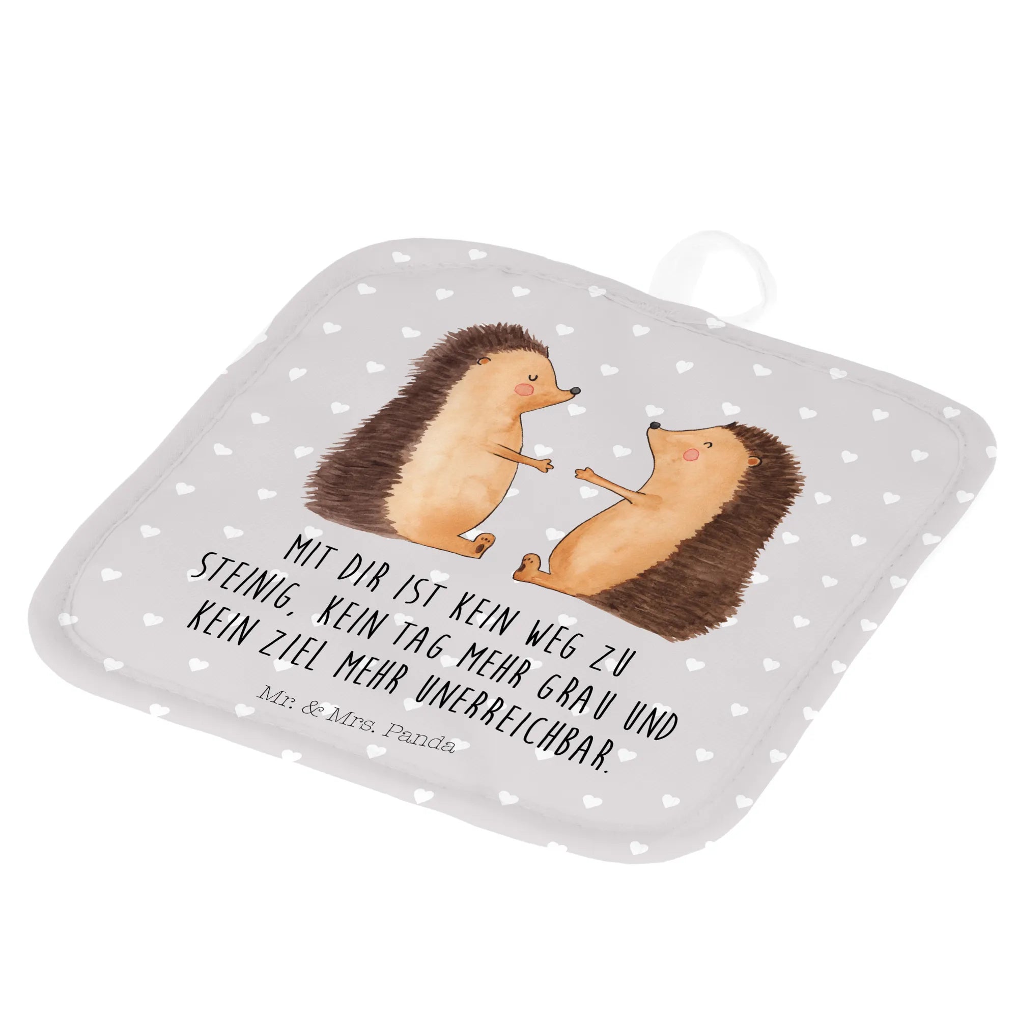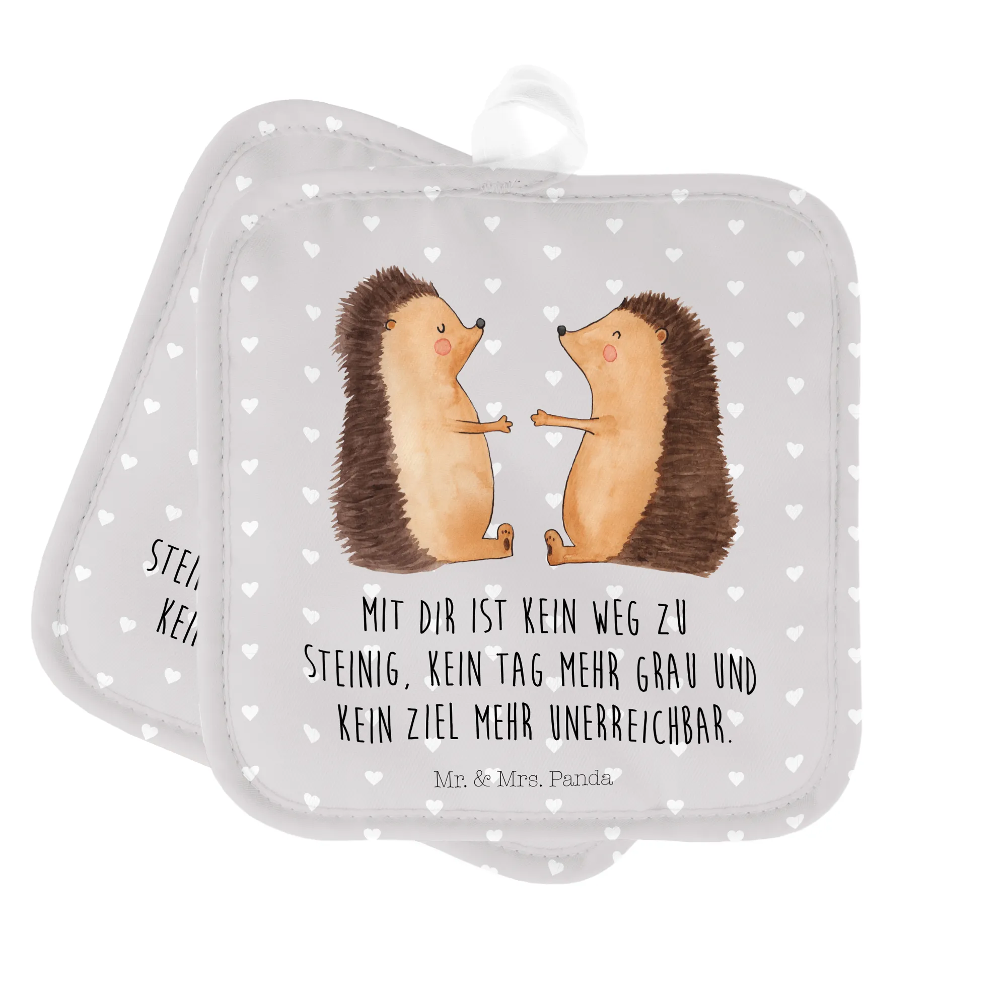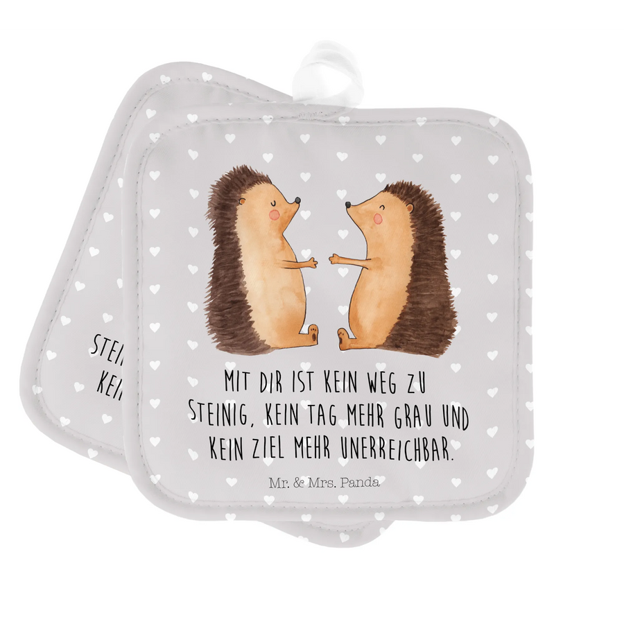 2er Set Topflappen Igel Liebe - mit Spruch - Grau Pastell