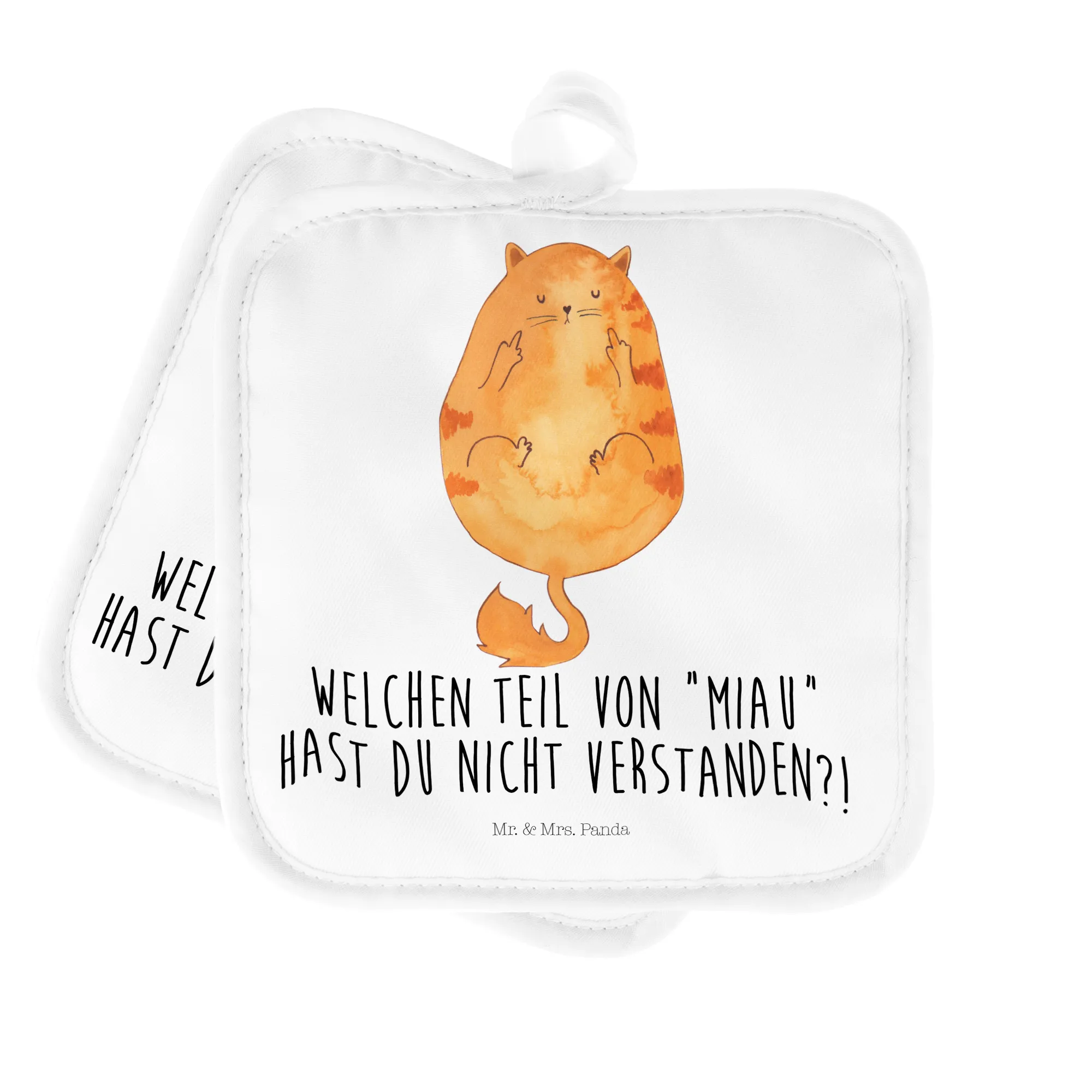 2er Set Topflappen Katze Mittelfinger - mit Spruch - Weiß