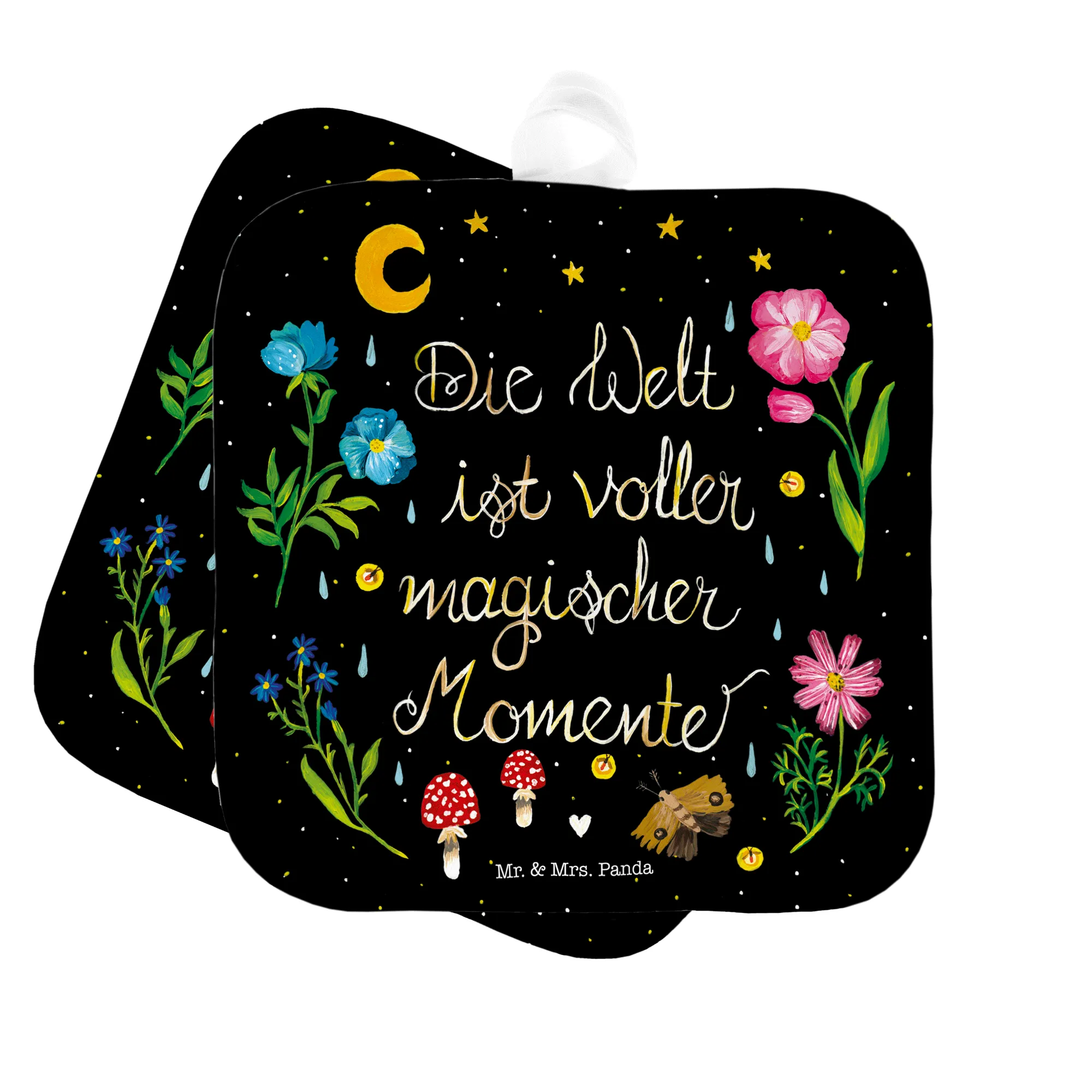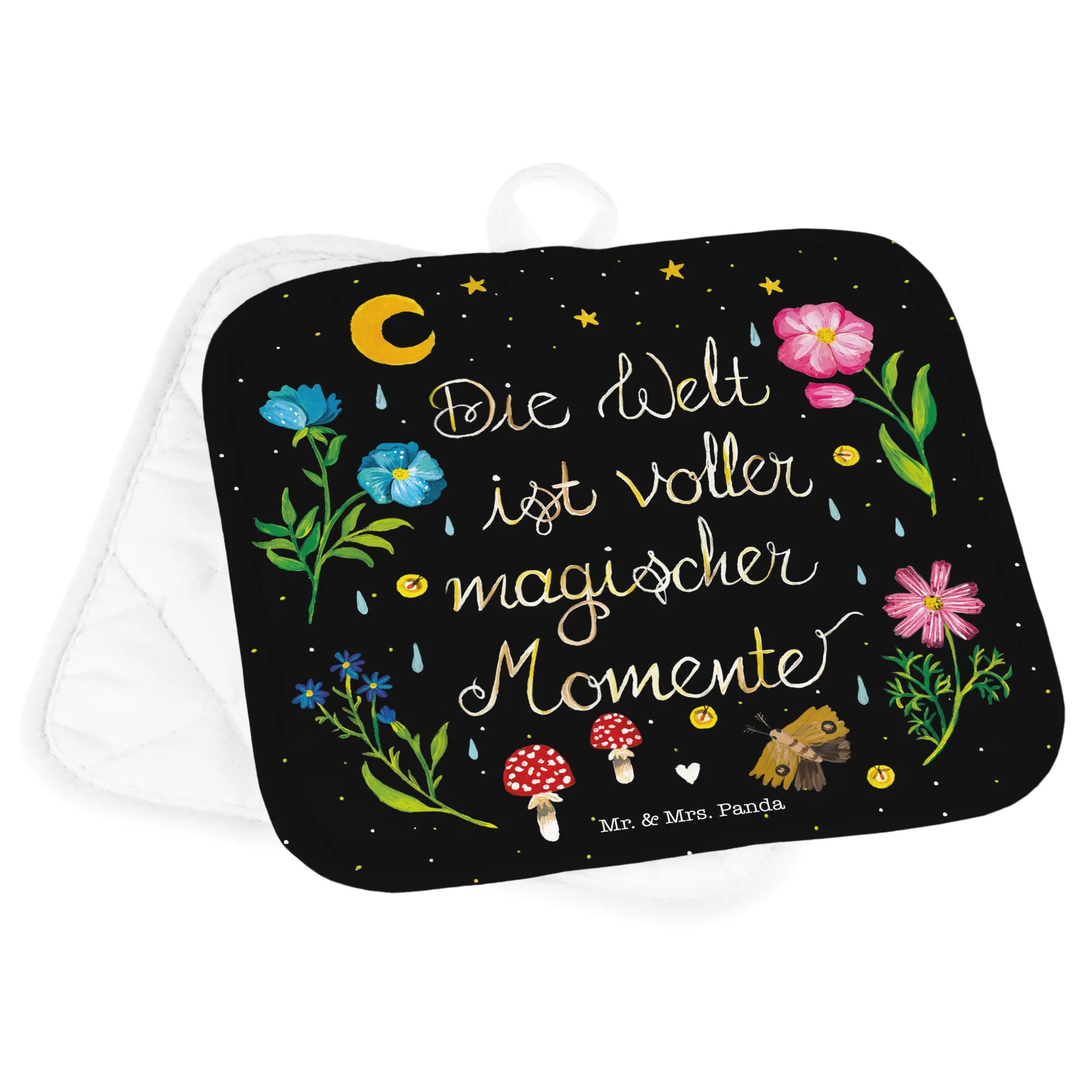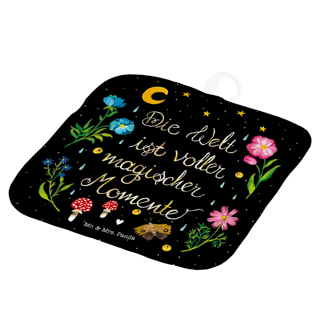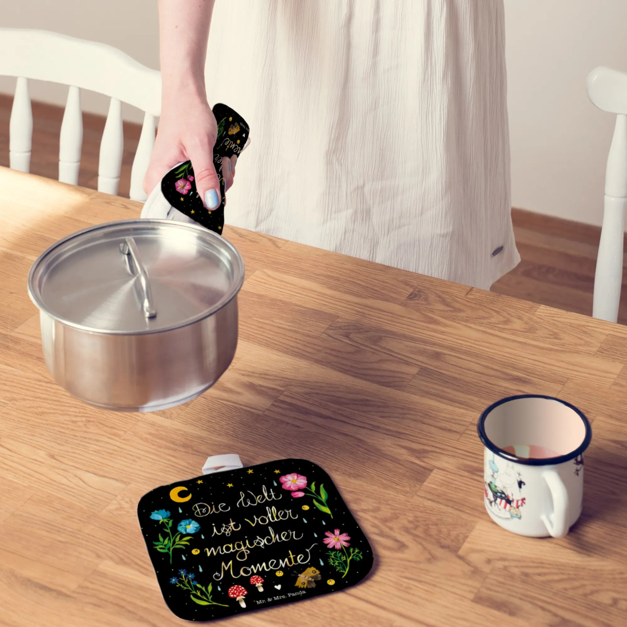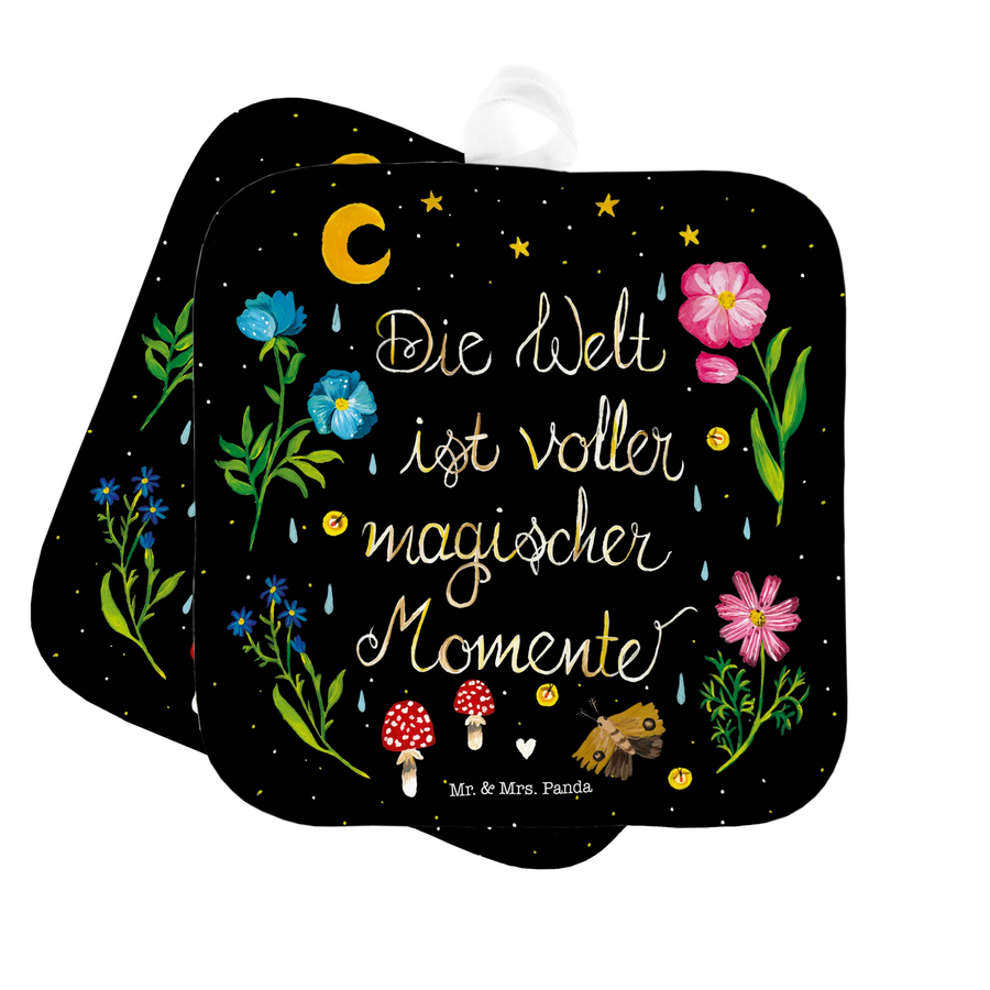 Warum du sie lieben wirst: Jedes Motiv der Wild & Free Kollektion wurde von Mrs. Panda liebevoll von Hand gezeichnet. Die Kombination aus Schwarz, zarten Blumen und einem schönen Spruch macht diese Topflappen zu einem besonderen Dekostück für Frühlings- und Sommer-Deko sowie für alle, die positive Sprüche und Magische Momente schätzen.