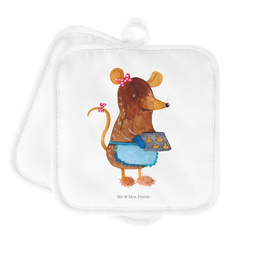 2er Set Topflappen Maus Kekse - ohne Spruch - Weiß