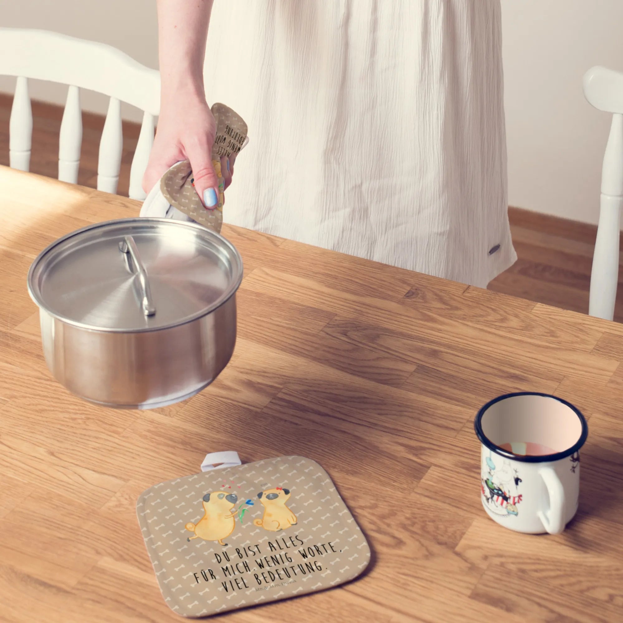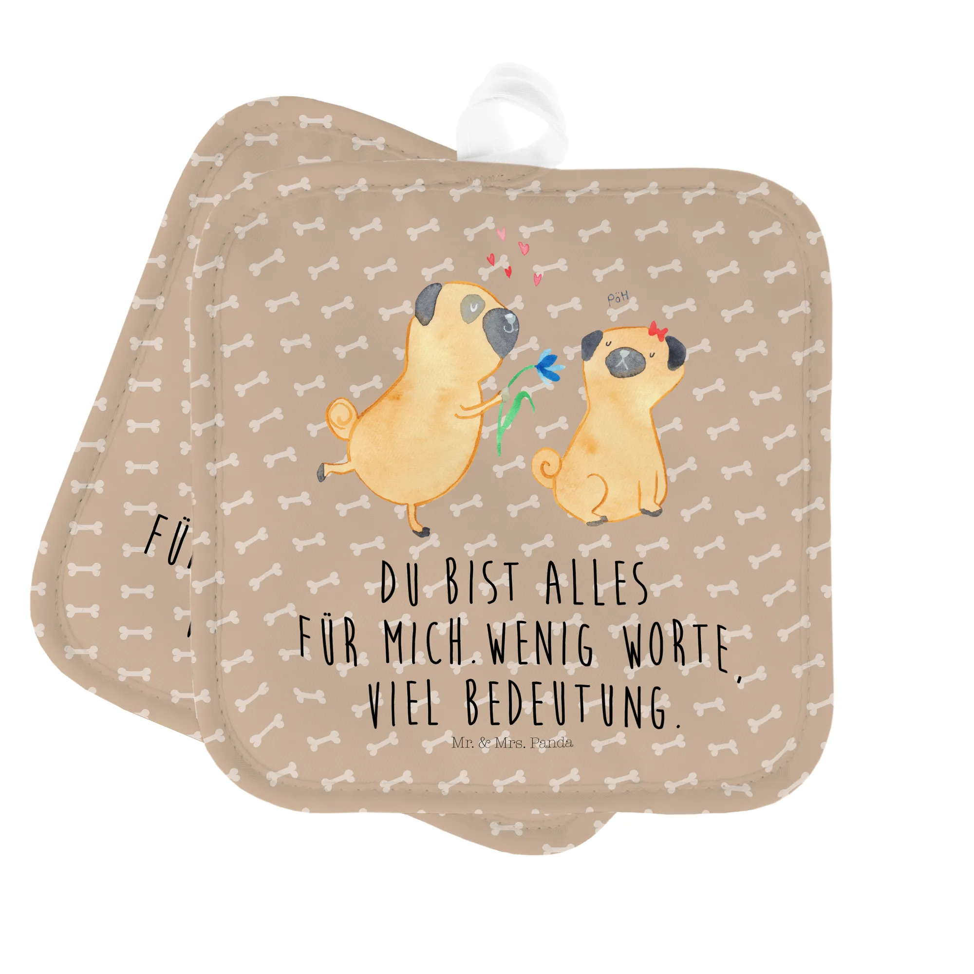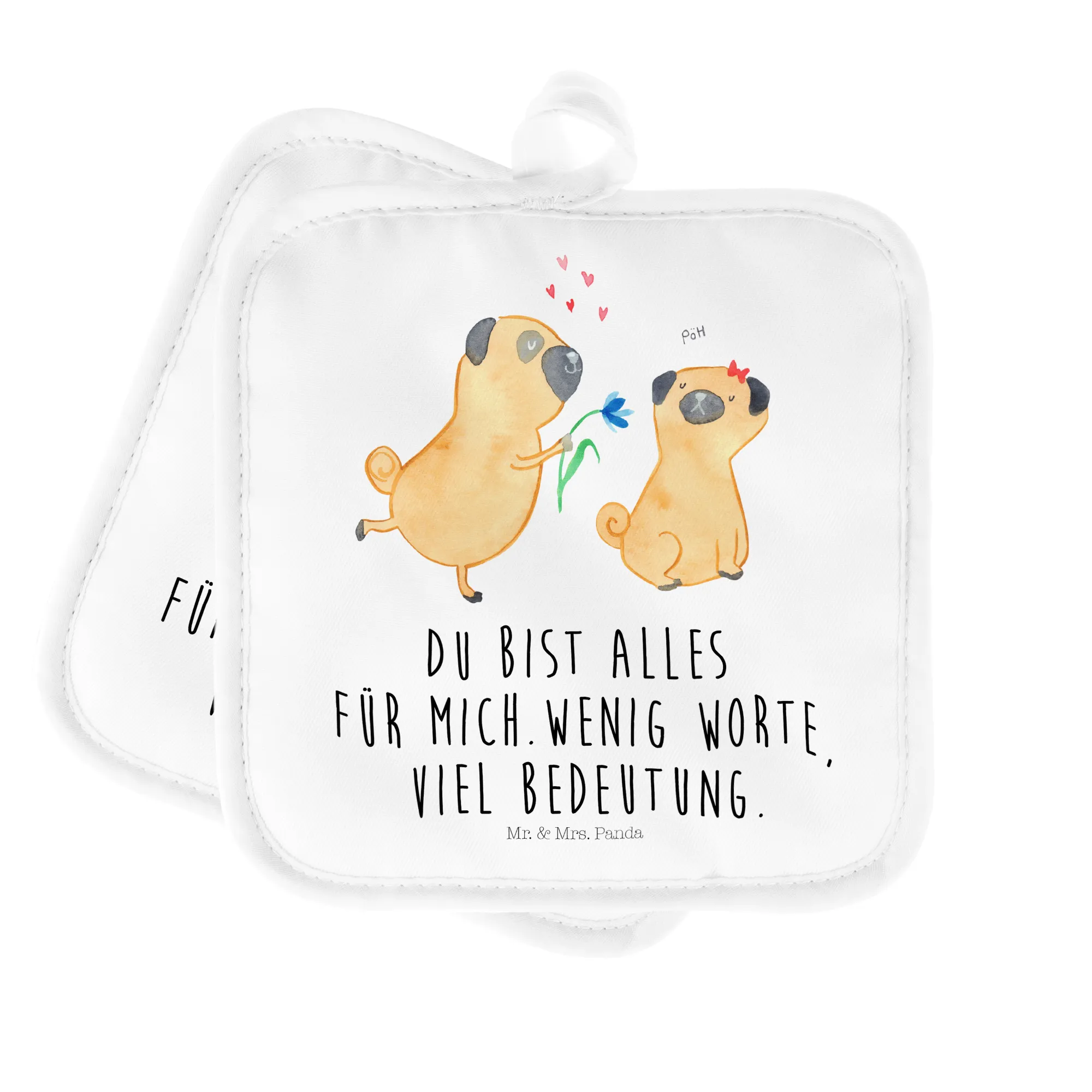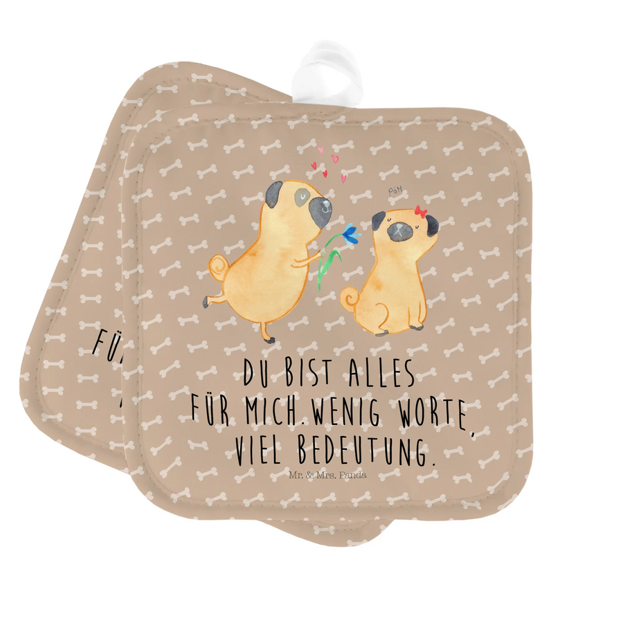 2er Set Topflappen Mops Verliebt - mit Spruch - Hundeglück