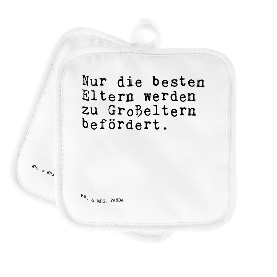 Die zwei wunderschönen Topflappen aus der Spruchreif Kollektion von Mr. & Mrs. Panda sind das perfekte Geschenk für stolze Großeltern! Mit dem bezaubernden Spruch "Nur die besten Eltern werden zu Großeltern befördert" verleihen sie jeder Küche eine liebevolle Note und sind ideal für jeden Anlass, sei es zur Geburt eines Enkels oder einfach nur, um Oma und Opa zu zeigen, wie sehr sie geschätzt werden.