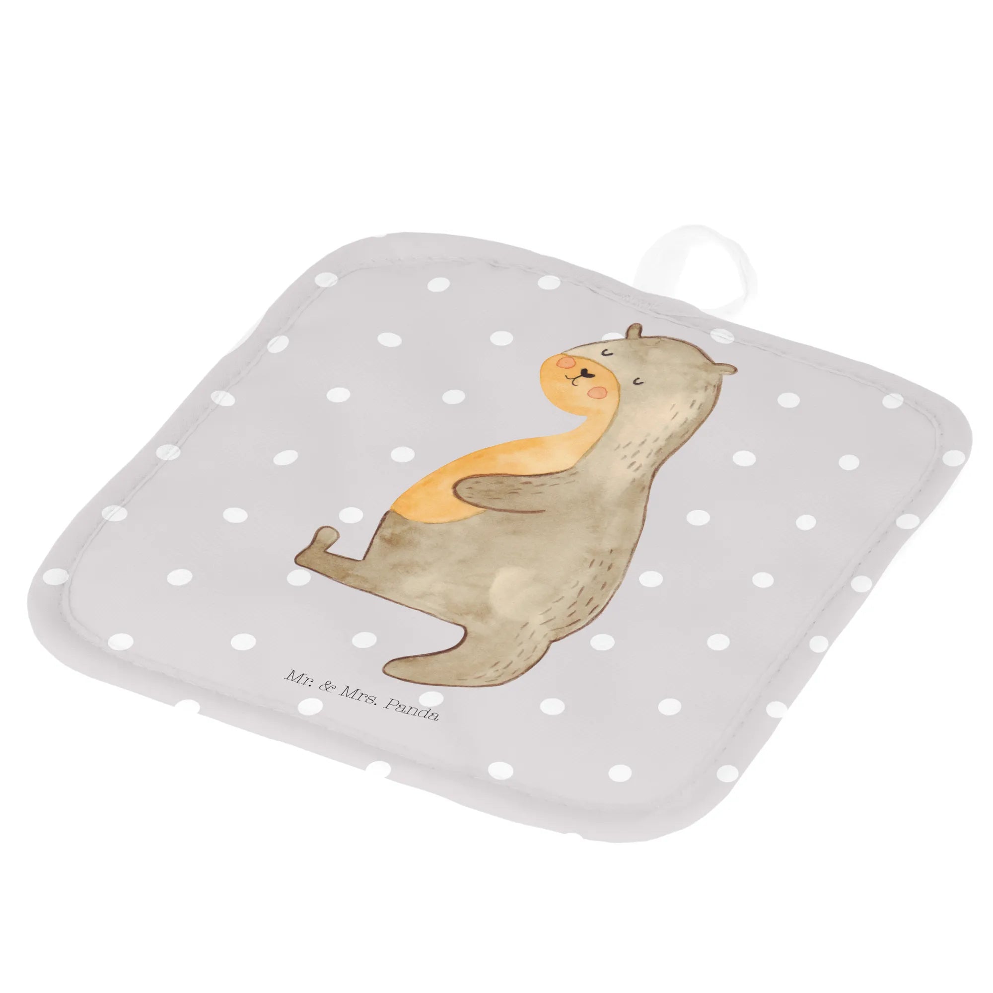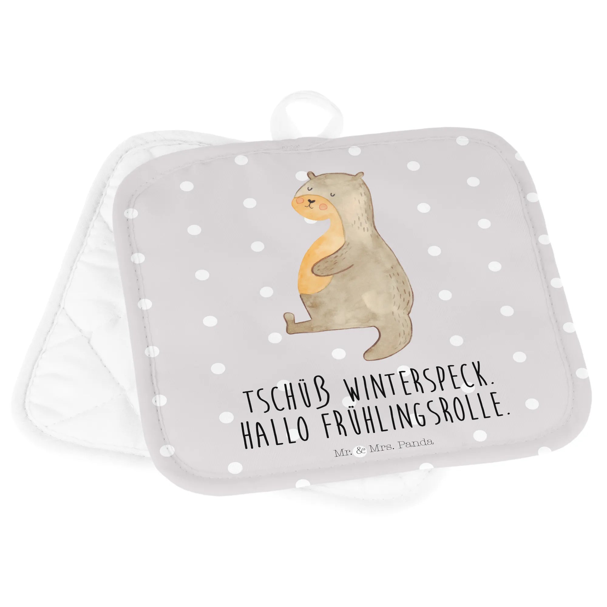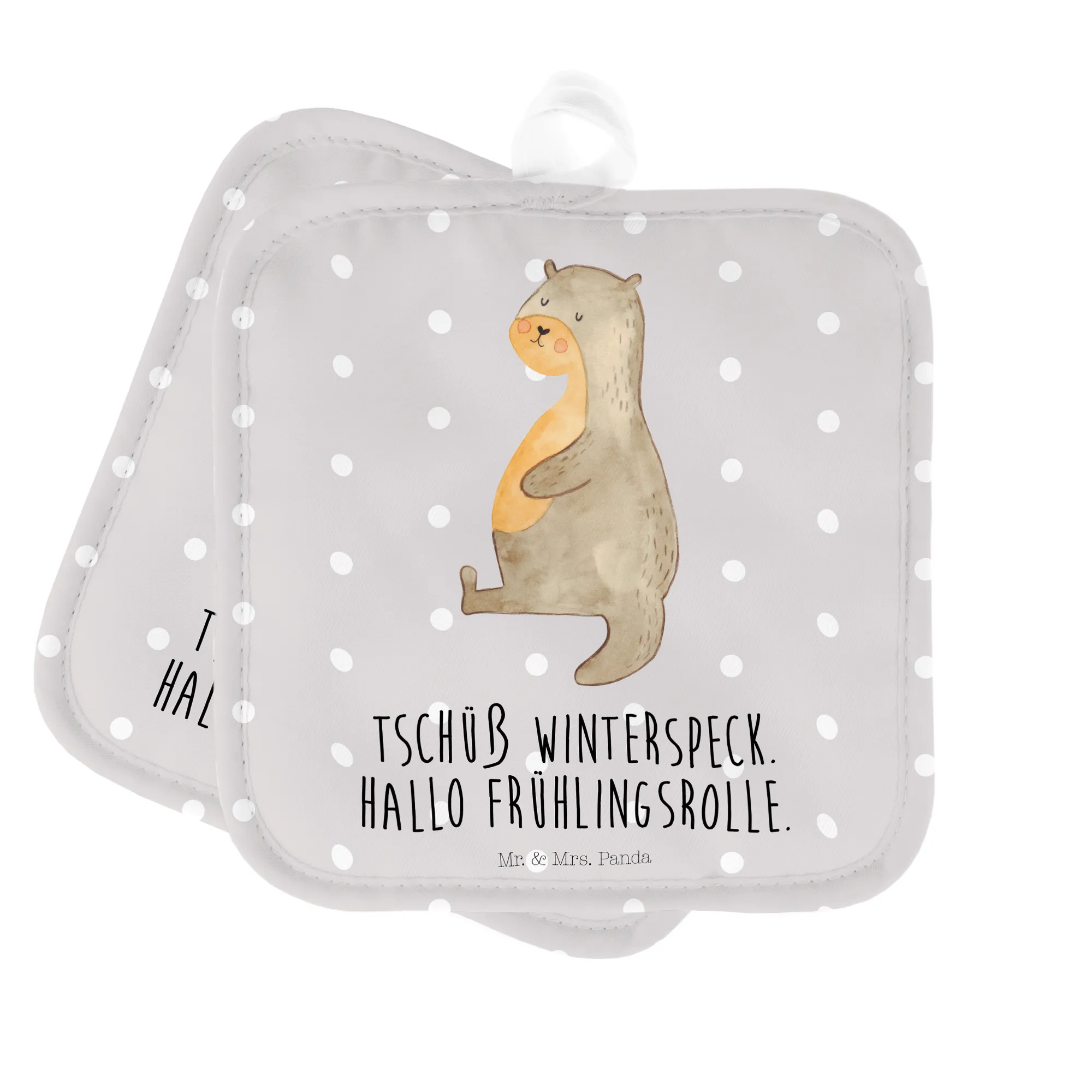 2er Set Topflappen Otter Bauch - mit Spruch - Grau Pastell