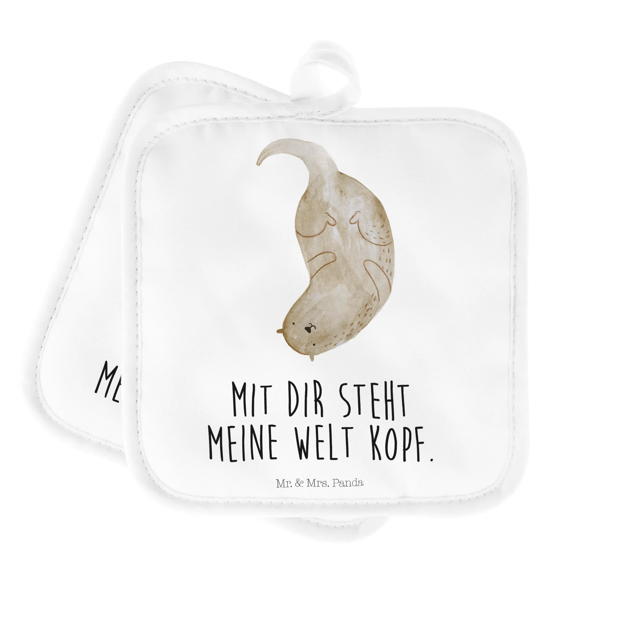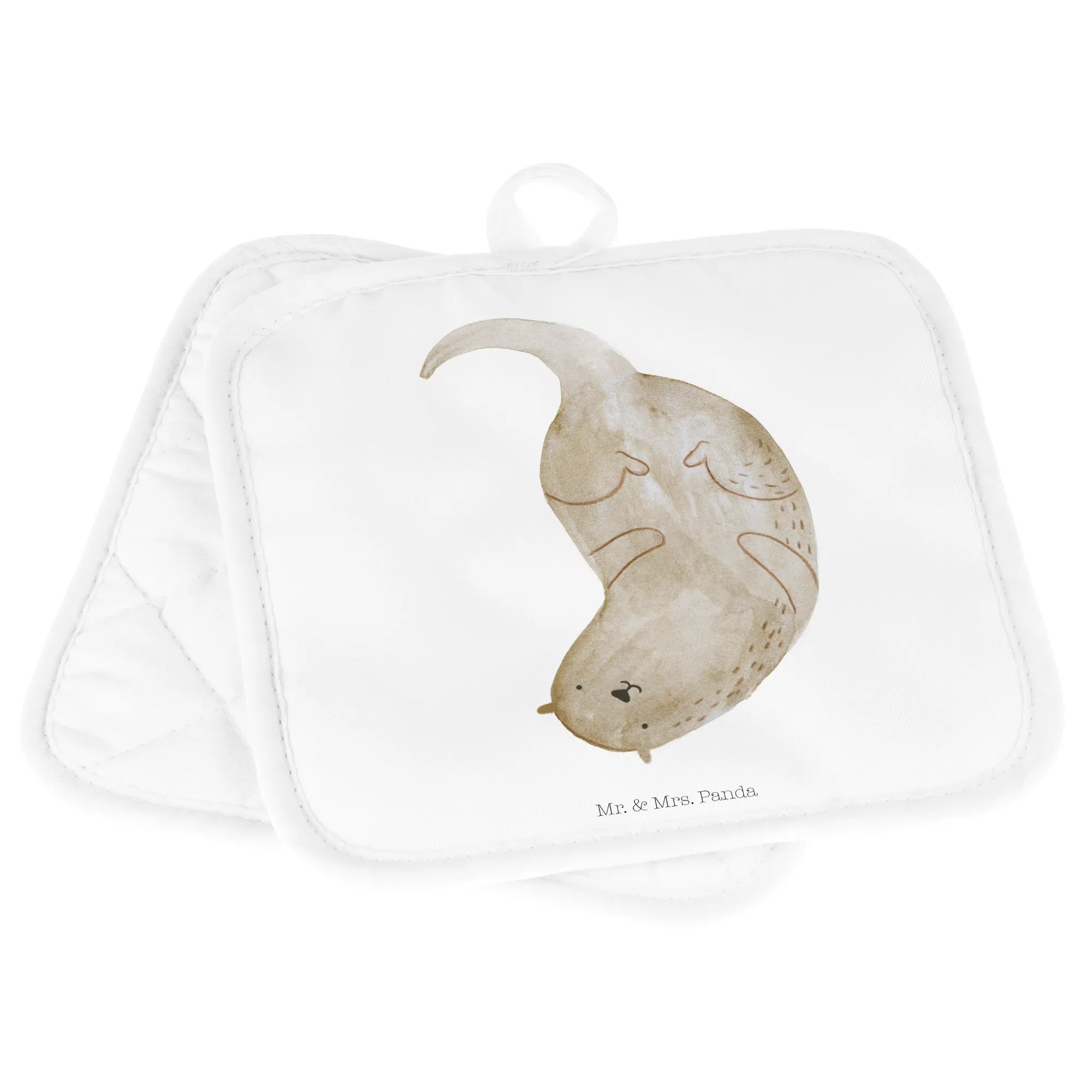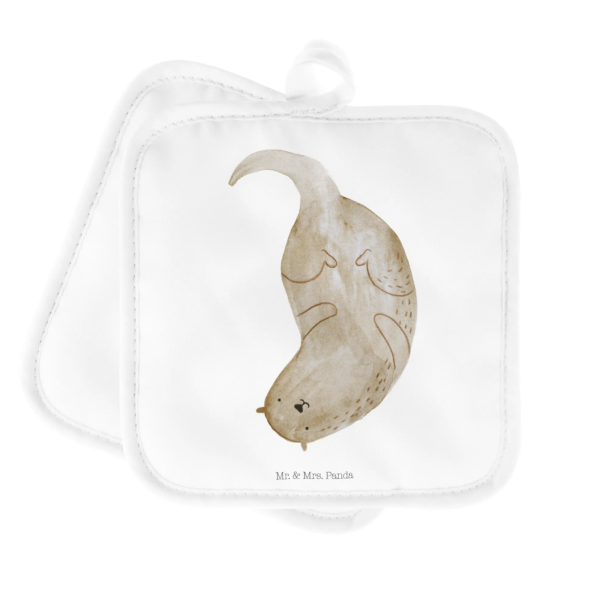 Entdecke das perfekte Geschenk für alle Otter-Liebhaber – unser 2er Set Topflappen mit dem süßen Motiv "Otter kopfüber" aus der Otter-Kollektion von Mr. & Mrs. Panda!