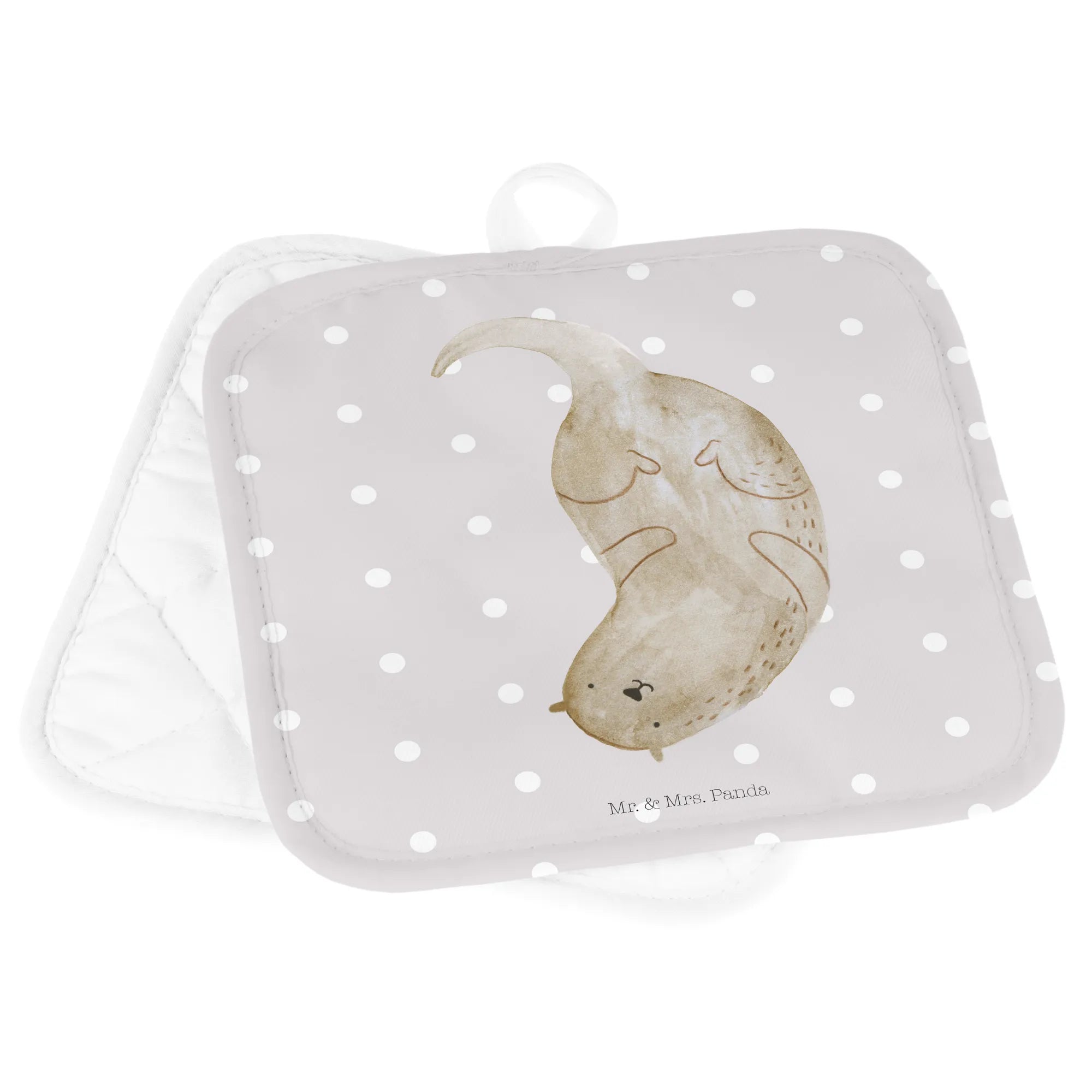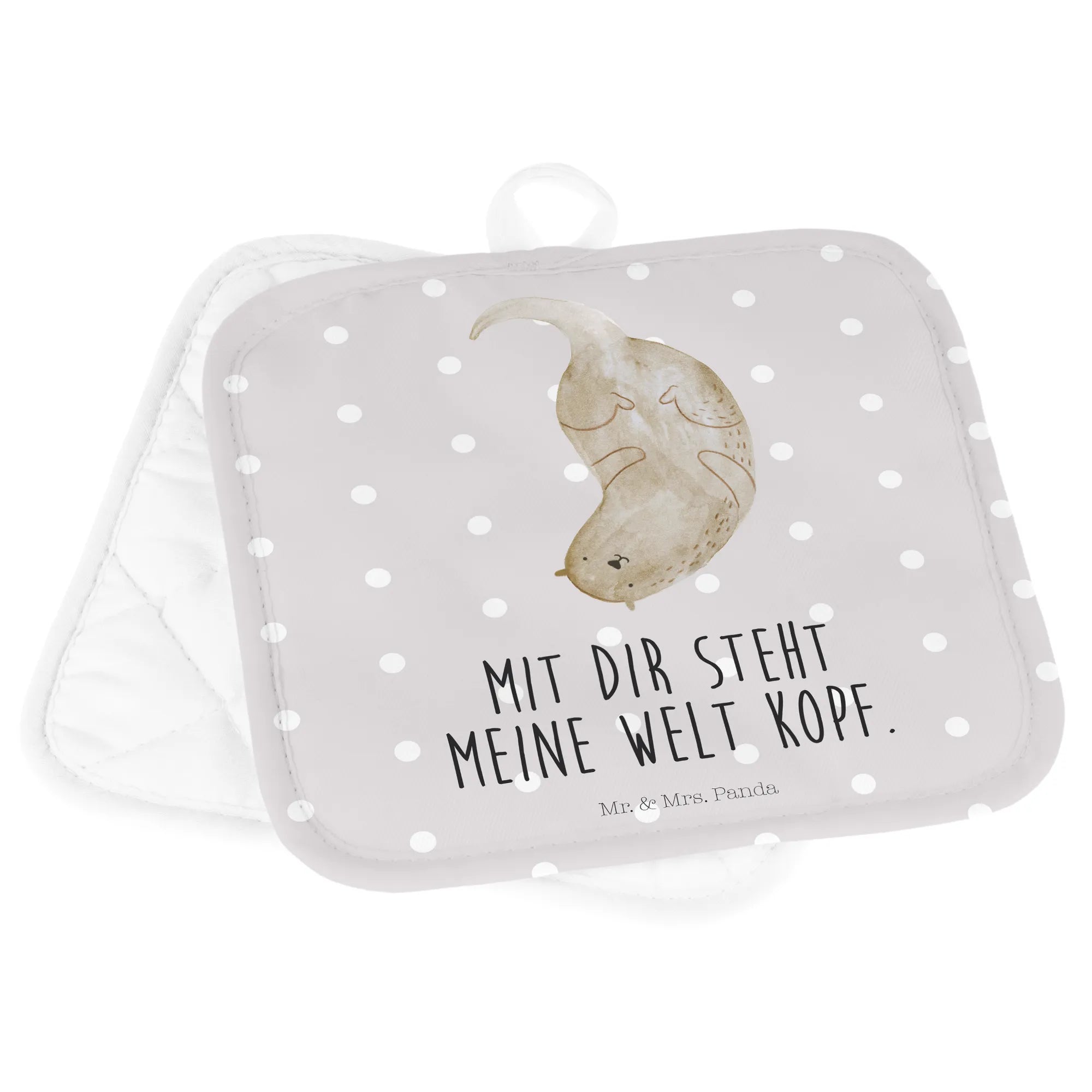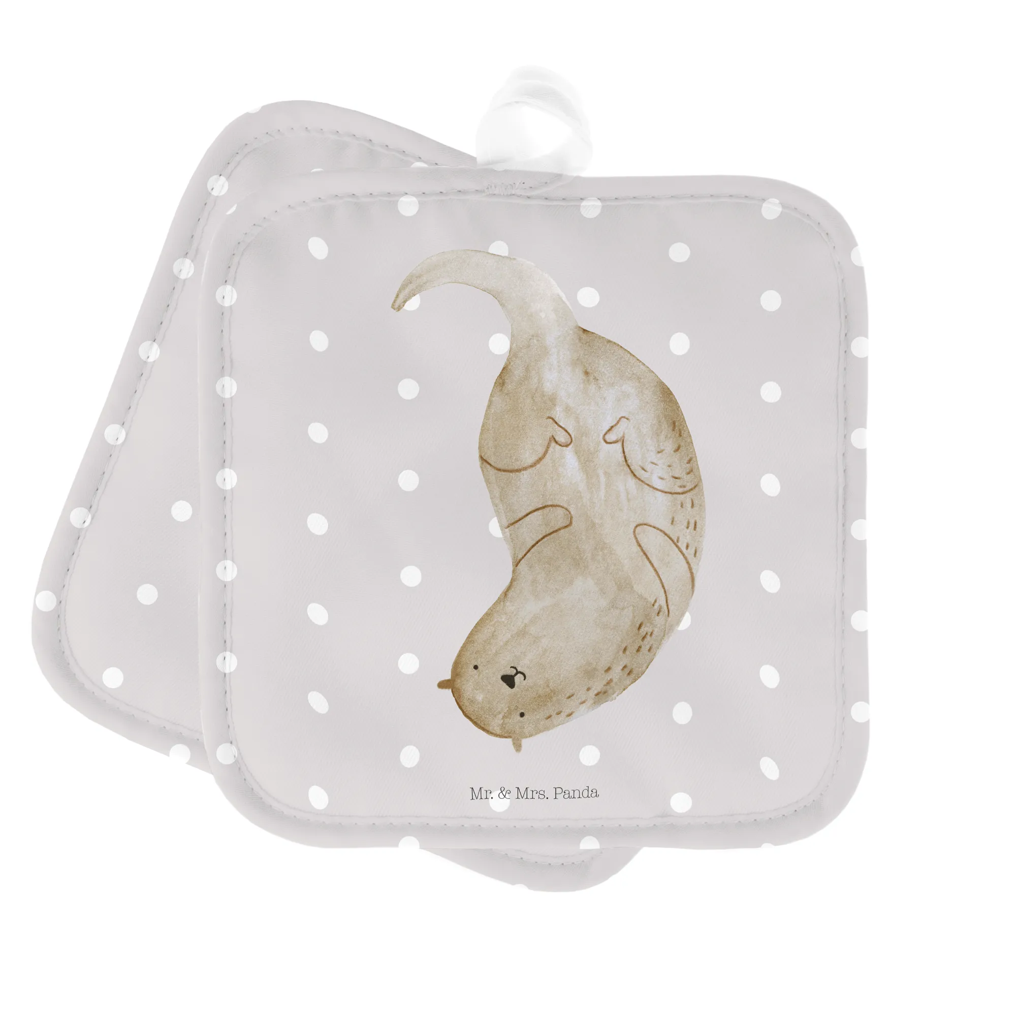 Entdecke das perfekte Geschenk für alle Otter-Liebhaber – unser 2er Set Topflappen mit dem süßen Motiv "Otter kopfüber" aus der Otter-Kollektion von Mr. & Mrs. Panda!
