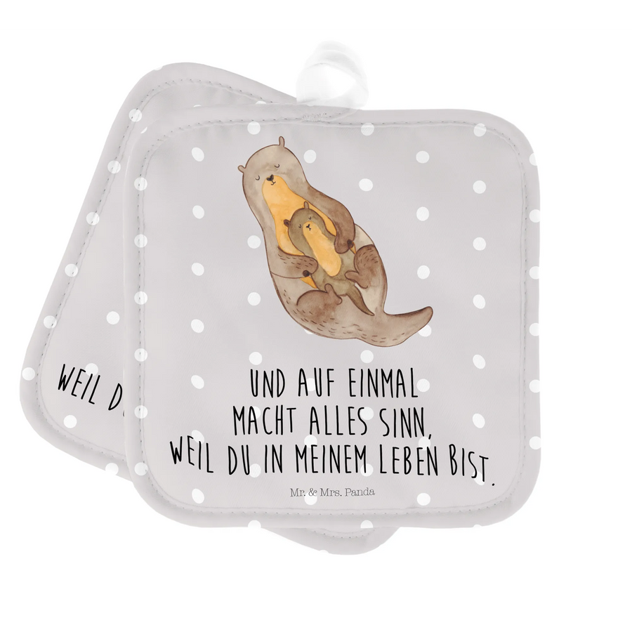 2er Set Topflappen Otter mit Kind - mit Spruch - Grau Pastell