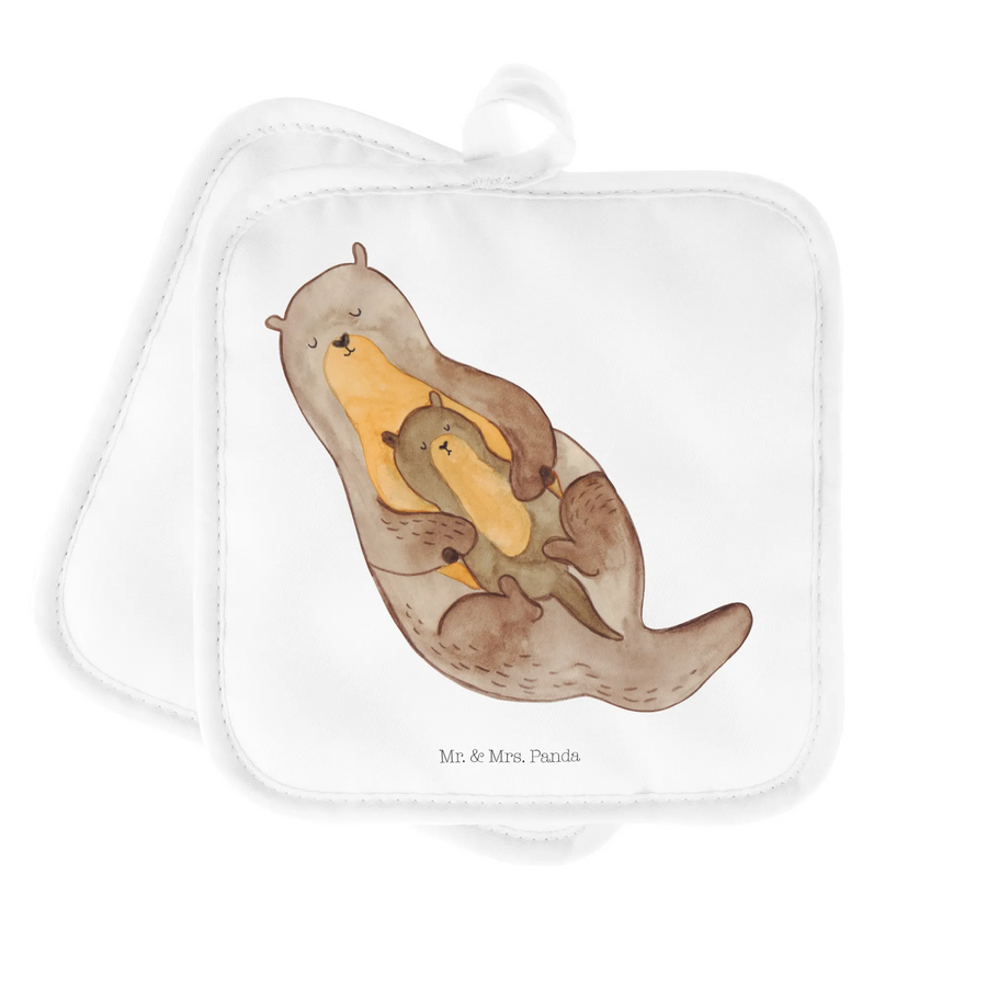 2er Set Topflappen Otter mit Kind - ohne Spruch - Weiß