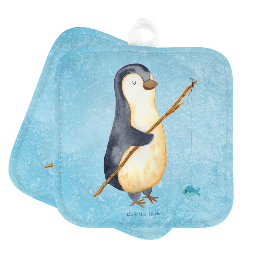 2er Set Topflappen Pinguin Angler - ohne Spruch - Eisblau