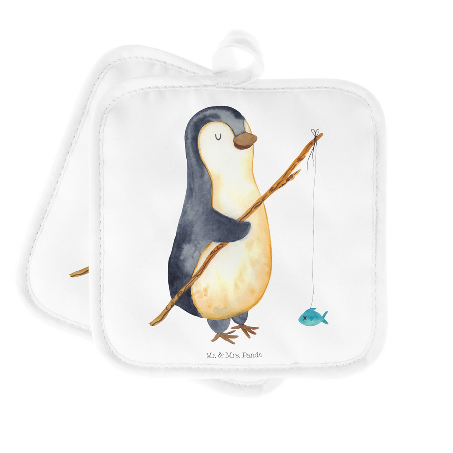 Mr. & Mrs. Panda 2er Set Topflappen »Pinguin Angler« – ein zauberhaftes Duo, das Deine Küche sofort aufhellt. Die handgezeichneten Pinguine in zarten Aquarellfarben bringen gute Laune und ein Stück Natur in Dein Zuhause. Der fröhliche Pinguin mit Angel ist das perfekte Motiv für Angler, Naturfreunde und alle, die tagträumen lieben. 🐧