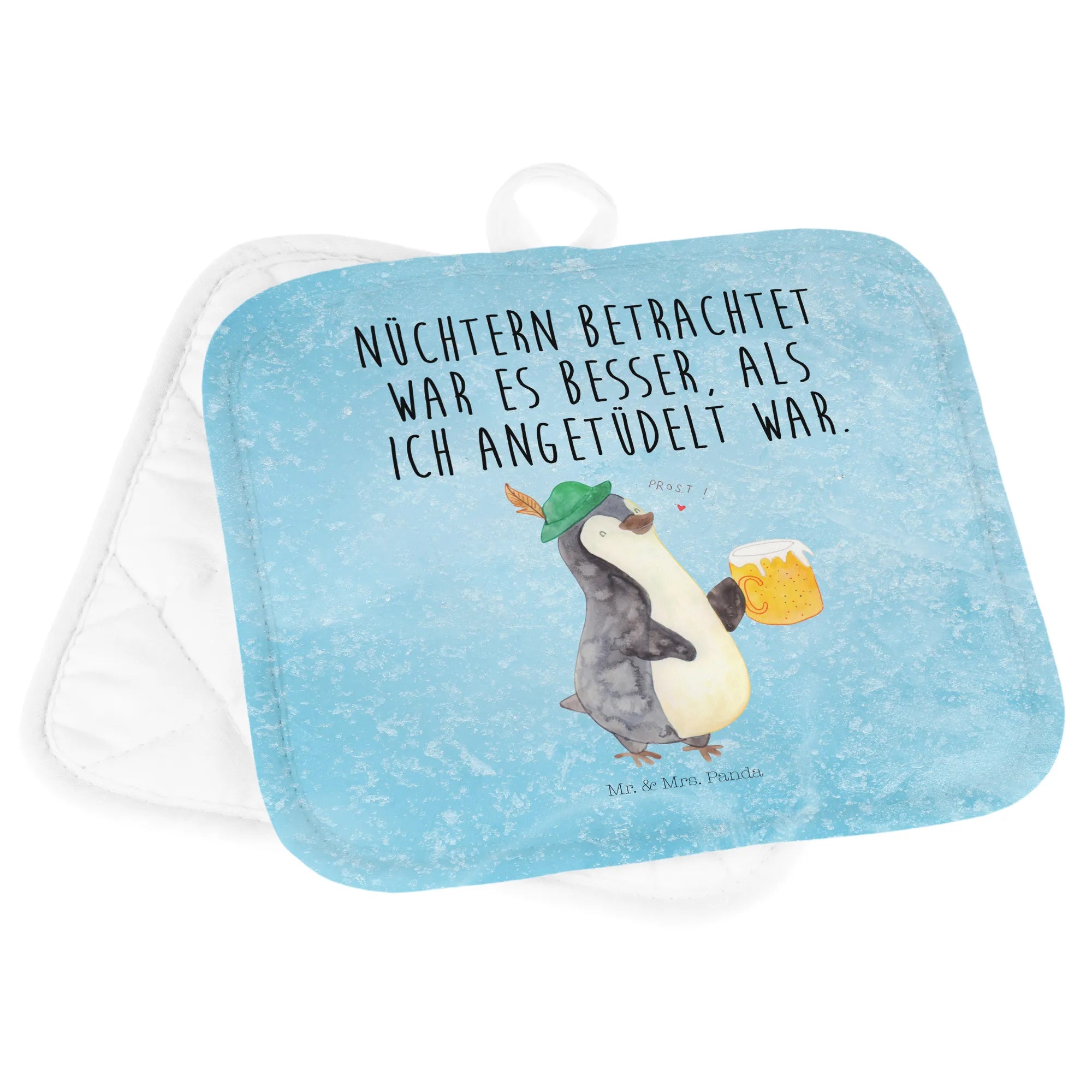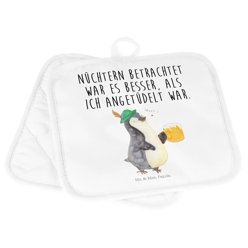 2er Set Topflappen Pinguin Bier - mit Spruch - Weiß