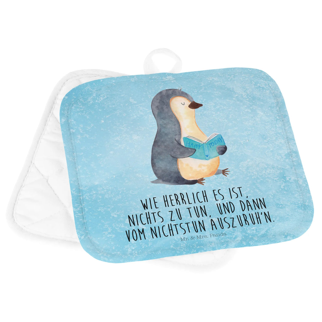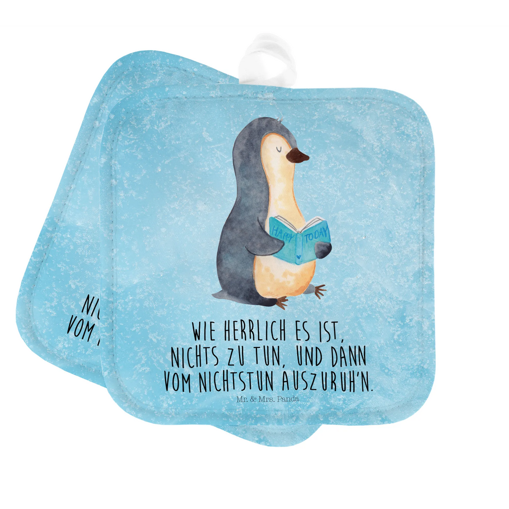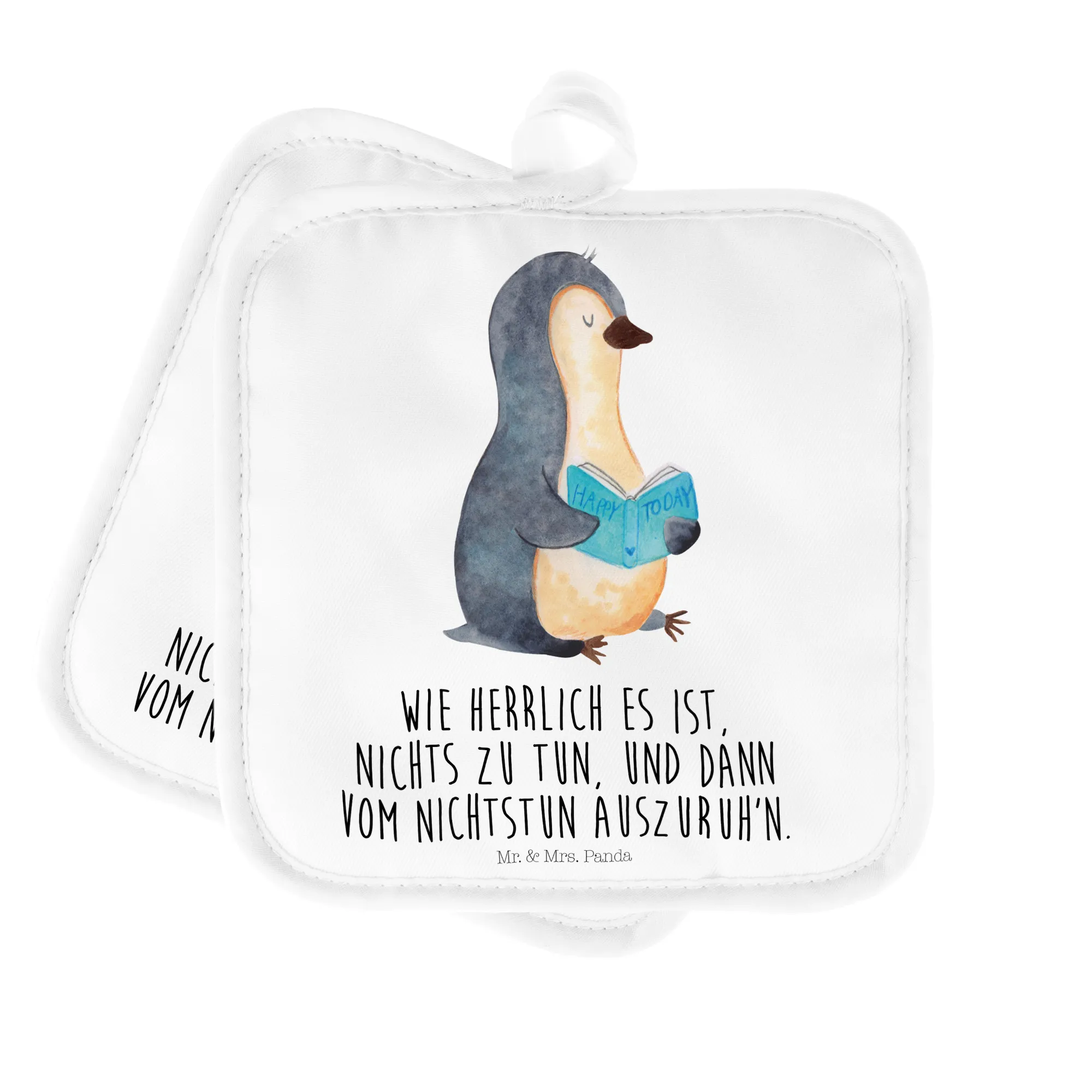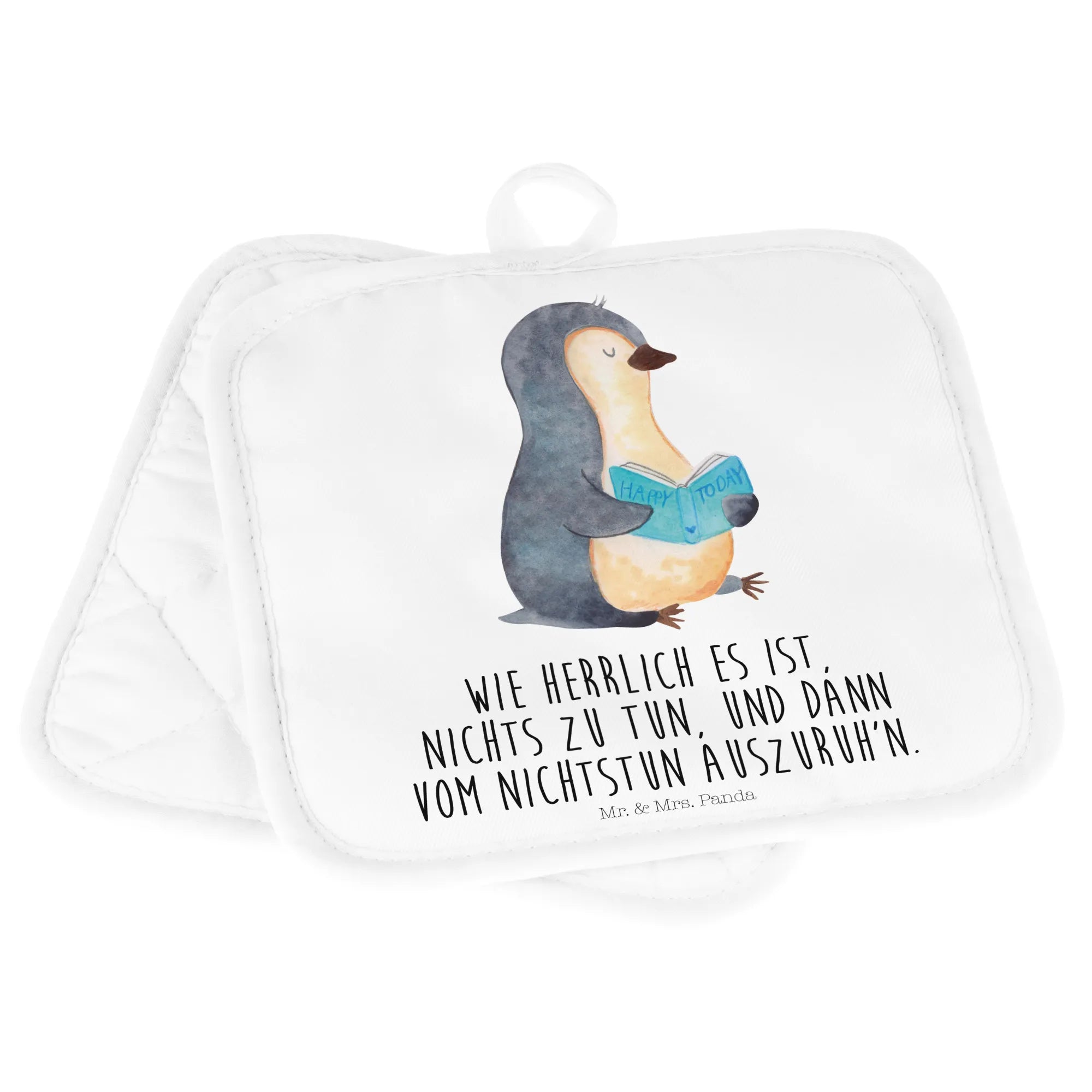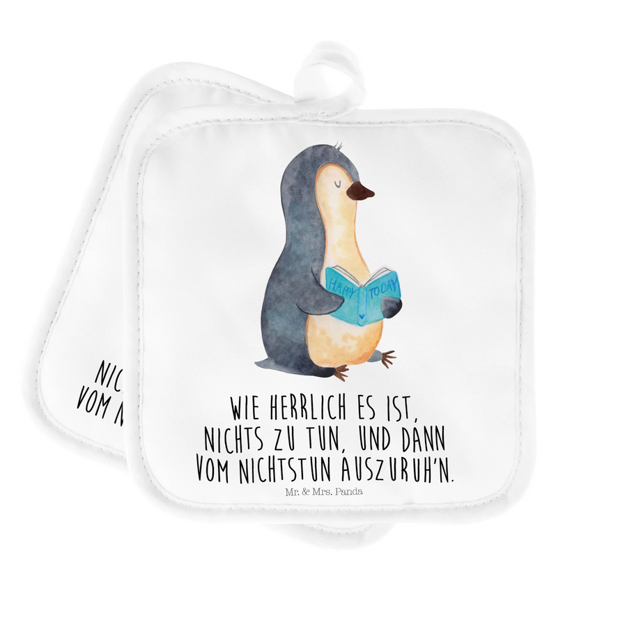 Mit einem süßen Pinguin-Motiv, das begeistert ein Buch liest, bringen sie ein Lächeln in den Kochalltag. Der Slogan 'Wie herrlich es ist, nichts zu tun, und dann vom Nichtstun auszuruh'n' macht diese Topflappen zu einem perfekten Geschenk für alle Bücherwürmer und Relax-Fans!