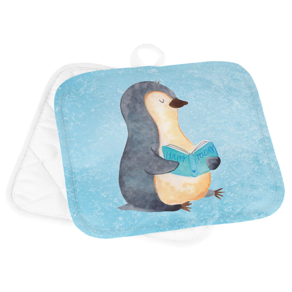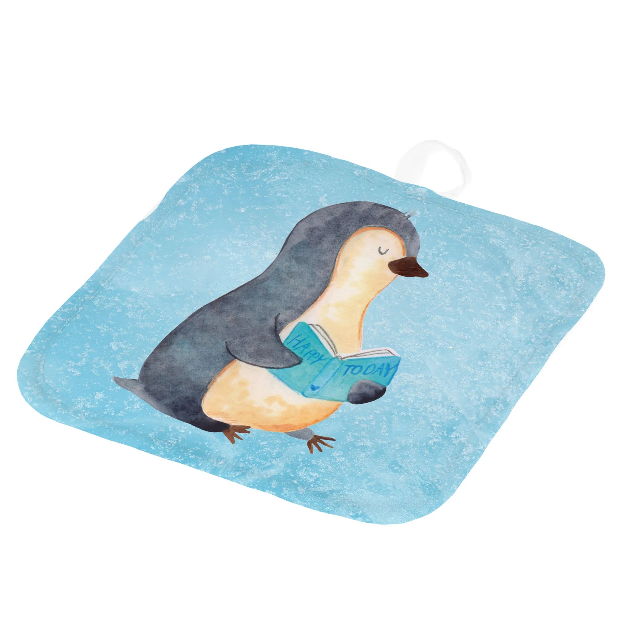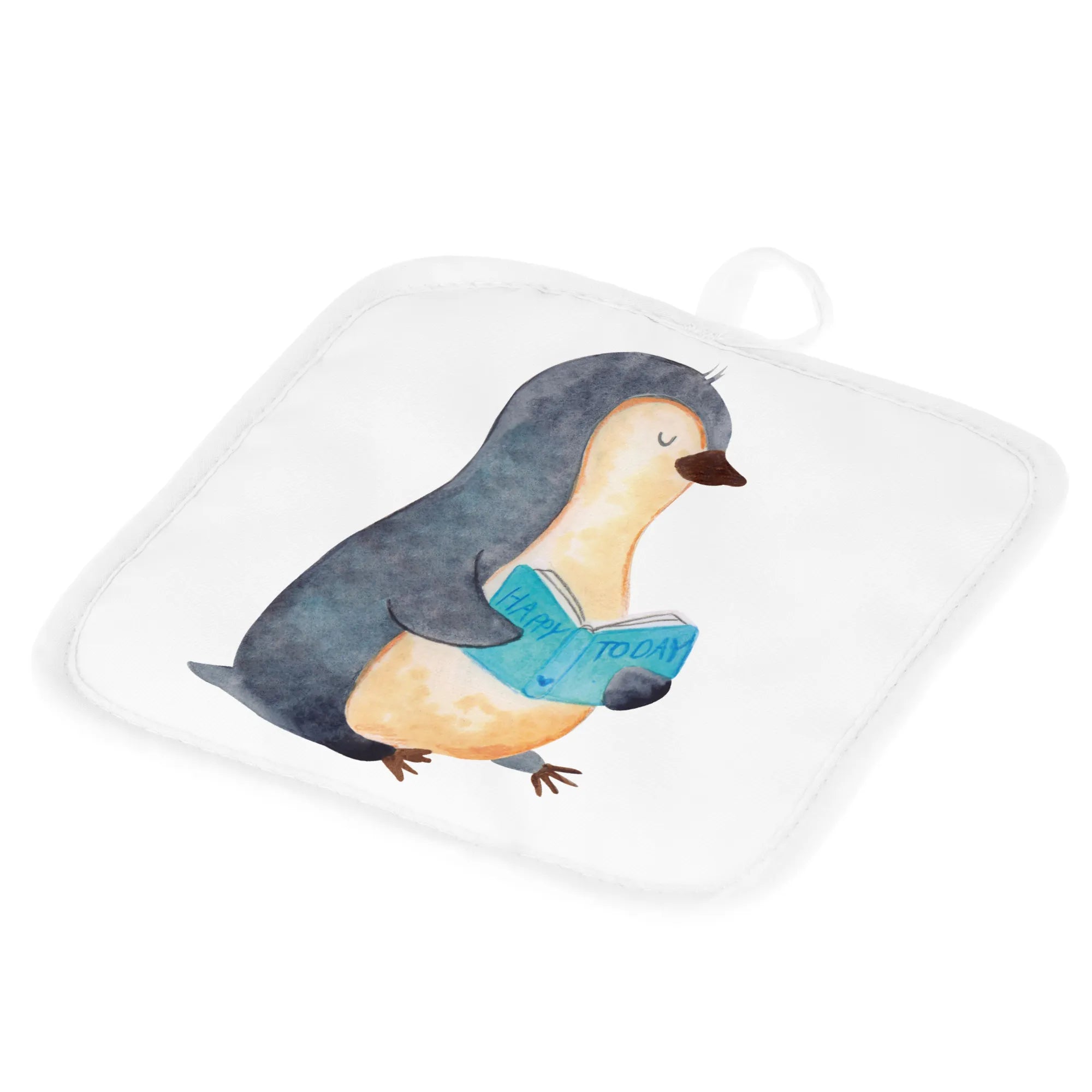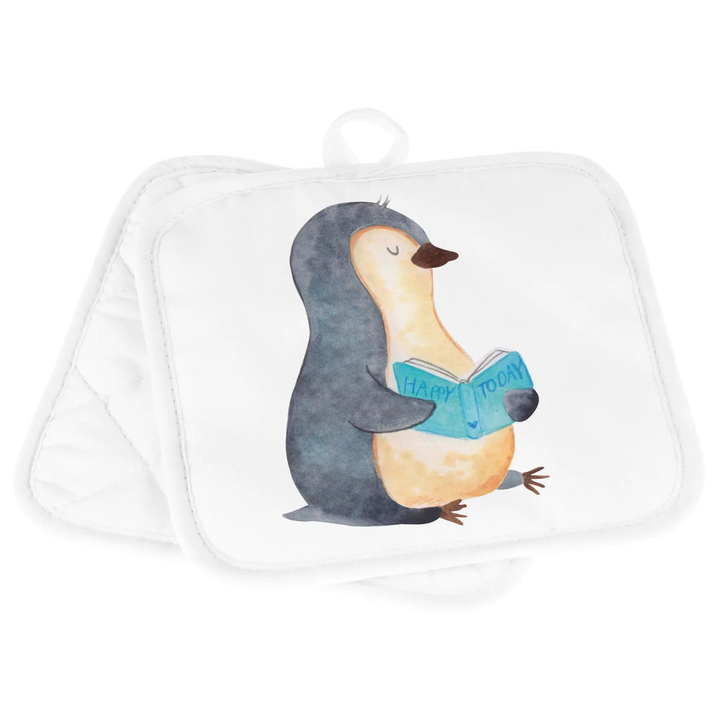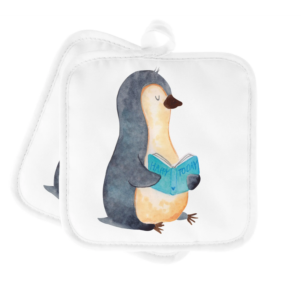 2er Set Topflappen Pinguin Buch - mit Spruch - Weiß