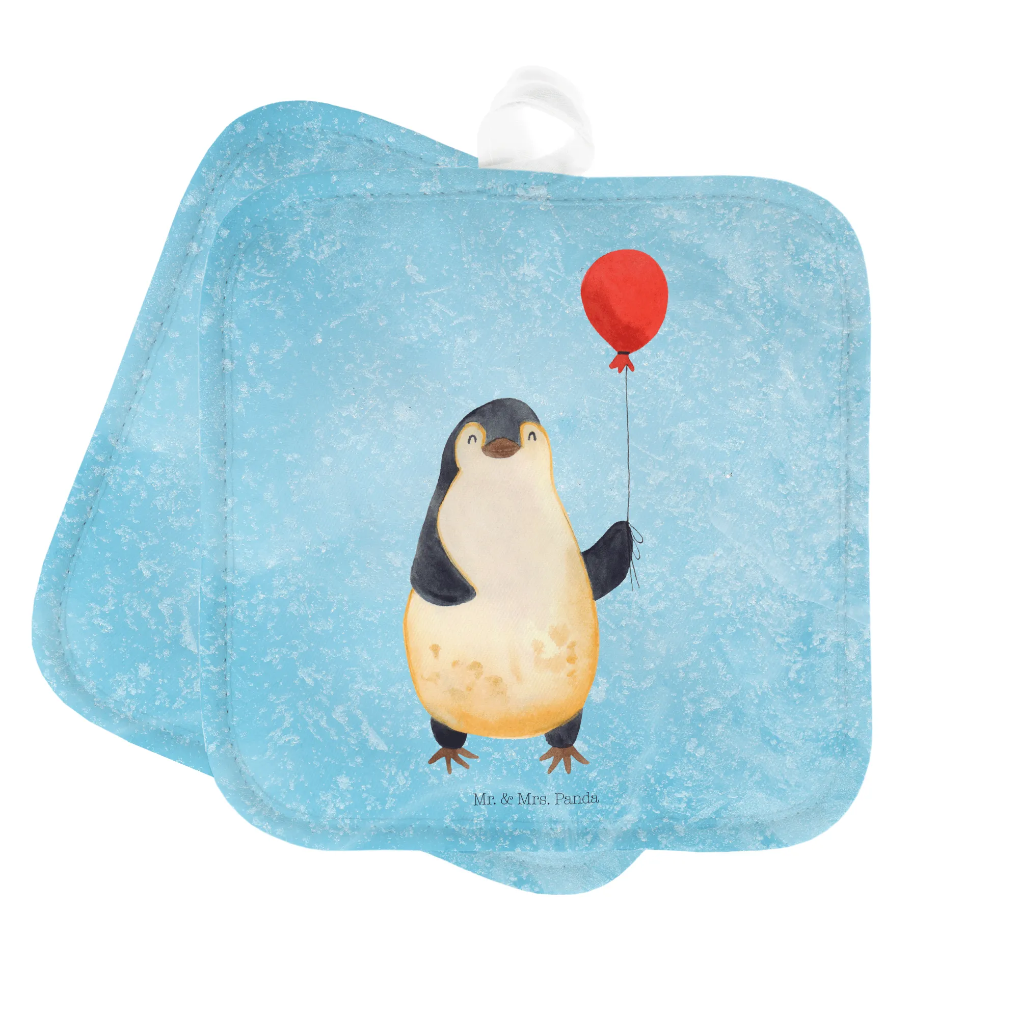 2er Set Topflappen Pinguin Luftballon - mit Spruch - Eisblau