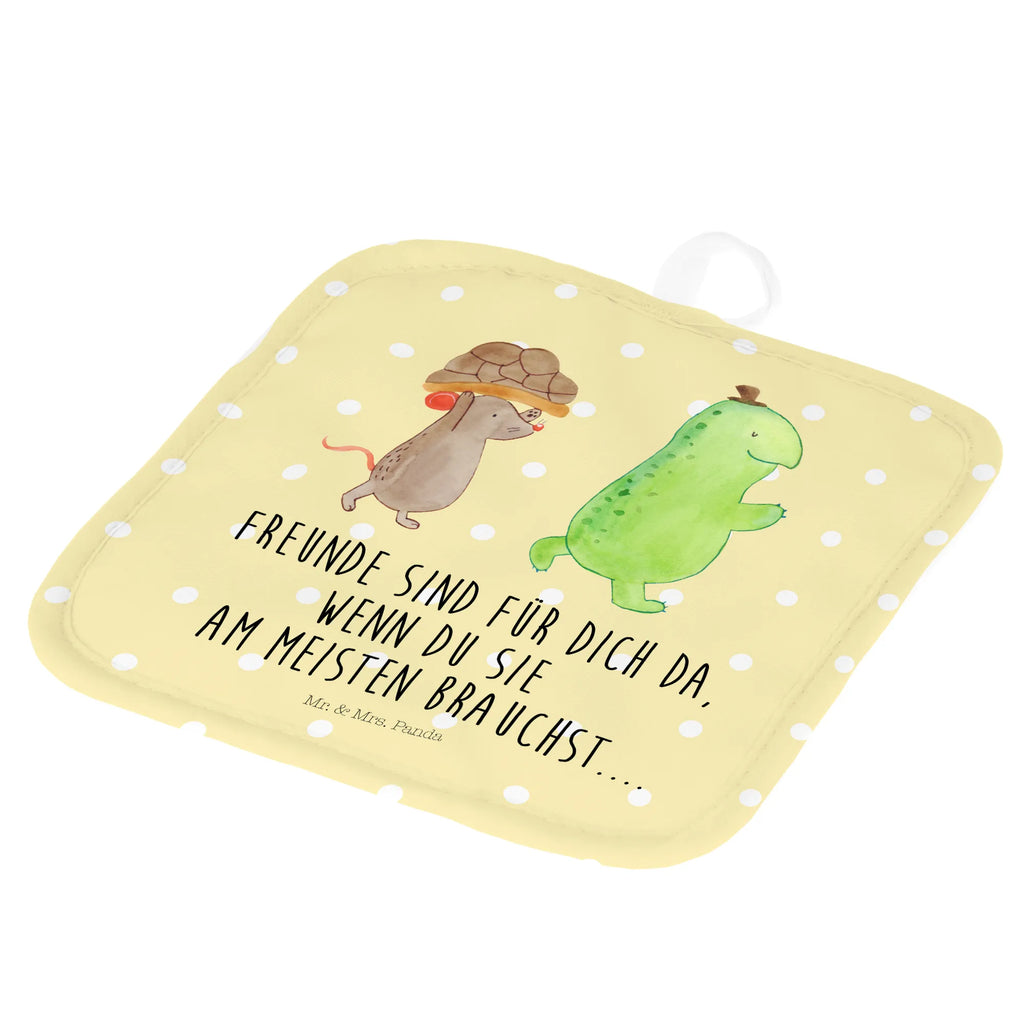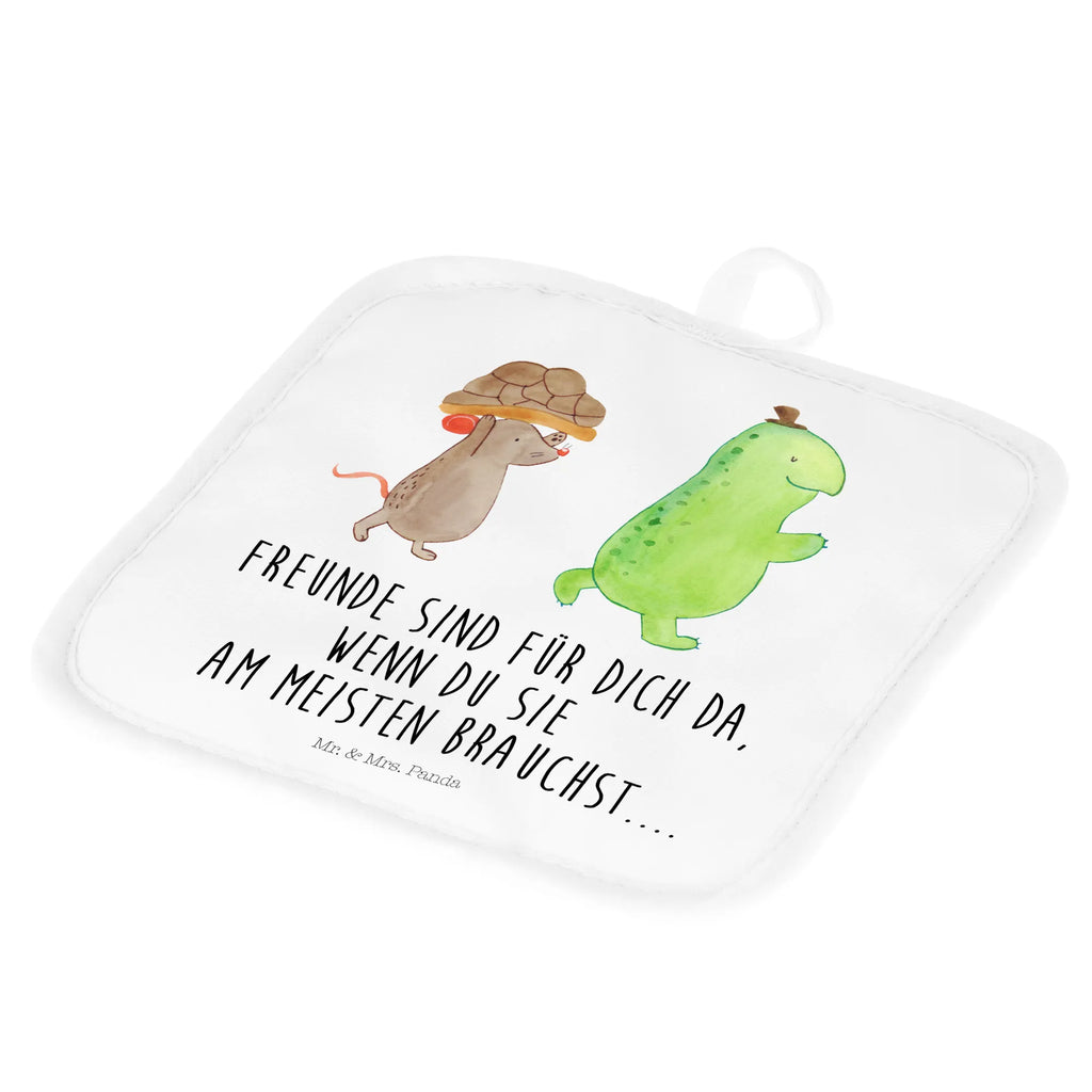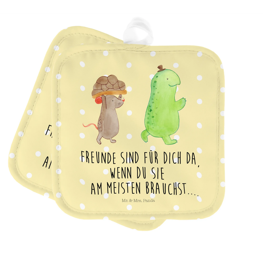 Unsere süßen Topflappen mit Schildkröte und Maus sind kleine Helden des Alltags: liebevoll handgezeichnete Motive, ein herzerwärmender Spruch und praktische Funktionalität in einem. Freunde sind für dich da, wenn du sie am meisten brauchst.... – diese Botschaft begleitet dich beim Backen, Kochen und gemeinsamen Genießen. 🐢🧡🐭