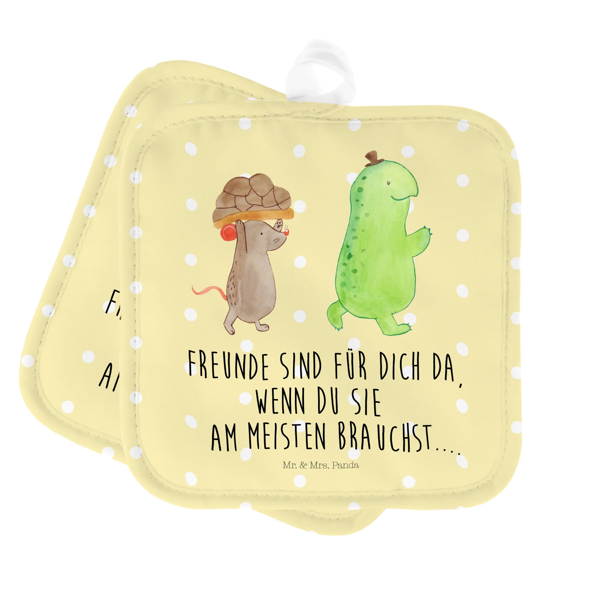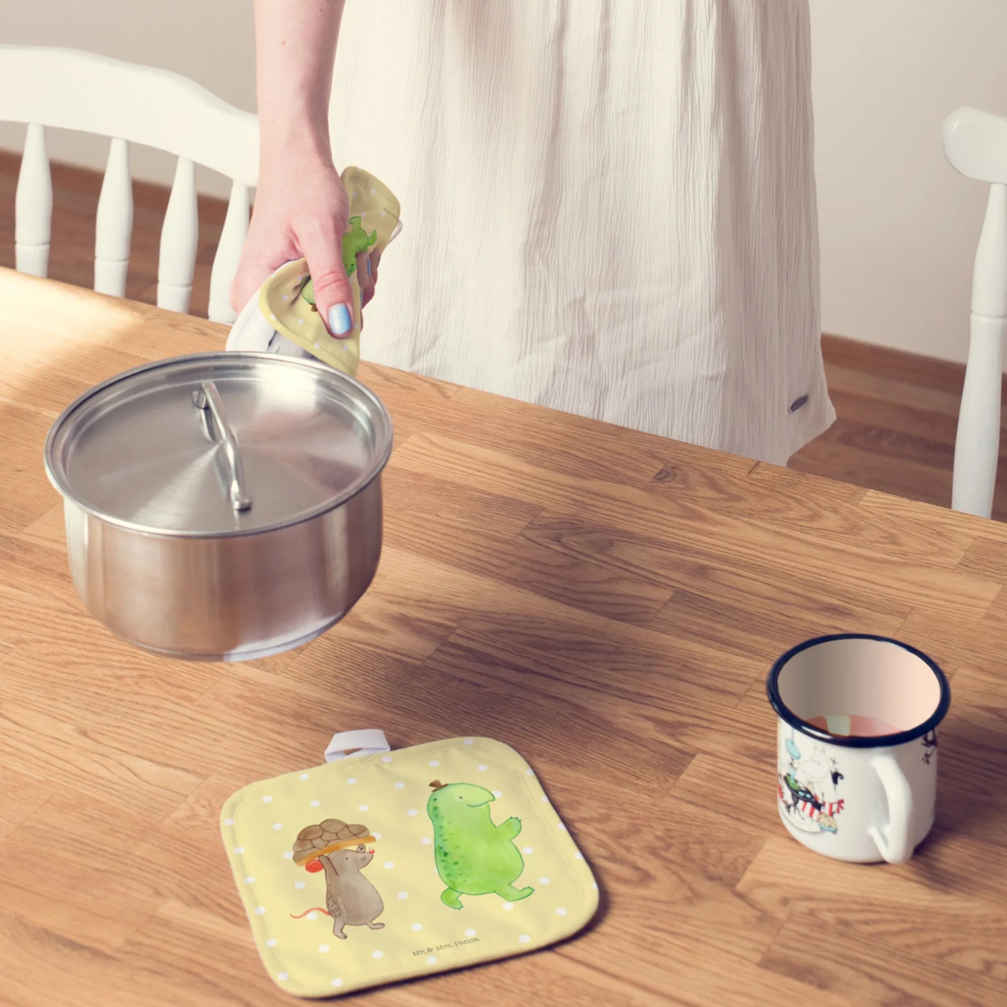2er Set Topflappen Schildkröte Maus - mit Spruch - Gelb Pastell