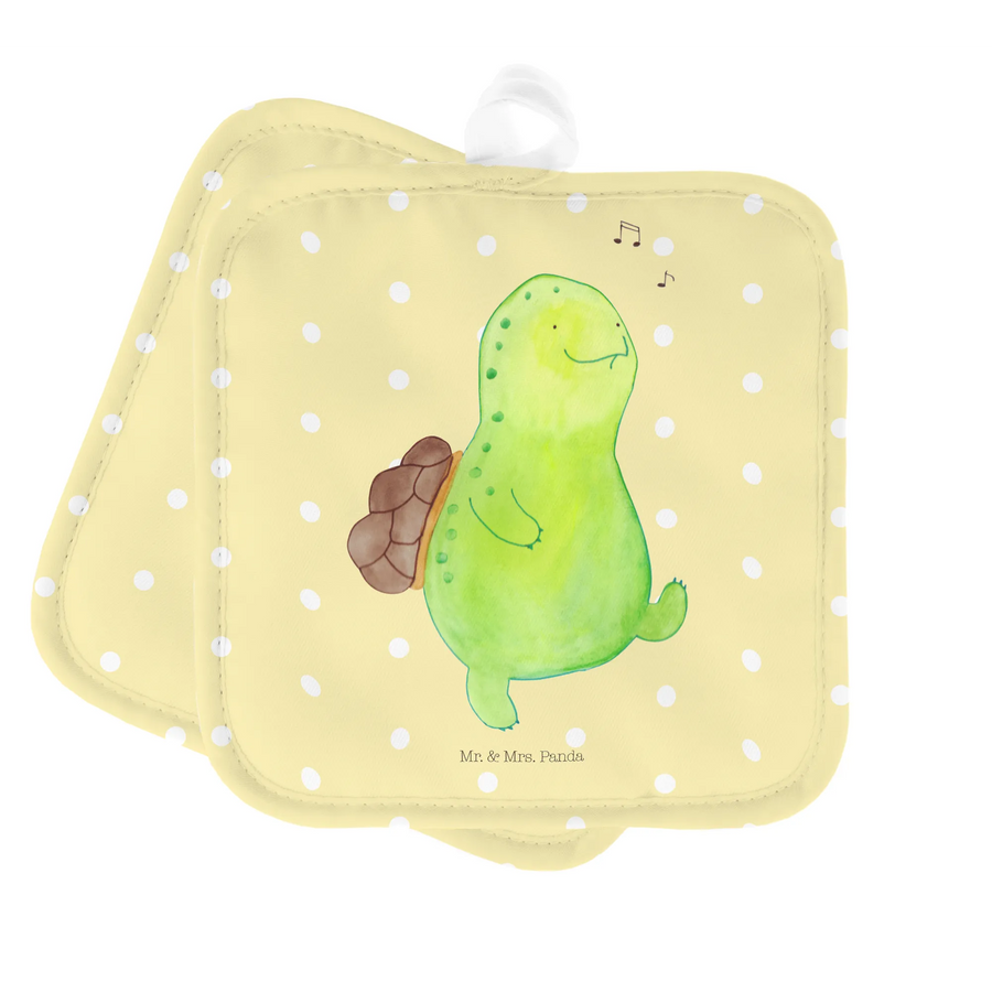 2er Set Topflappen Schildkröte Pfeifen - ohne Spruch - Gelb Pastell