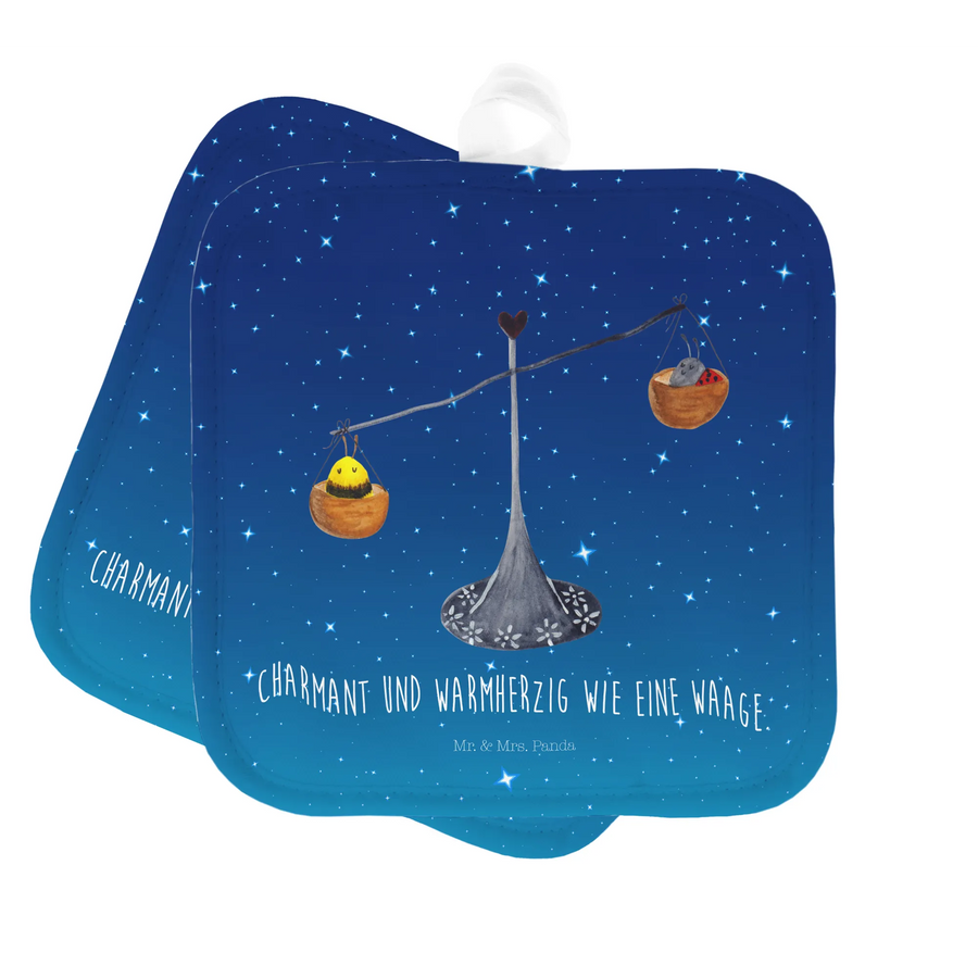 2er Set Topflappen Sternzeichen Waage - mit Spruch - Sternenhimmel Blau