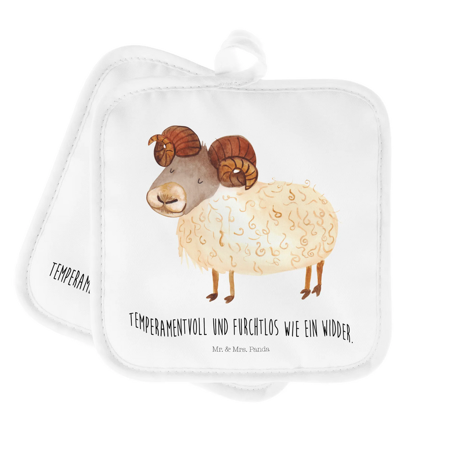 Sie sind bei 30°C waschbar und leicht zu reinigen. Mit diesen schönen Topflappen zeigst du nicht nur, dass du ein großartiger Koch bist, sondern auch, dass du den Mut und das Feuer eines Widders in dir trägst. Diese Tierkreiszeichen-Kollektion von Mr. & Mrs. Panda bringt Farbe und Freude in eure Küche und macht sie damit zu einem ganz besonderen Raum.