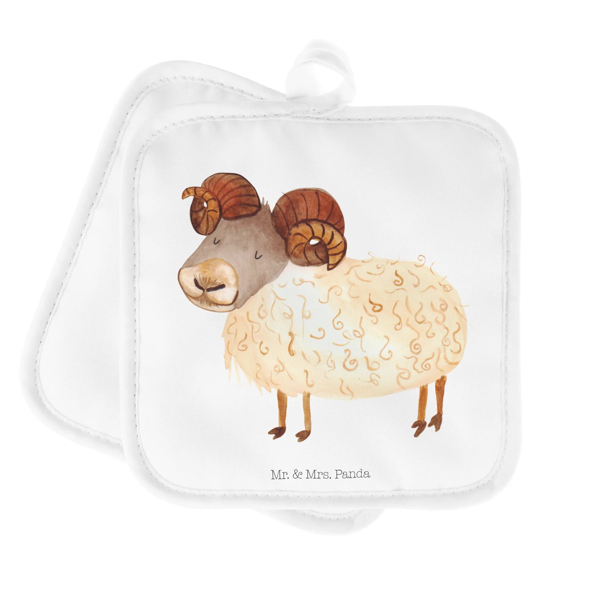 2er Set Topflappen Sternzeichen Widder - mit Spruch - Weiß
