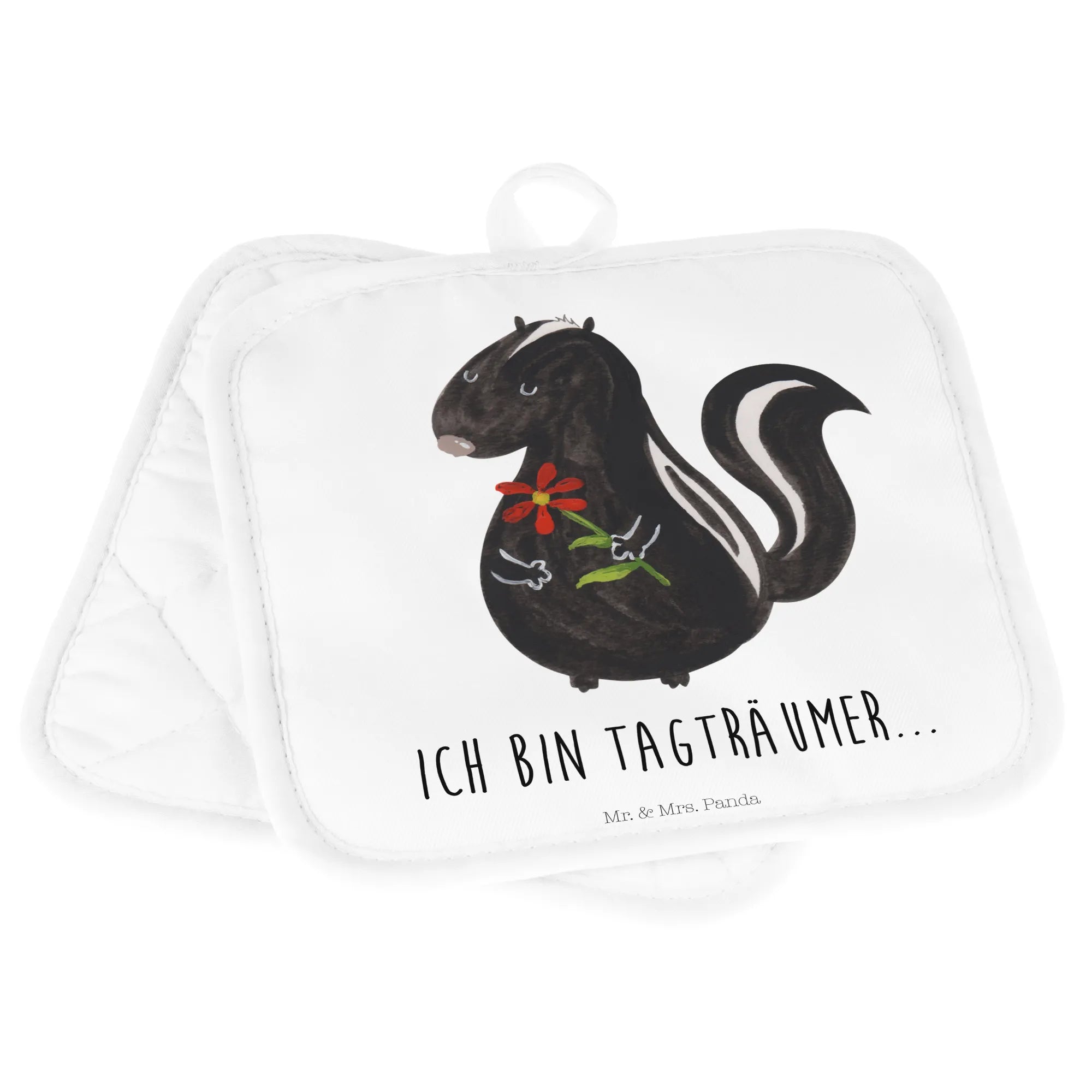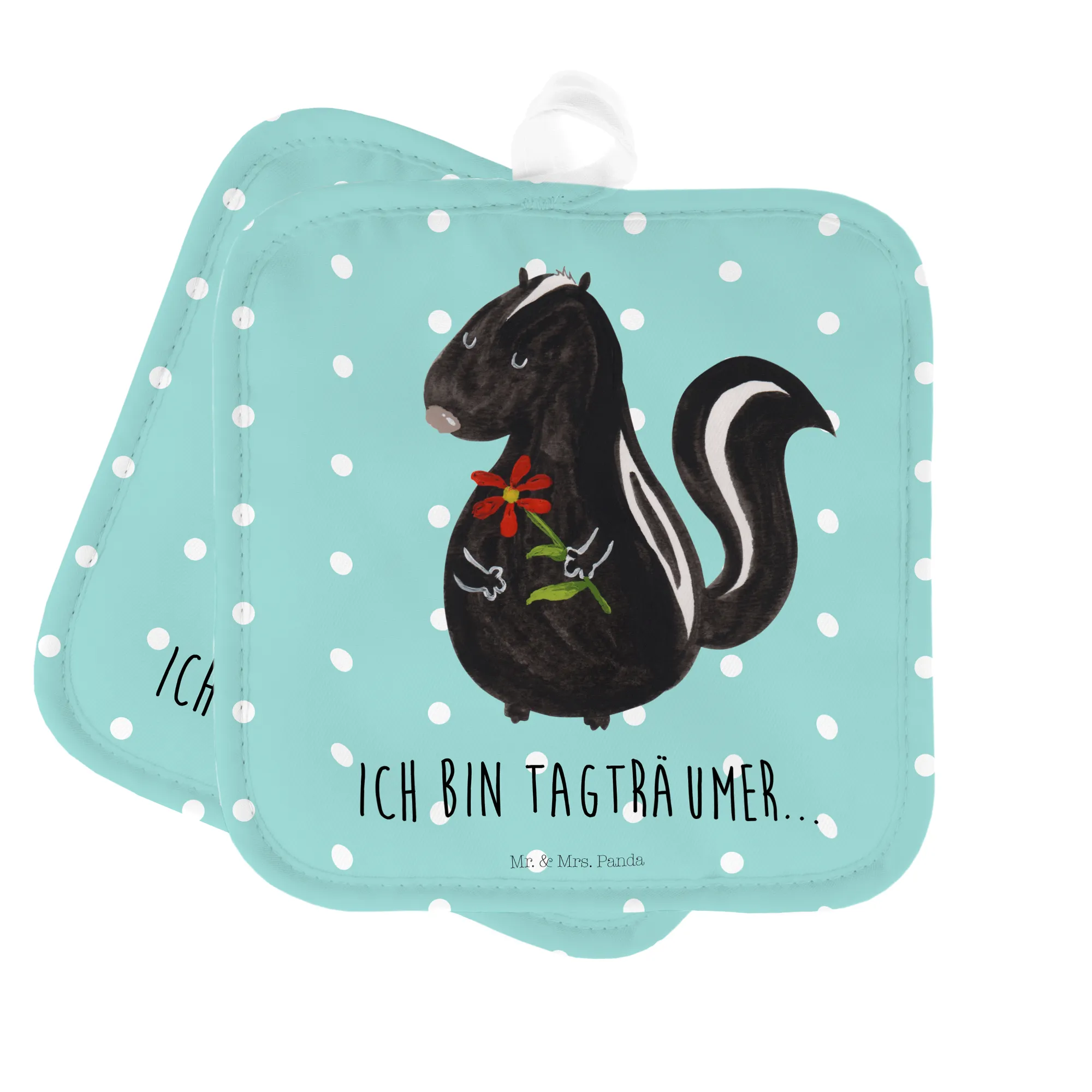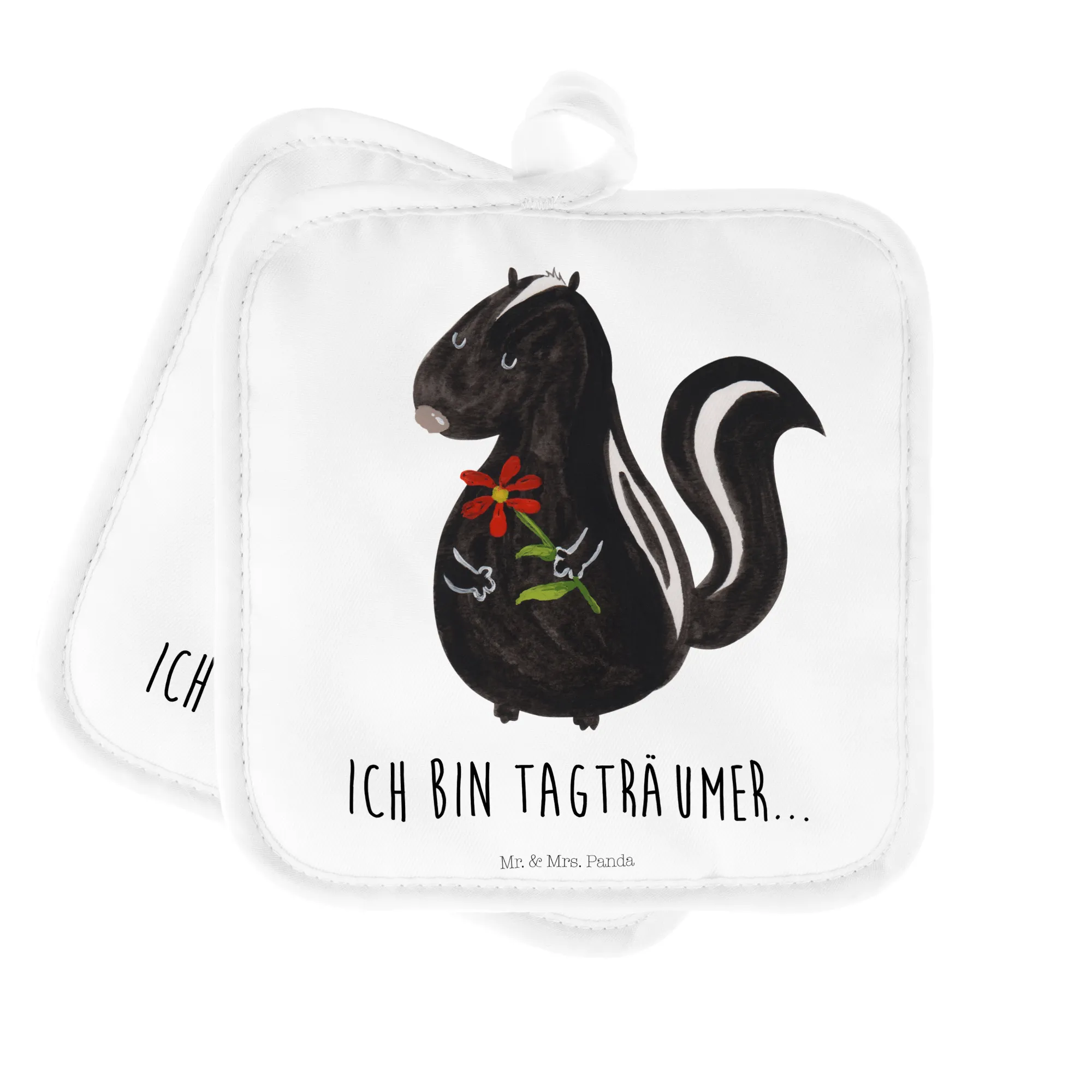 2er Set Topflappen  Stinktier Blume Ofenhandschuh, Topflappen, Topflappen 2er Set, Topflappenset, Topflappen mit Spruch, Ofenhandschuhe, Topflappen Set, Topfhandschuh, Topfuntersetzer, Topfhandschuhe, Topflappen lustig, Schöne Topflappen, Stinktier, Skunk, Stinker, Dreams, Tagträumer, Wildtier, verträumt, Stinki, Raubtier, Träume