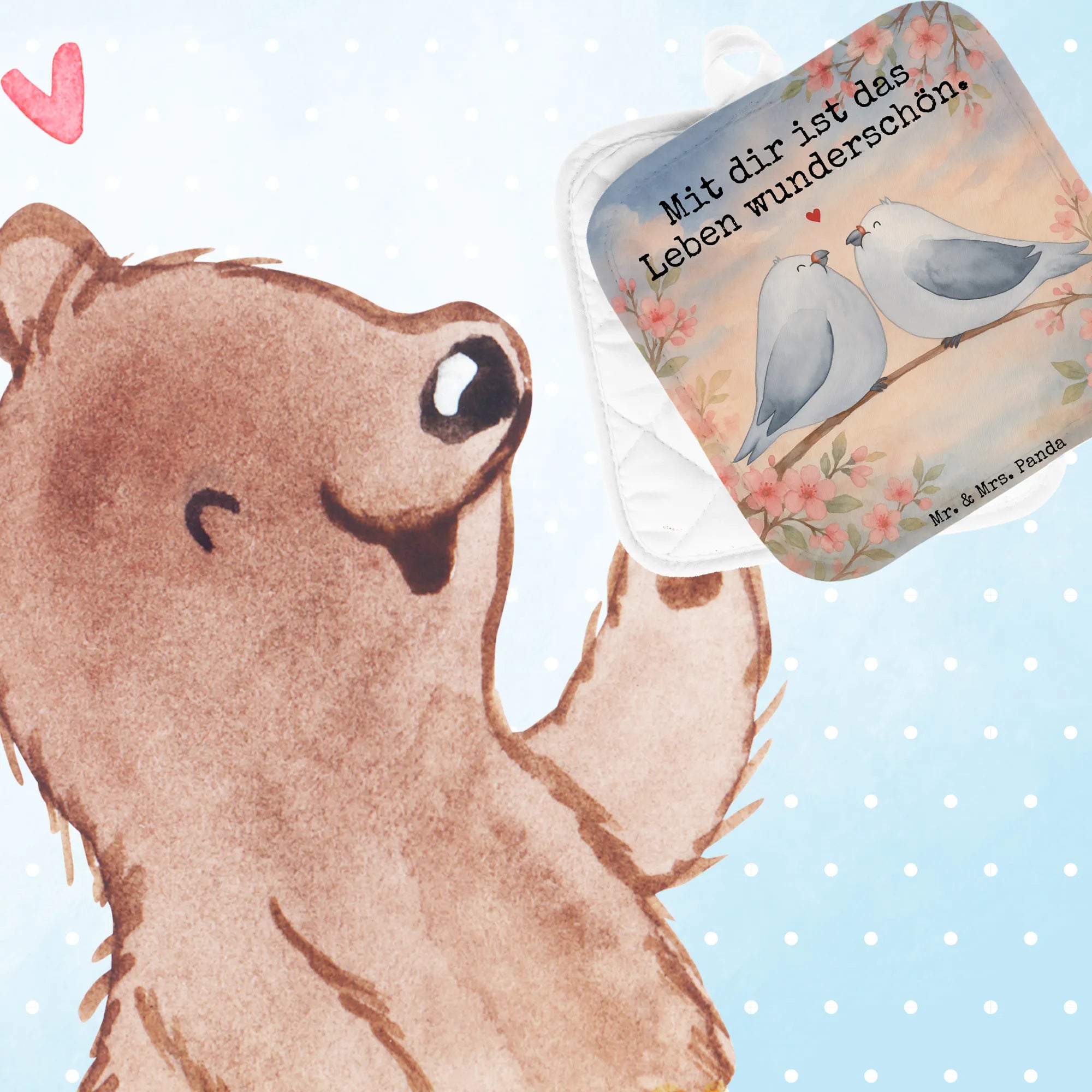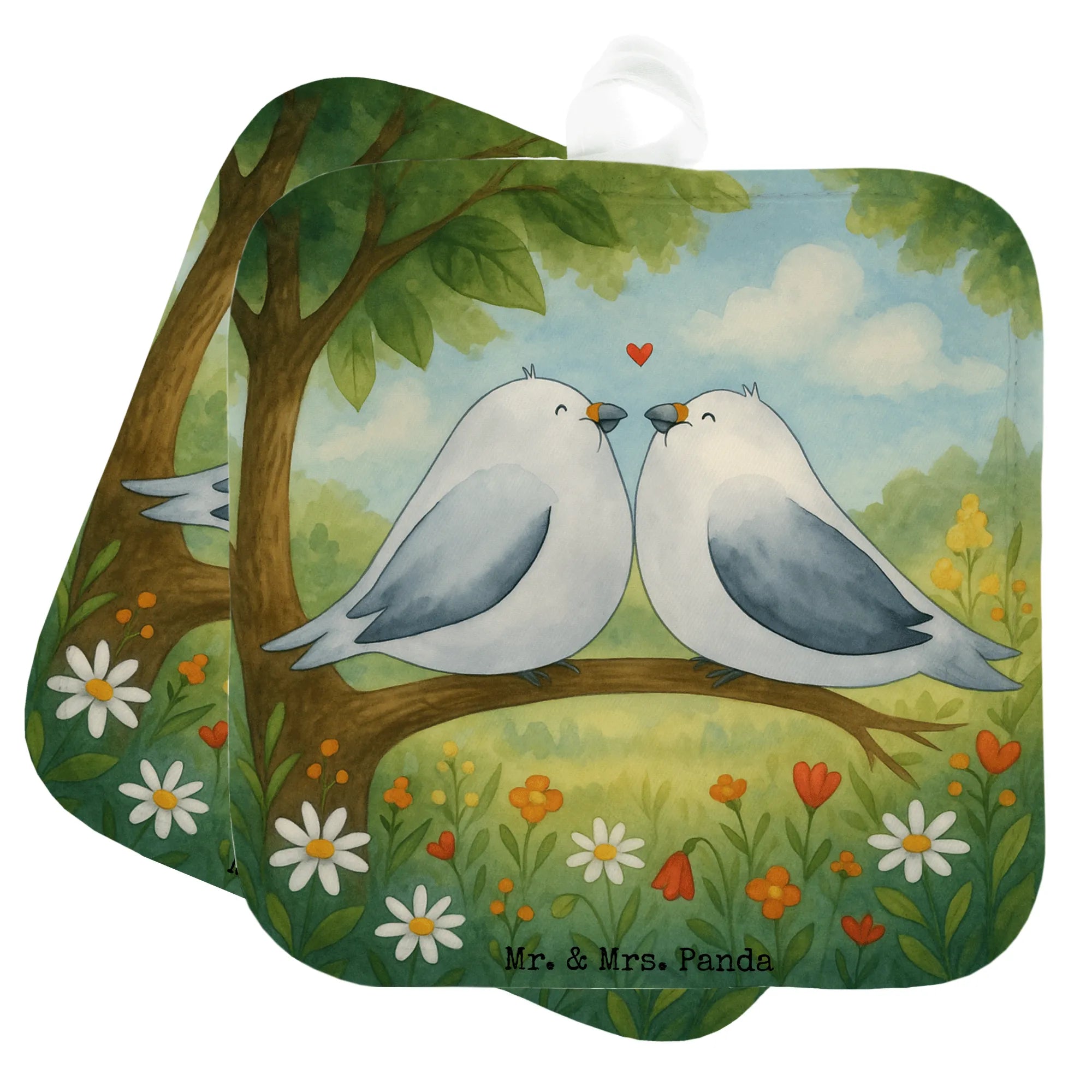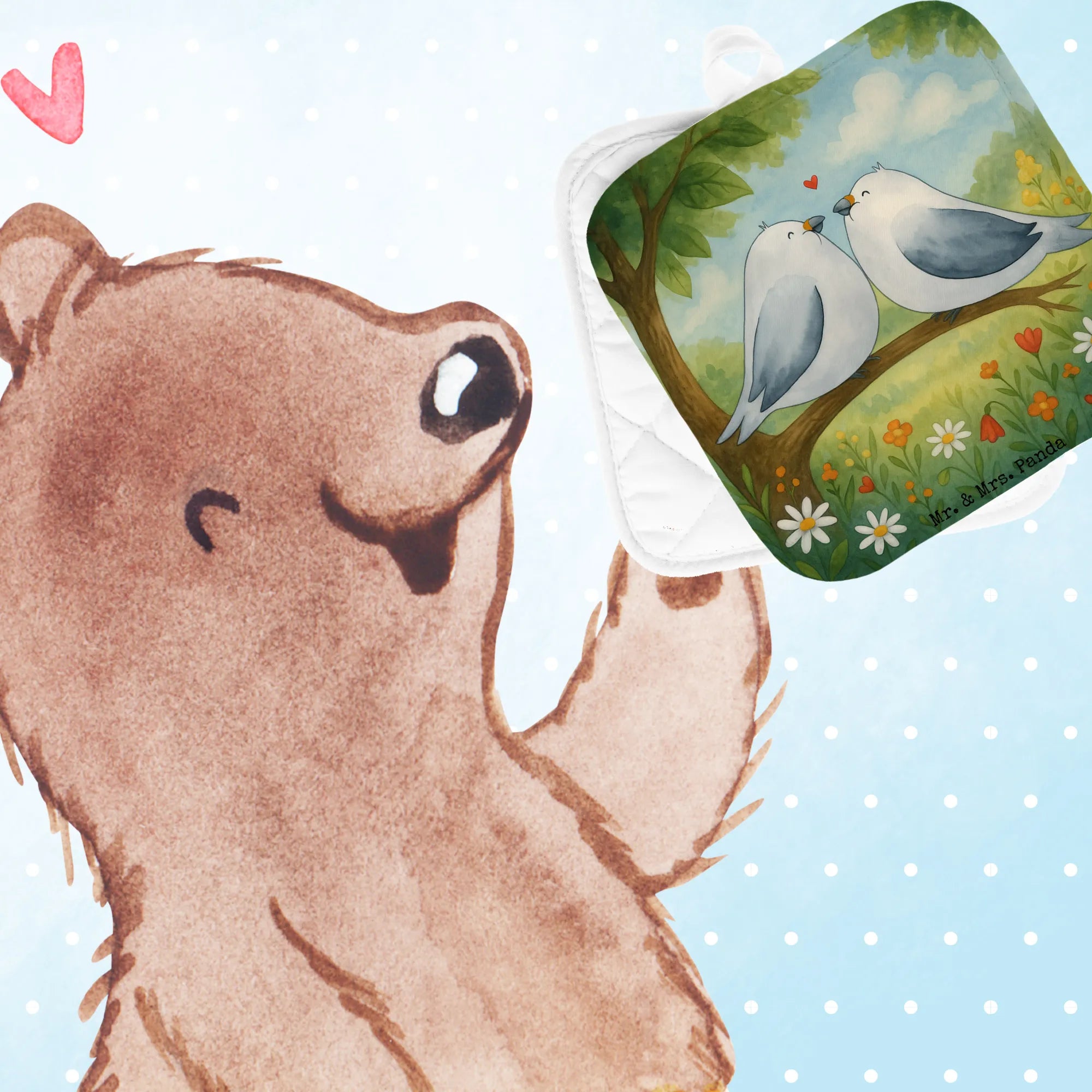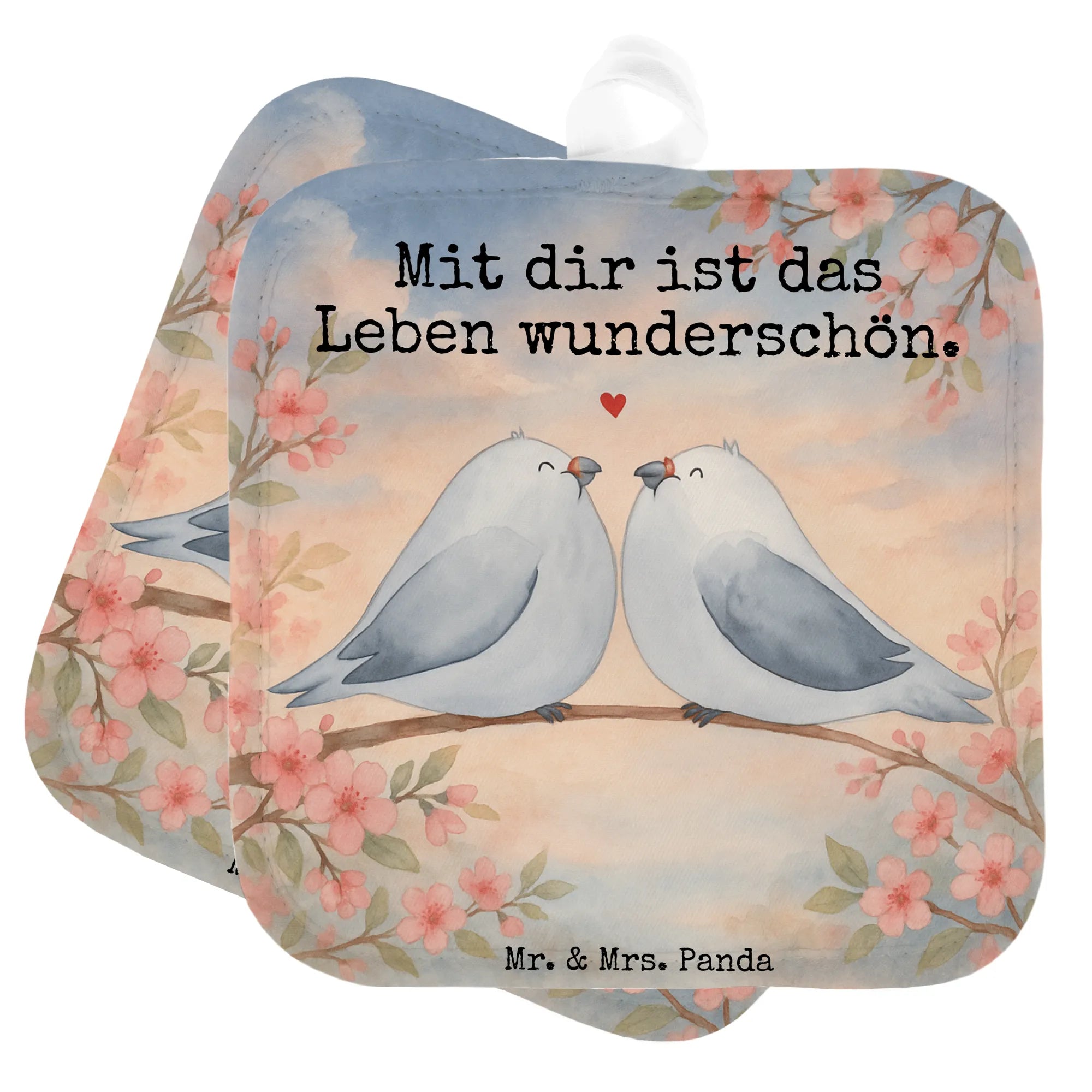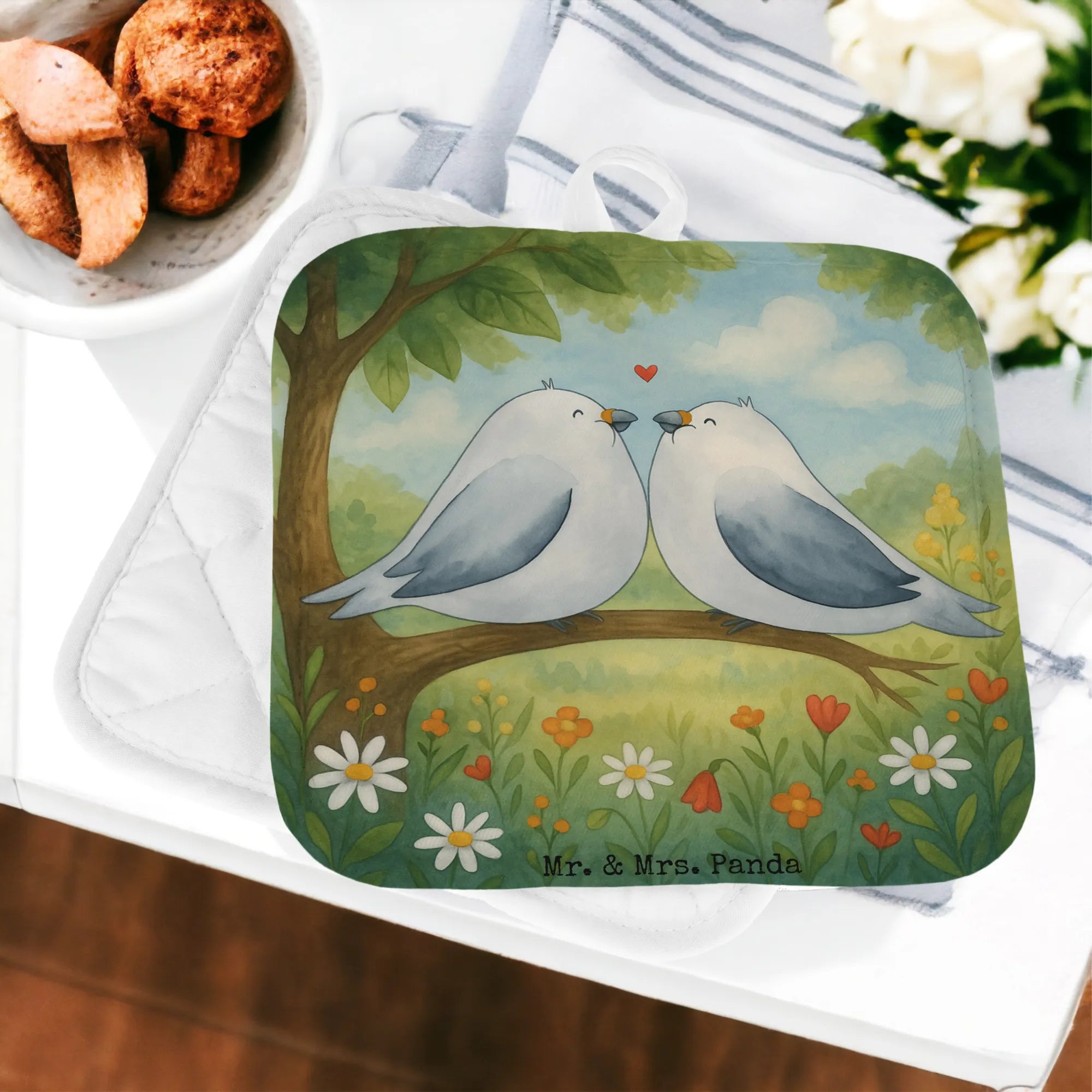 2er Set Topflappen Turteltauben Liebe Design - mit Spruch
