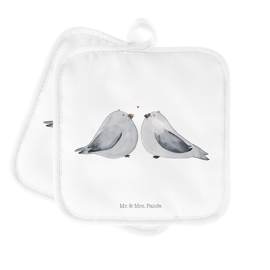 2er Set Topflappen Turteltauben Liebe - ohne Spruch - Weiß