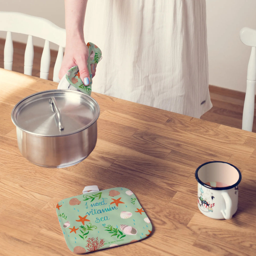 Diese Topflappen sind der perfekte Begleiter für alle, die das Meer lieben und diese Leidenschaft auch beim Kochen und Backen ausleben möchten. Jedes Stück ist hochwertig bedruckt mit süßen Motiven und Sprüchen, die das Herz eines jeden Wasserratten und Naturliebhabers höher schlagen lassen. Die Slogan "I need vitamin sea" spricht direkt die Sehnsucht nach Strand und Meer an.