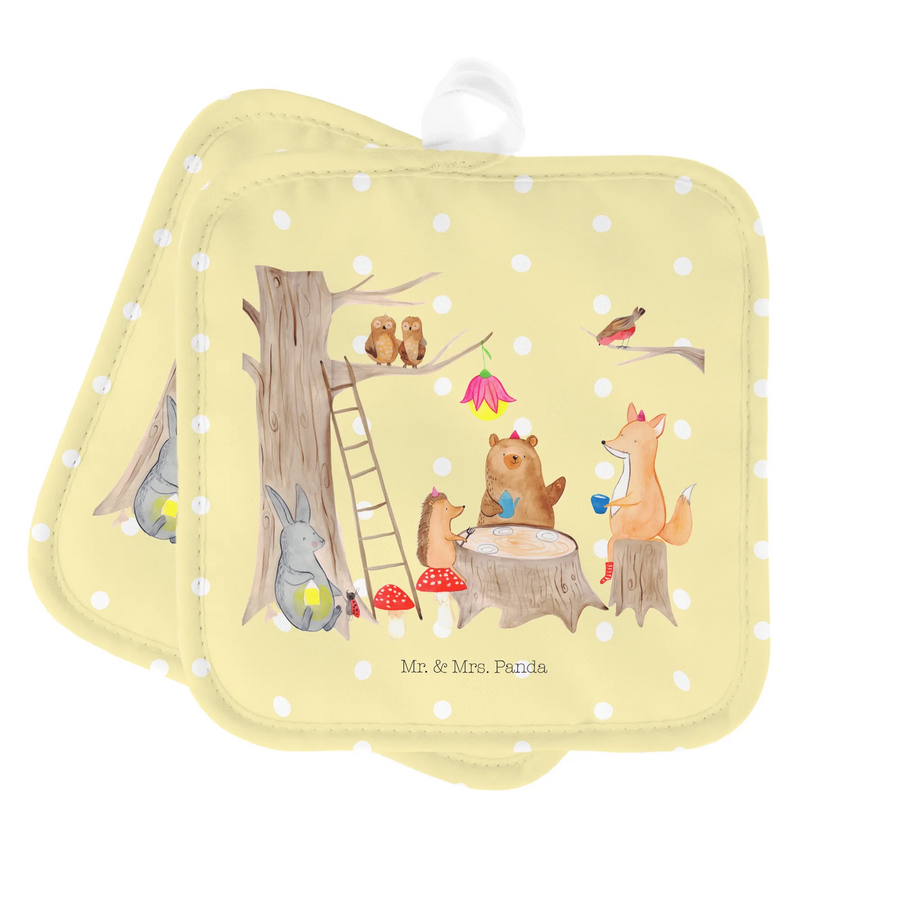 Entdecke die zauberhaften 2er Set Topflappen mit dem tollen Motiv "Waldtiere Picknick" von Mr. & Mrs. Panda! Diese Topflappen aus hochwertigem Polyester sind nicht nur ein praktisches Küchenutensil, sondern auch ein wahres Schmuckstück für deine Küche.