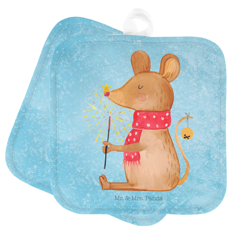 2er Set Topflappen Weihnachtsmaus - ohne Spruch - Eisblau