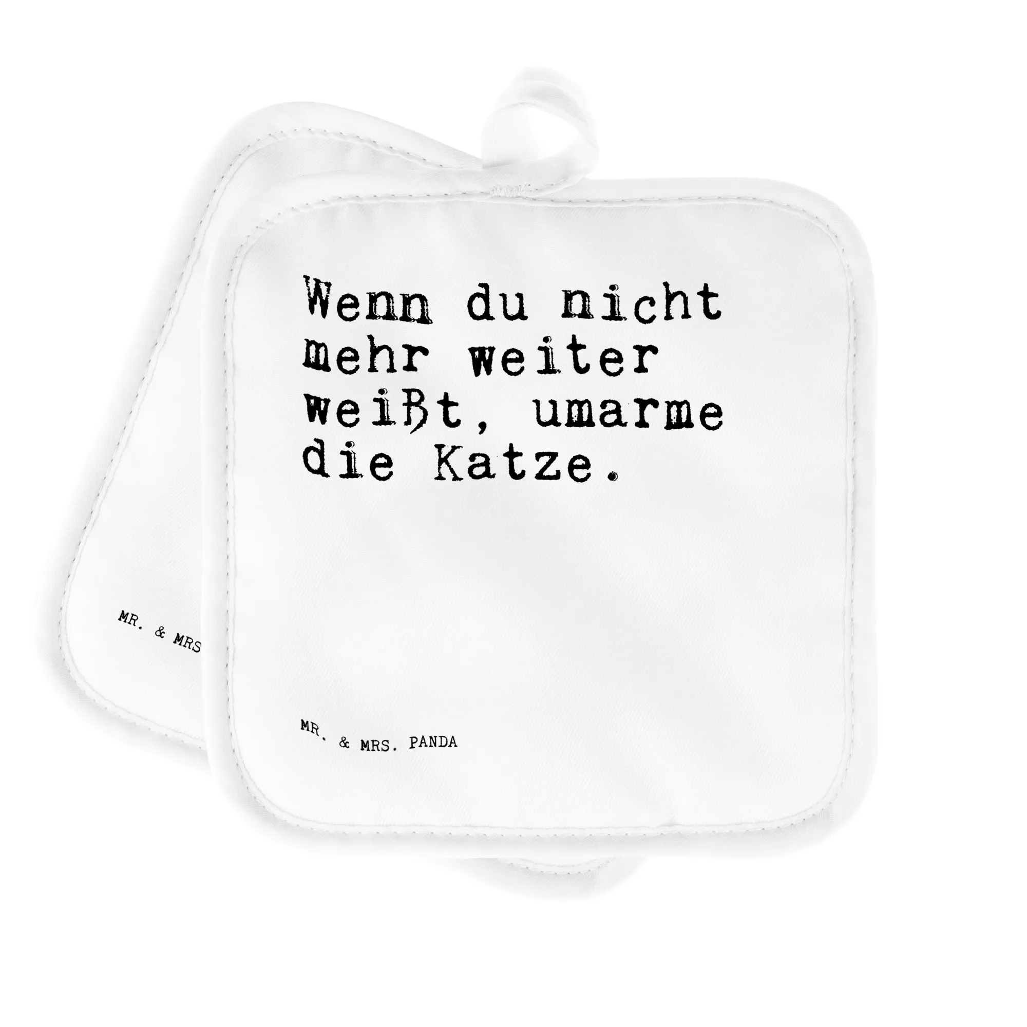 Mr. & Mrs. Panda 2er Set Topflappen – Wenn du nicht mehr weiter weißt, umarme die Katze.