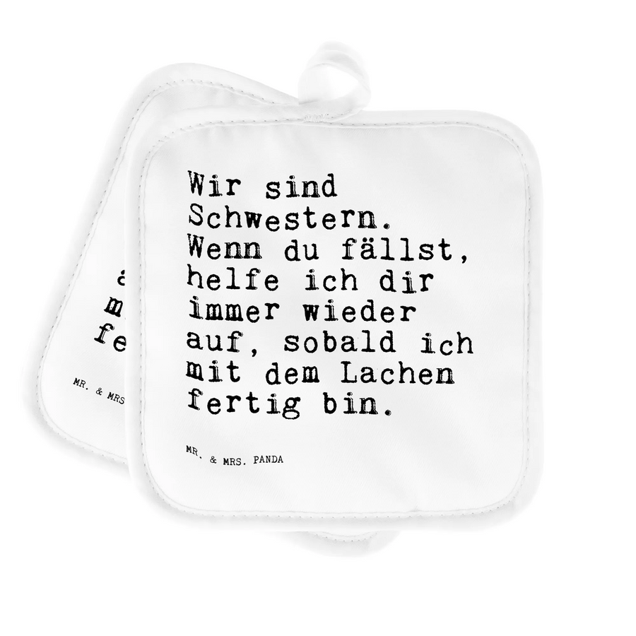 2er Set Topflappen Sprüche und Zitate Wir sind Schwestern. Wenn du fällst, helfe ich dir immer wieder auf, sobald ich mit dem Lachen fertig bin.