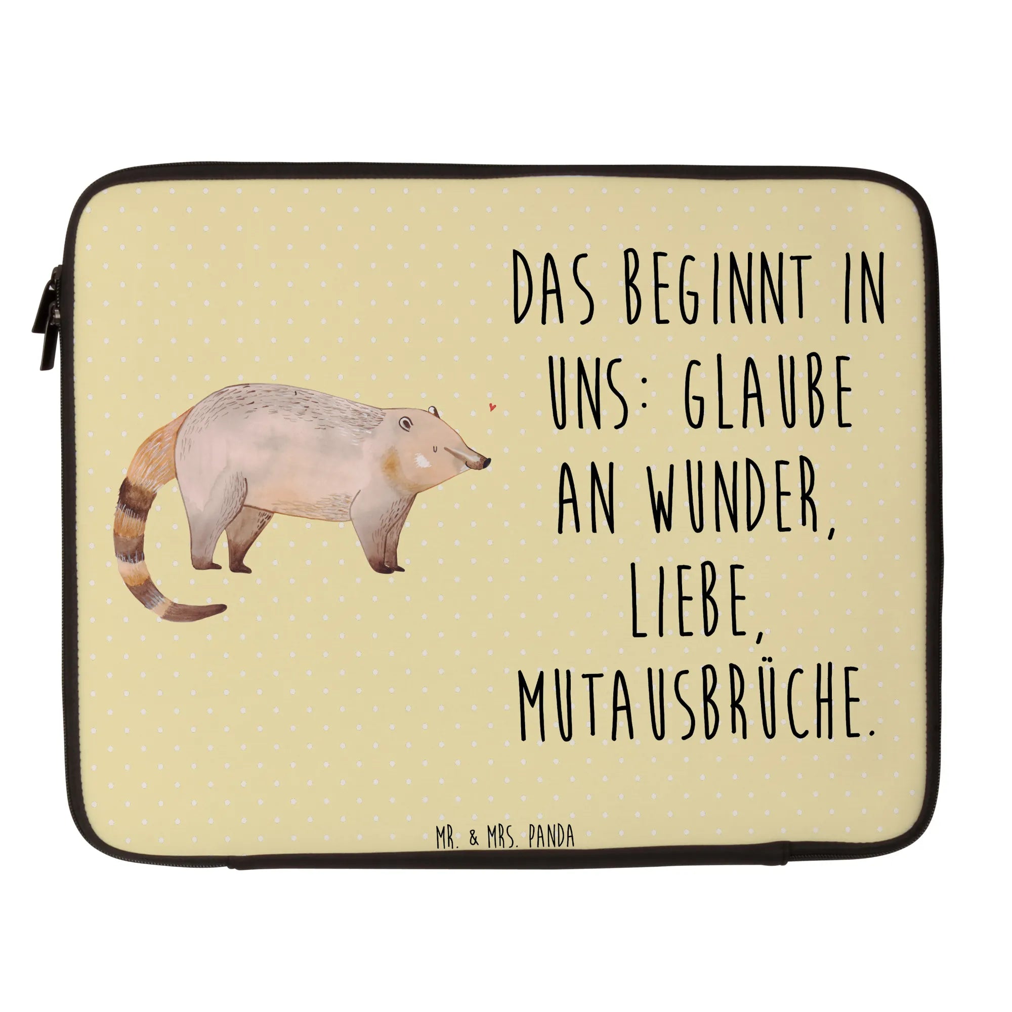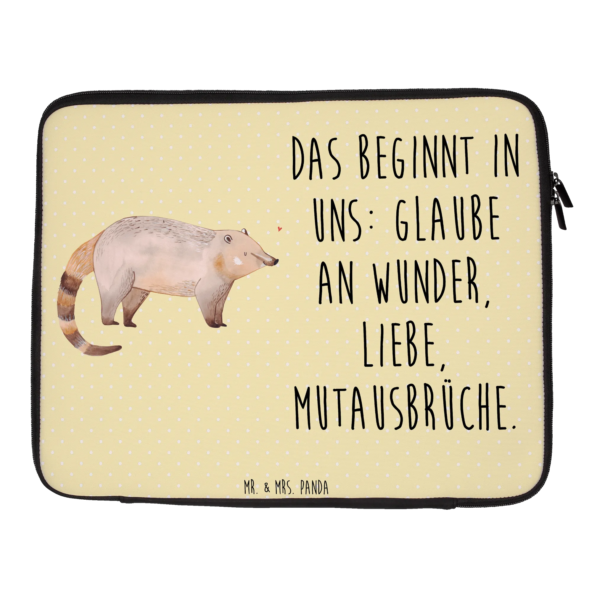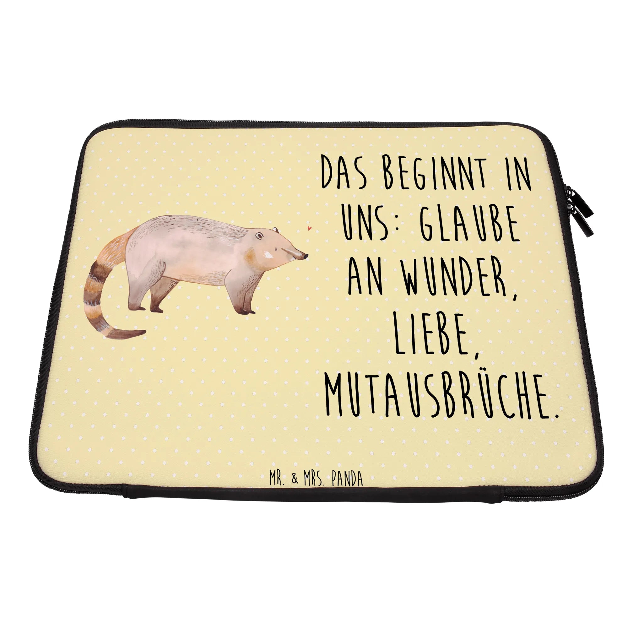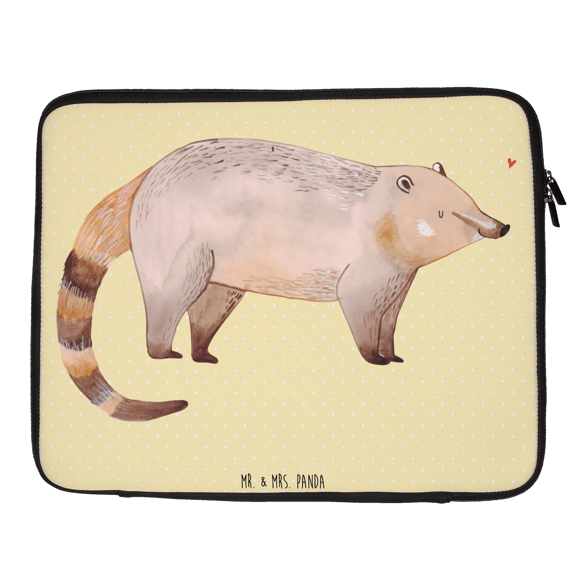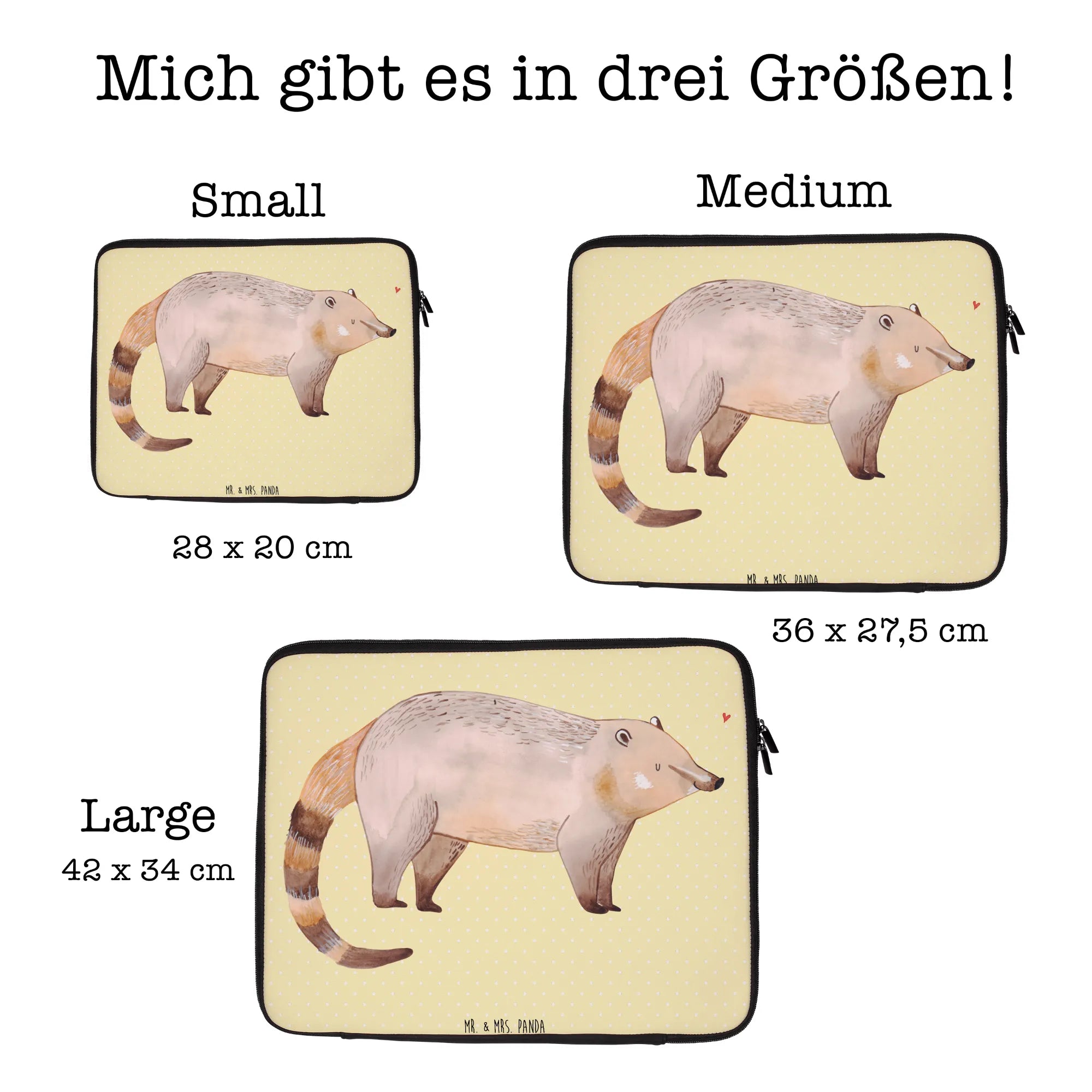Die Small World Kollektion ist eine der ältesten von Mr. & Mrs. Panda und bietet eine bunte Vielfalt an Tiermotiven und lustigen Sprüchen. Jedes Motiv, so auch das des Nasenbären, wurde mit viel Liebe von Hand gezeichnet. Praktisch, leicht und doch ein echtes Fashion-Statement - die Tasche ist ideal für alle, die ihre technischen Geräte stilvoll und sicher transportieren möchten.