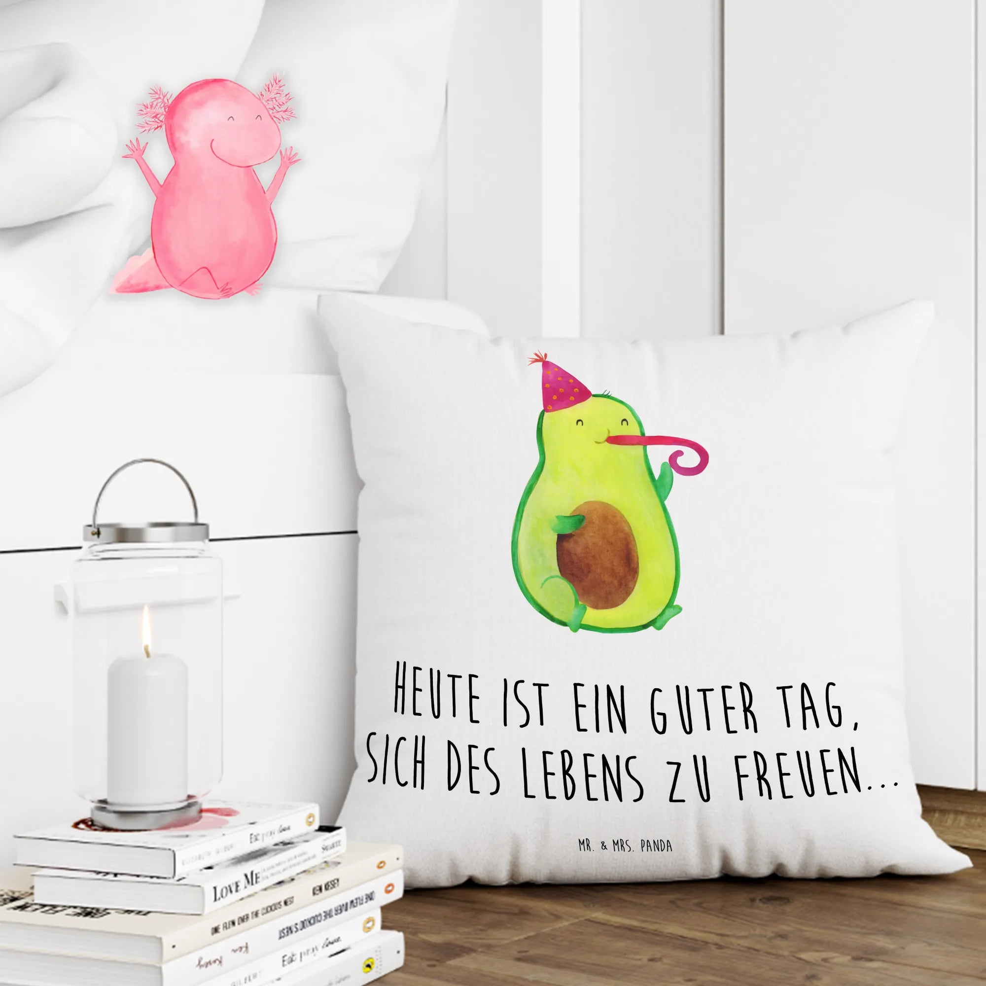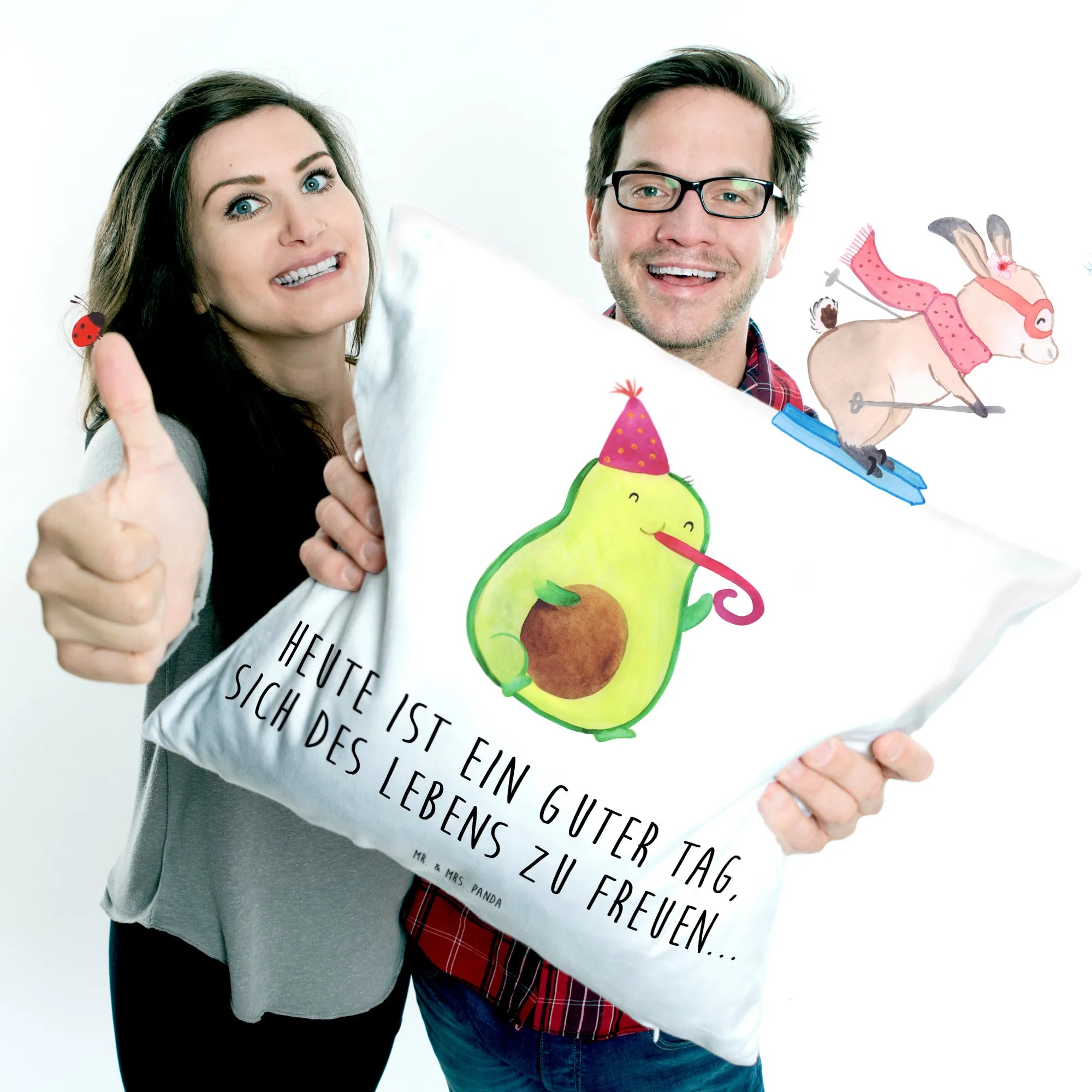 Das perfekte Geschenk für alle Avocado-Liebhaber! Unsere Kissenhülle mit dem fröhlichen Motiv "Avocado Partyhupe" bringt gute Laune in jedes Zuhause. Dieses wunderschöne 40x40 Kissen von Mr. & Mrs. Panda ist nicht nur ein echter Blickfang, sondern auch super kuschelig. Mit einer süßen Avocado, die einen Partyhut trägt und in eine Partypfeife pustet, ist dieses Kissen ideal für Feiern, Geburtstagsfeste oder einfach für die täglichen kleinen Feierlichkeiten des Lebens. Die Botschaft "Heute ist ein guter Tag, sich des Lebens zu freuen..." verleiht jedem Raum eine positive Energie – perfekt, um Freunden oder Dir selbst eine Freude zu machen!