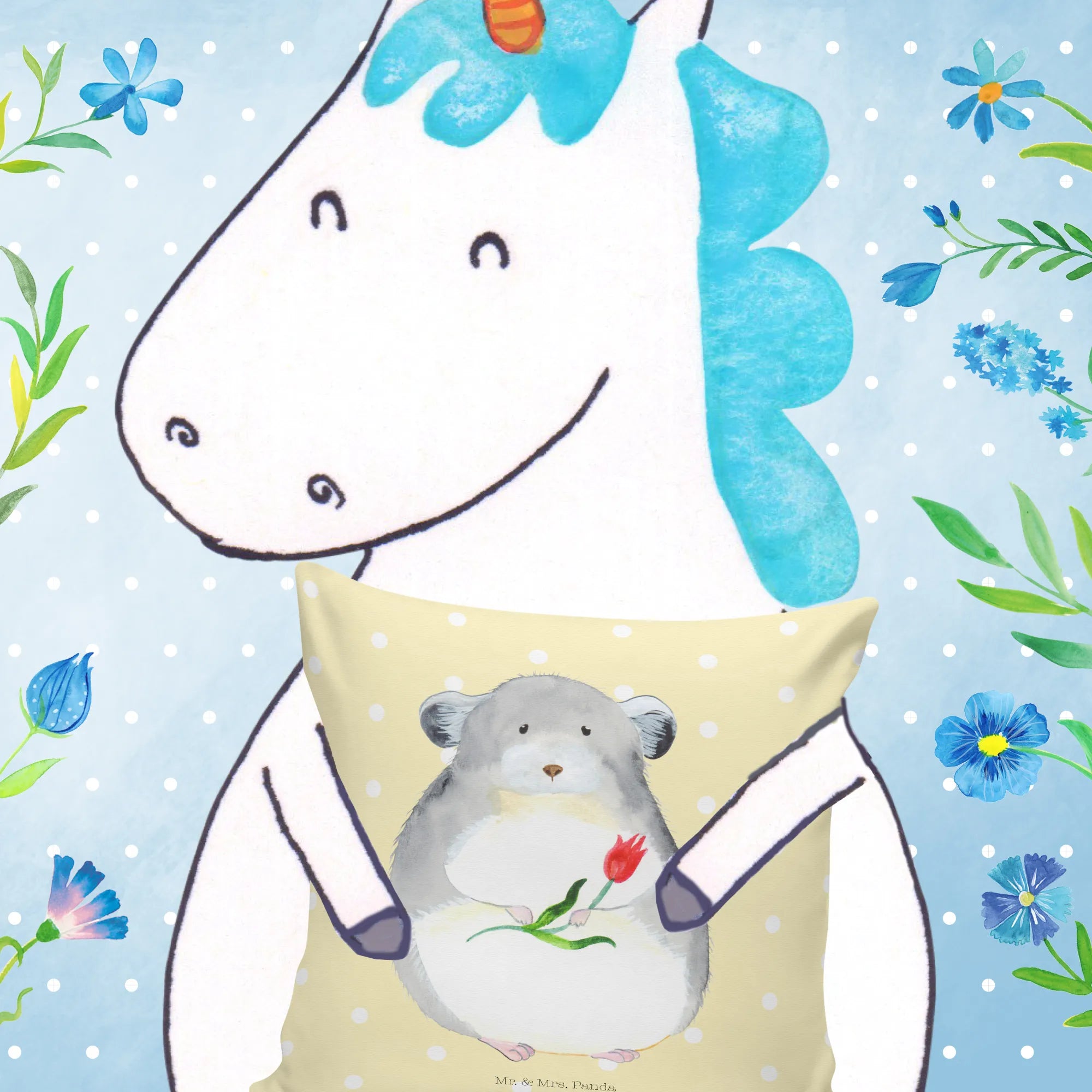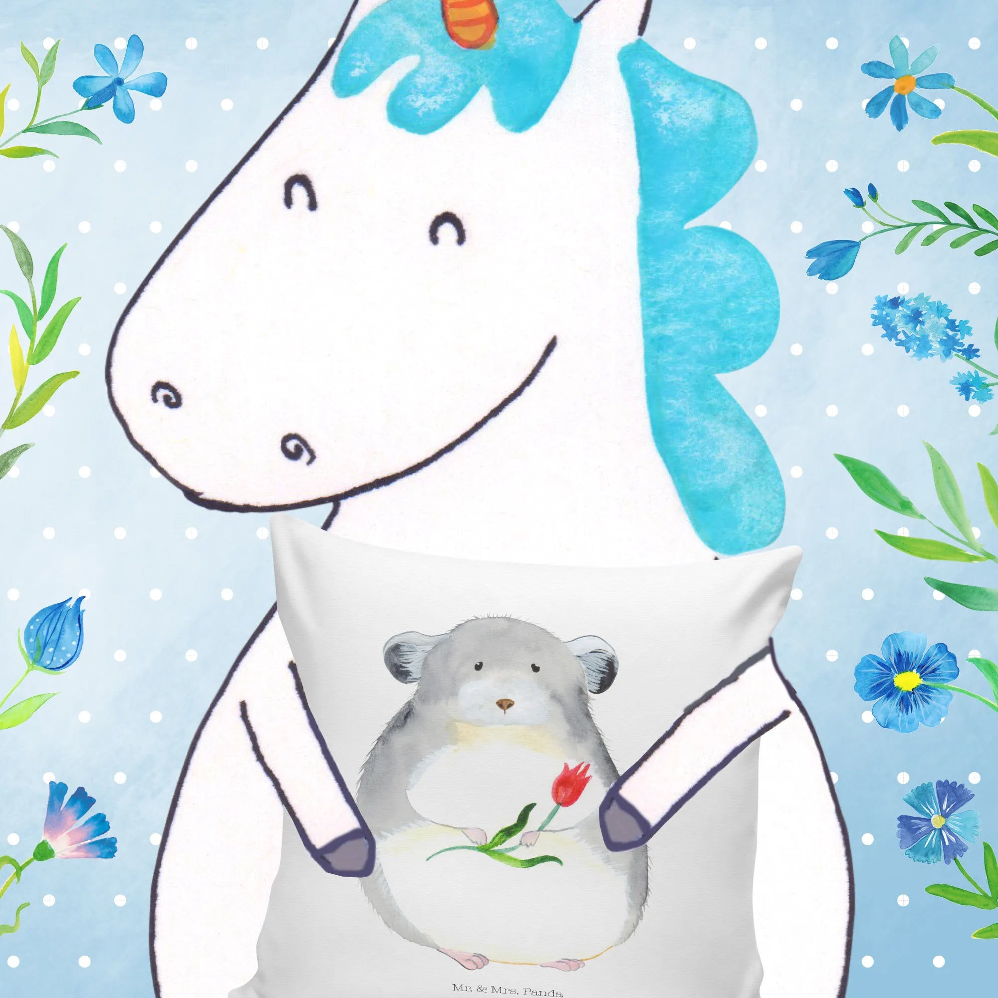 Das 40x40 Kissen "Chinchilla mit Blume" aus der Small World Kollektion von Mr. & Mrs. Panda ist das perfekte Geschenk für alle Tierliebhaber! Mit seinem liebevoll designten Motiv aus der magischen Tierwelt verbreitet es gute Laune und zaubert jedem ein Lächeln ins Gesicht. Die Kissenhülle besteht aus superfluffiger Mikrofaser und ist nicht nur kuschelig weich, sondern auch pflegeleicht. Einfach bei maximal 30° C waschen, und schon bleibt das Kissen wie neu!