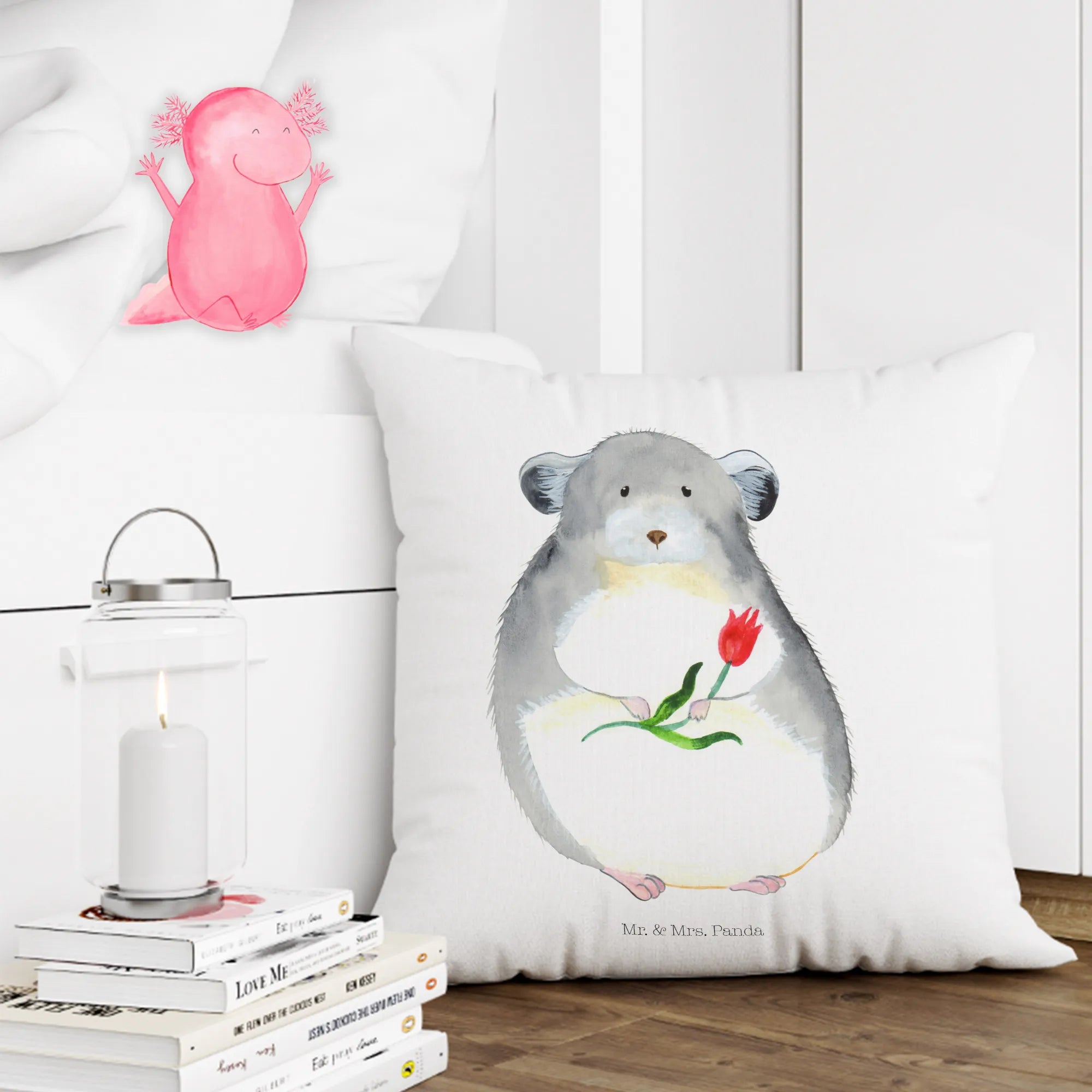 Das 40x40 Kissen "Chinchilla mit Blume" aus der Small World Kollektion von Mr. & Mrs. Panda ist nicht nur ein wunderbares Dekorationsstück, sondern auch der perfekte Begleiter für all jene, die sich inmitten des Alltags eine Portion Glück und Gemütlichkeit wünschen.