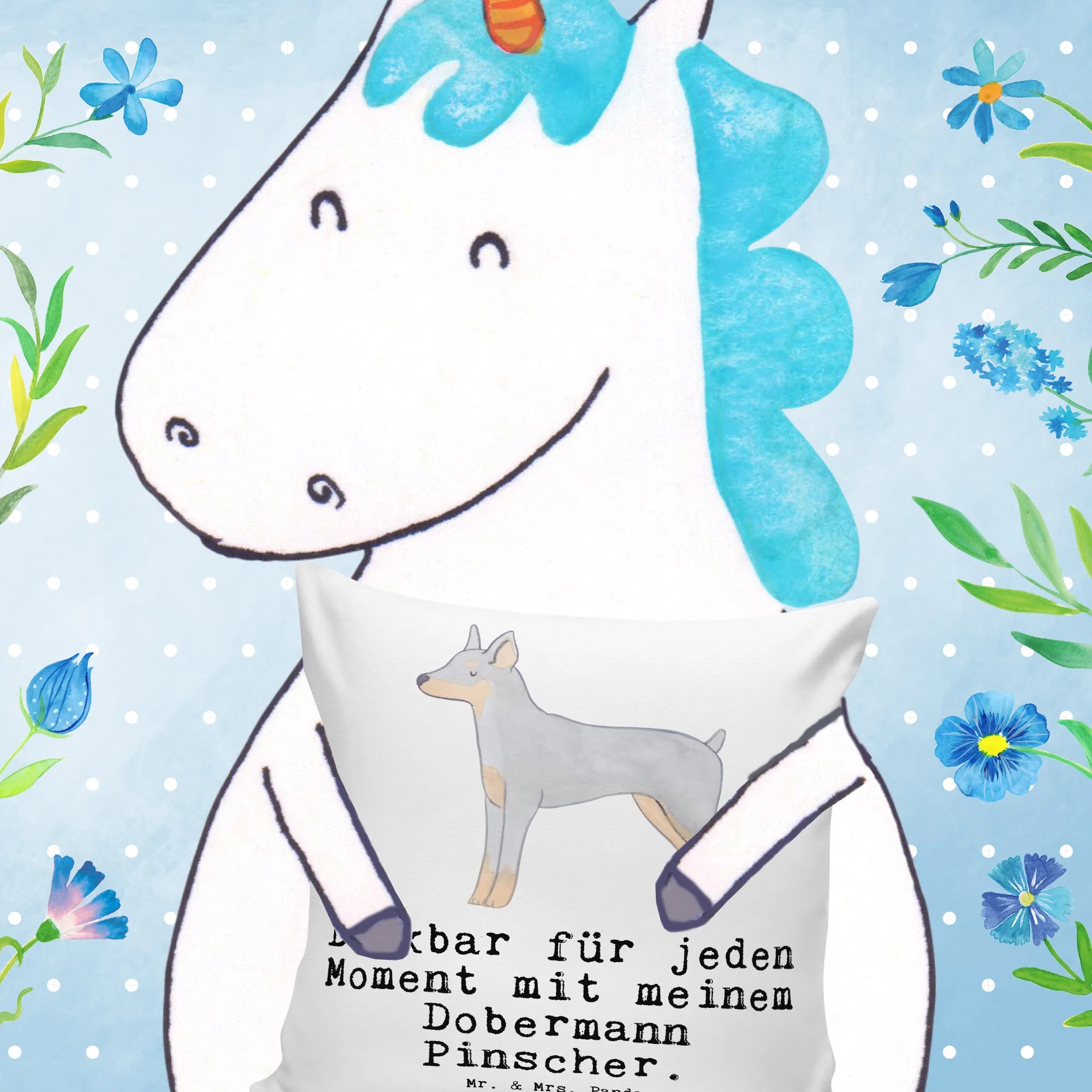 Das 40x40 Kissen mit dem bezaubernden Motiv "Dobermann Pinscher Moment" von Mr. & Mrs. Panda ist nicht nur ein Blickfang, sondern auch ein wunderbares Geschenk für jeden Hundefreund und Hundebesitzer! 💕 Mit dem liebevollen Aufdruck "Dankbar für jeden Moment mit meinem Dobermann Pinscher" zeigt dieses Kissen, wie sehr Du Deinen treuen Begleiter schätzt.