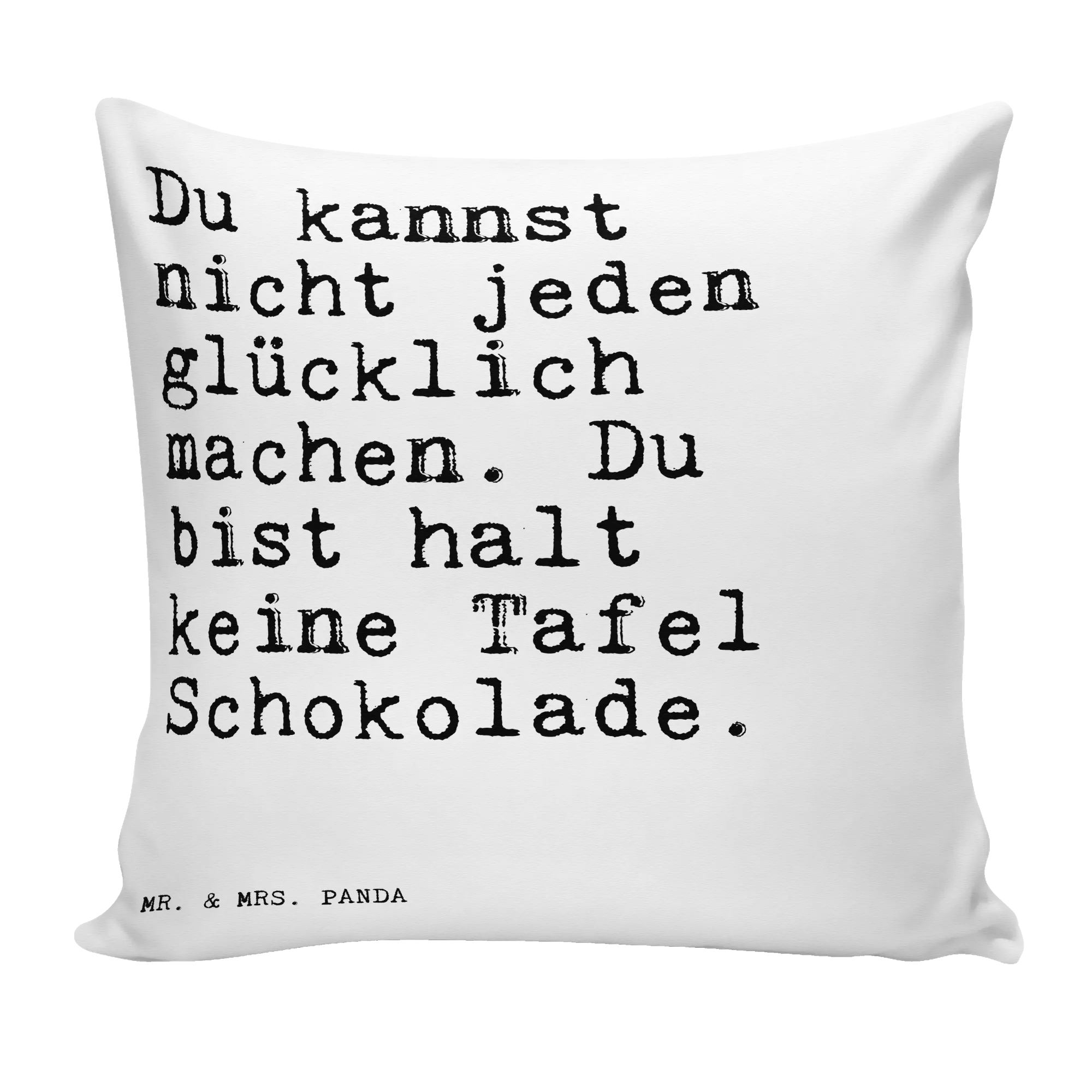 Das Kissen 40x40 mit dem lustigen Spruch 'Du kannst nicht jeden glücklich machen. Du bist halt keine Tafel Schokolade.' von Mr. & Mrs. Panda ist das perfekte Geschenk für all die Menschen in deinem Leben, die einen humorvollen Blick auf das Leben haben. Egal, ob es sich um Freunde, Familie oder Kollegen handelt – dieses Kissen bringt garantiert ein Lächeln auf jedes Gesicht.
