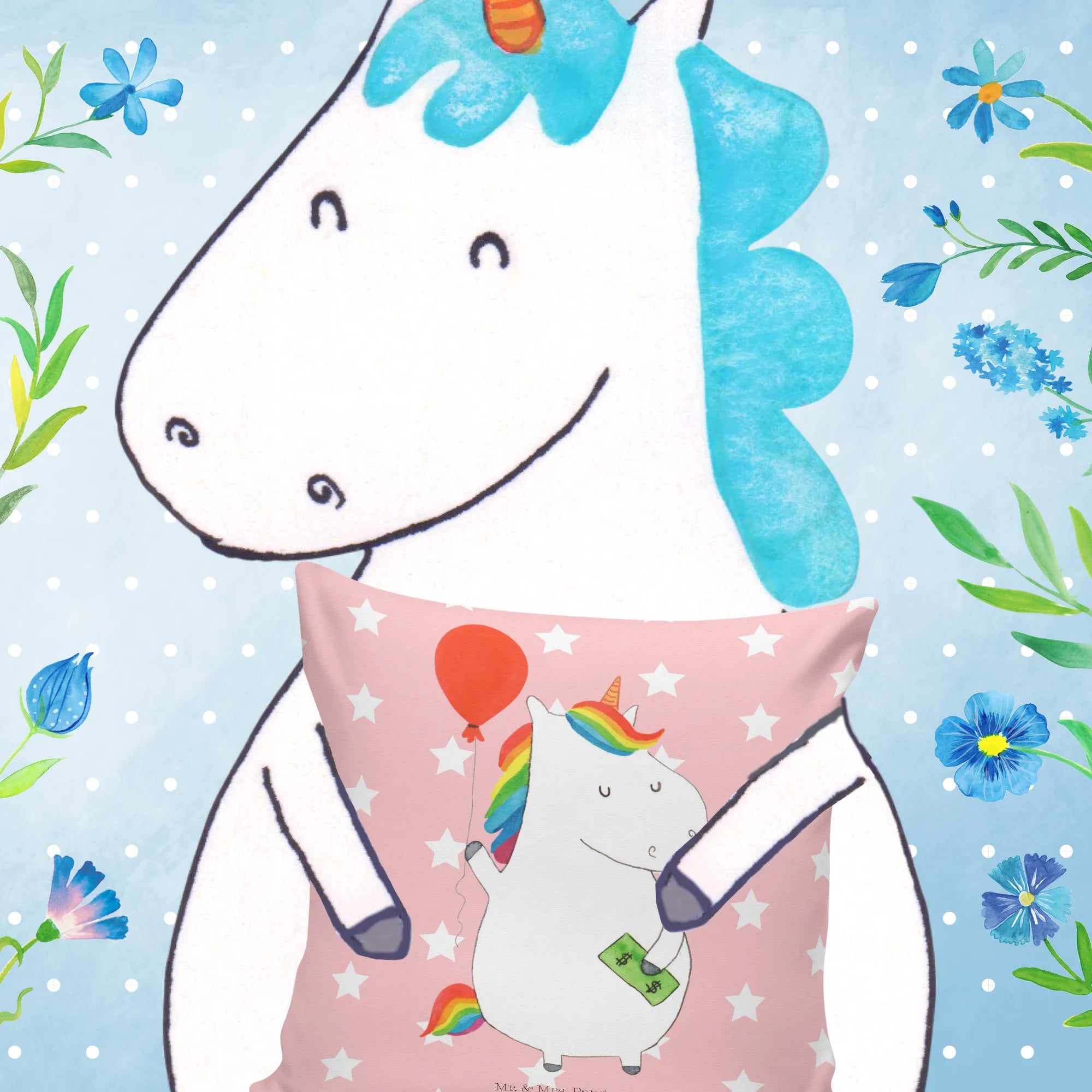 Suchst du nach dem perfekten Geschenk für eine Einhorn-Liebhaberin oder einfach nur für dich selbst? Dann ist unsere 40x40 Kissenhülle "Einhorn Luftballon" aus der besonderen Einhorn-Kollektion von Mr. & Mrs. Panda genau das Richtige für dich! Mit einem bezaubernden handgezeichneten Motiv eines süßen Einhorns, das einen Luftballon hält und ein paar Geldscheine in der anderen Hand trägt, bringt dieses Kissen einen Hauch von Magie in jedes Zuhause.